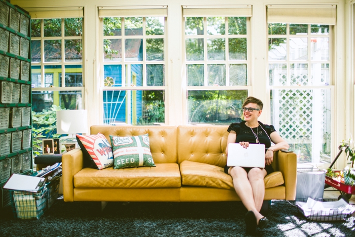 2nd Series (Annaleigh with greenery and pink couch) // Dress by Ivy & Aster.