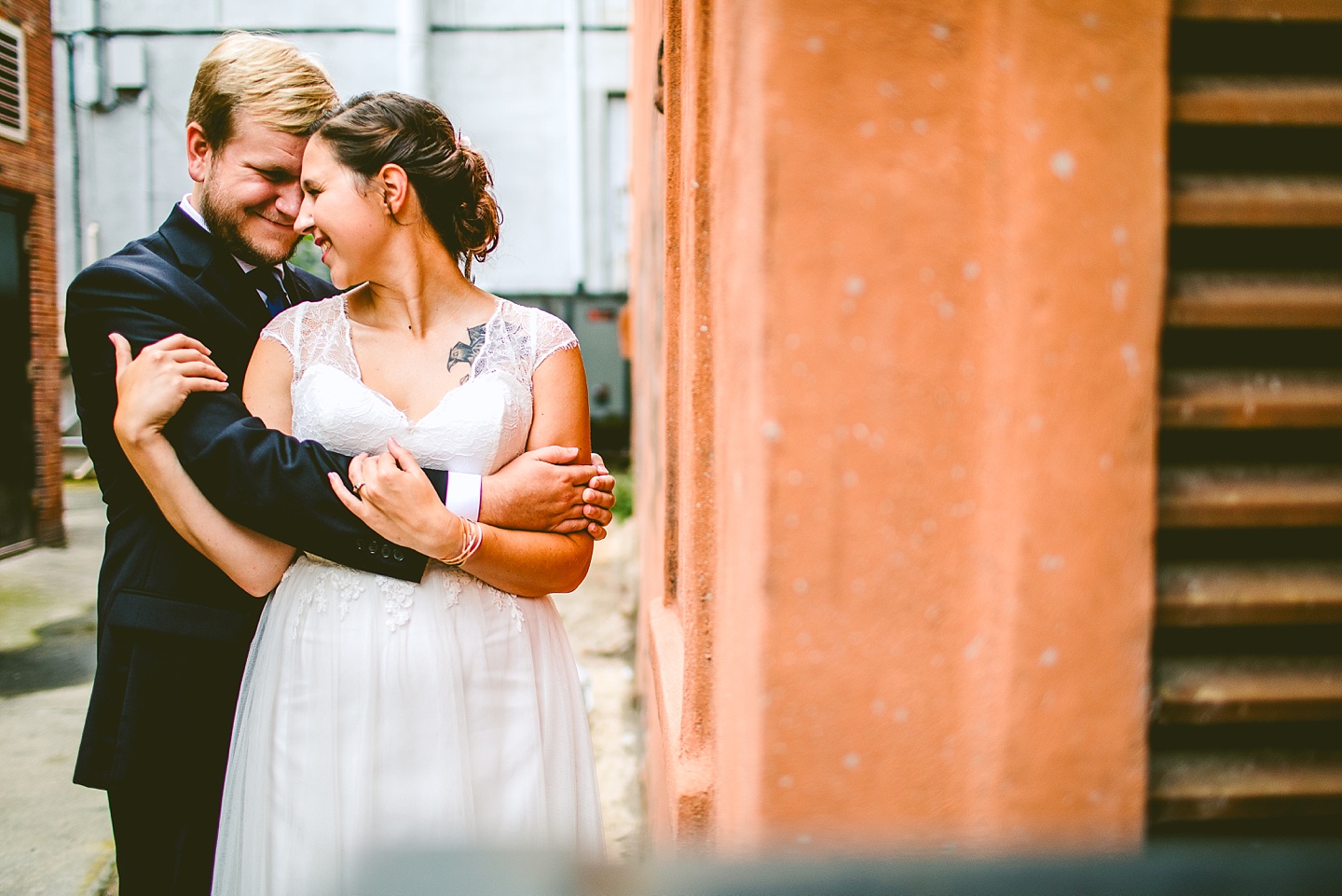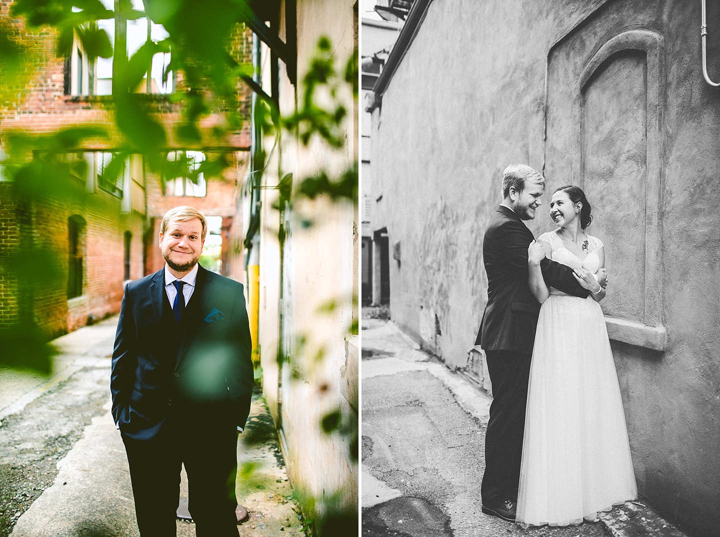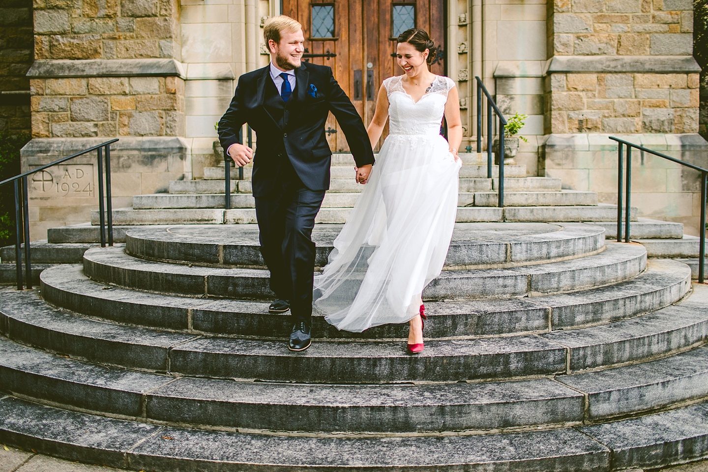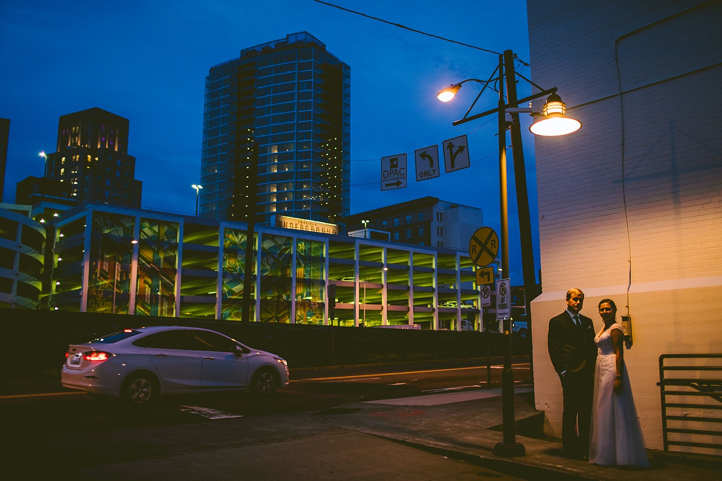 It was a pleasure to meet and work with these guys on an elopement-style session! Jessi and Alec got married at the courthouse and celebrated with family later in the week, but they wanted photos in all their garb downtown prior to the festivities, and we were happy to oblige. They are such a sweet couple, and into all things science. They met at an observatory (I believe Alec proclaimed himself the King of the Observatory at one point, which is a truly amazing and wonderful title) and have been having outdoorsy and sciencey adventures together ever since. They also like good music and movies and can ride a rented bike downtown like nobody’s business. It’s not easy to get on one of those things wearing a significant amount of tulle or a suit, but they managed quite well. We hit up all their favorite local spots in Durham (shout out to Viceroy for being nice enough to let us take a few inside!) and got to know this awesome pair. Congratulations to Jessi+Alec!