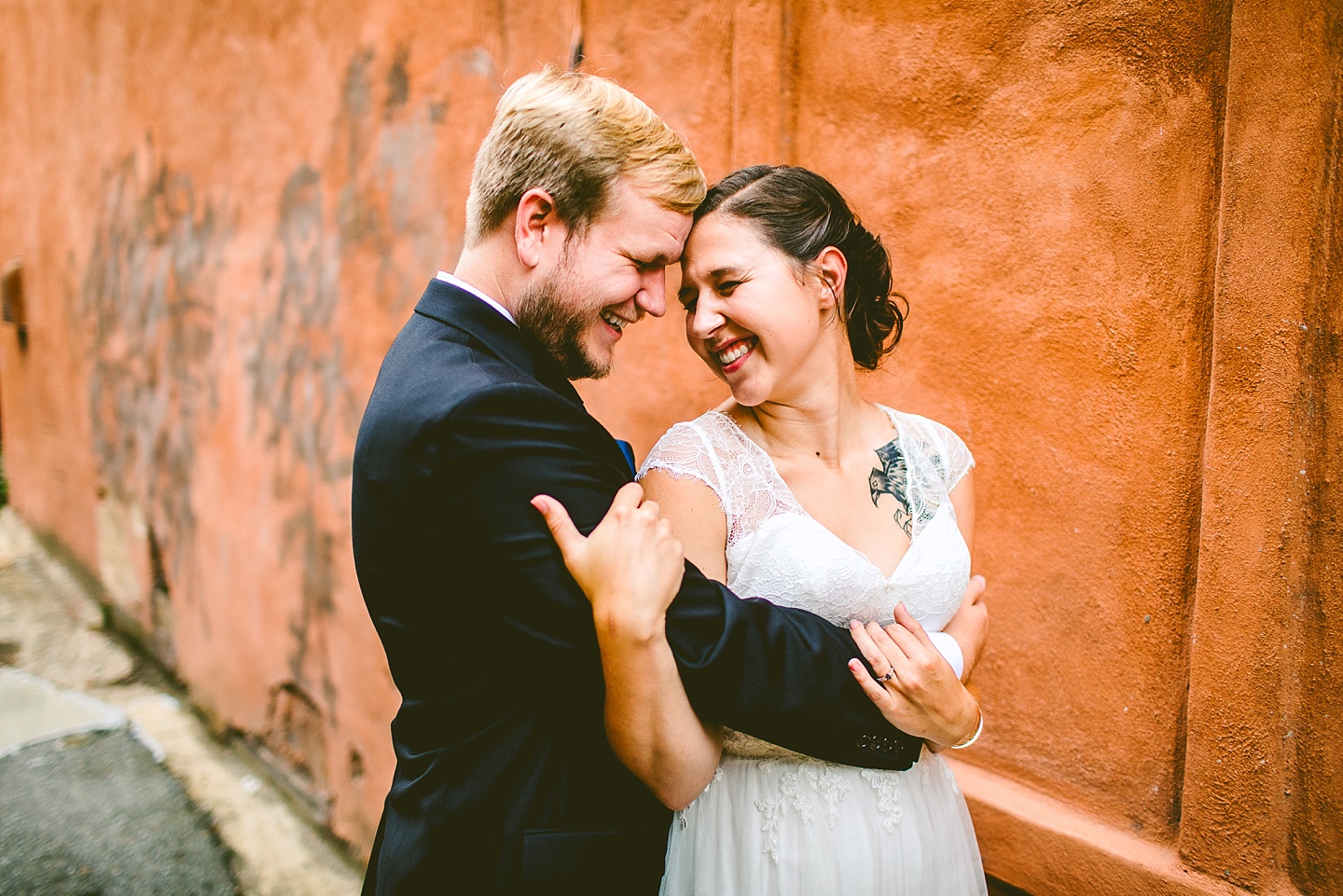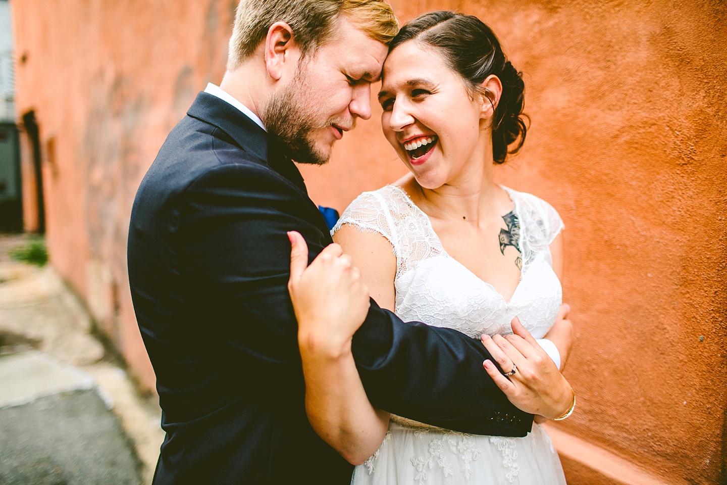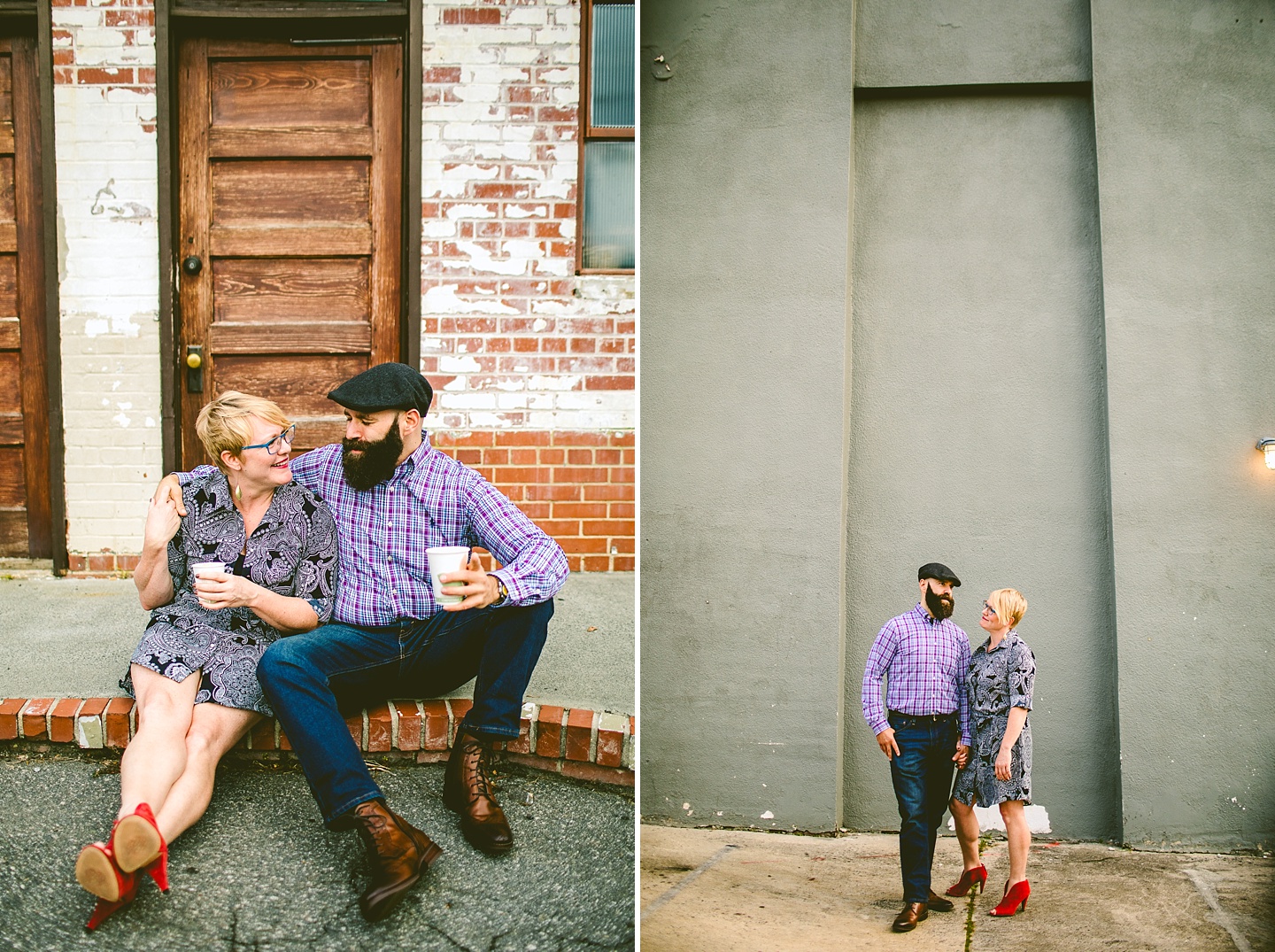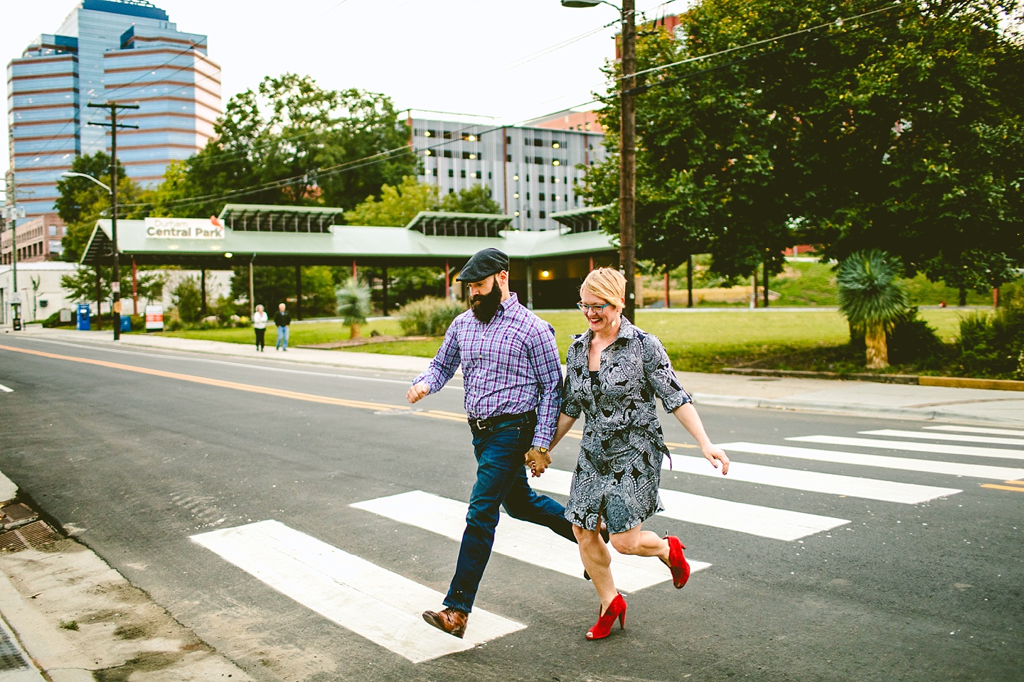 It was a pleasure to meet and work with these guys on an elopement-style session! Jessi and Alec got married at the courthouse and celebrated with family later in the week, but they wanted photos in all their garb downtown prior to the festivities, and we were happy to oblige. They are such a sweet couple, and into all things science. They met at an observatory (I believe Alec proclaimed himself the King of the Observatory at one point, which is a truly amazing and wonderful title) and have been having outdoorsy and sciencey adventures together ever since. They also like good music and movies and can ride a rented bike downtown like nobody’s business. It’s not easy to get on one of those things wearing a significant amount of tulle or a suit, but they managed quite well. We hit up all their favorite local spots in Durham (shout out to Viceroy for being nice enough to let us take a few inside!) and got to know this awesome pair. Congratulations to Jessi+Alec!