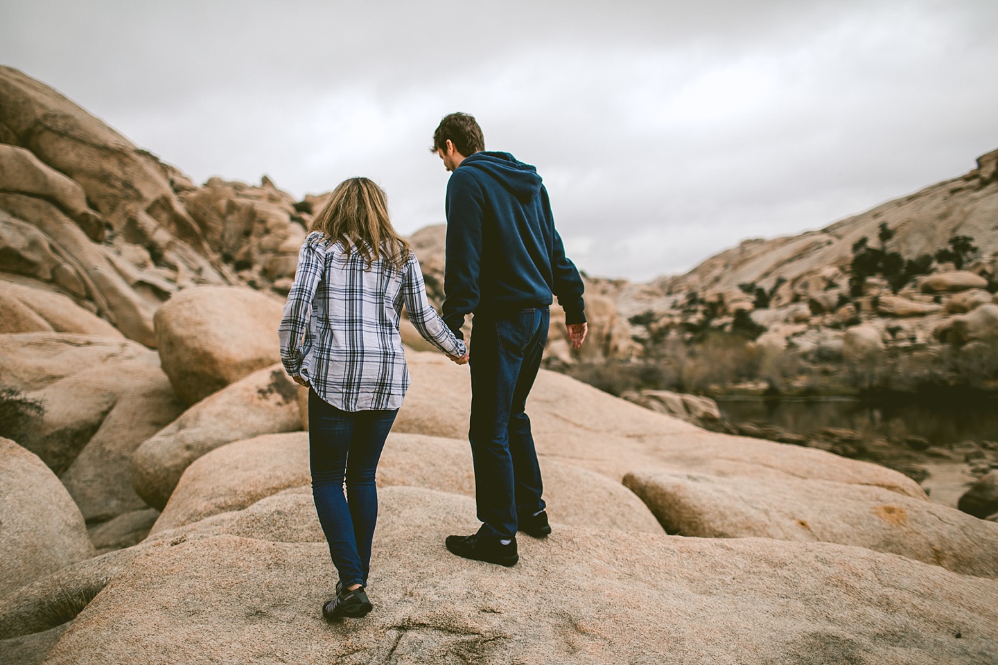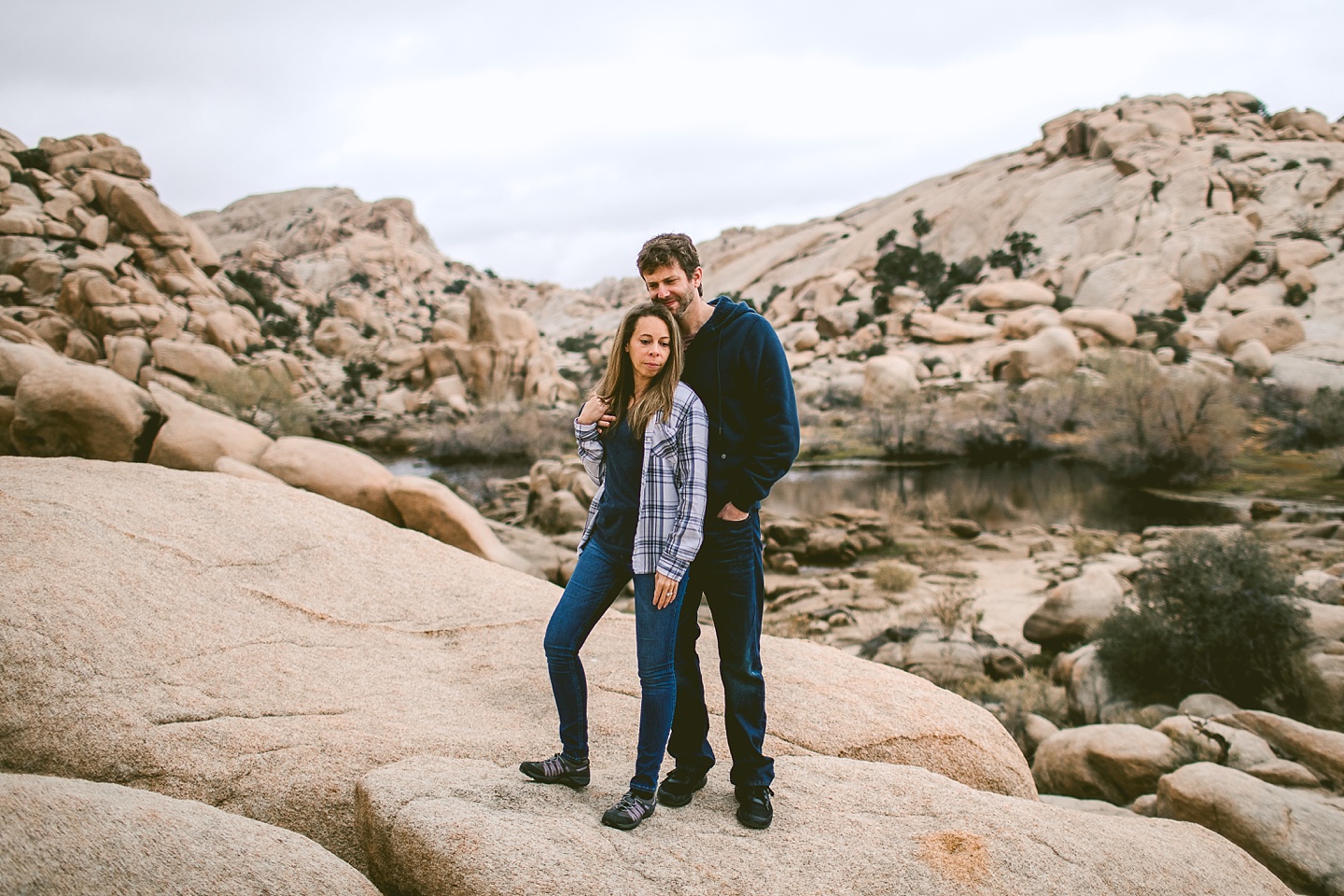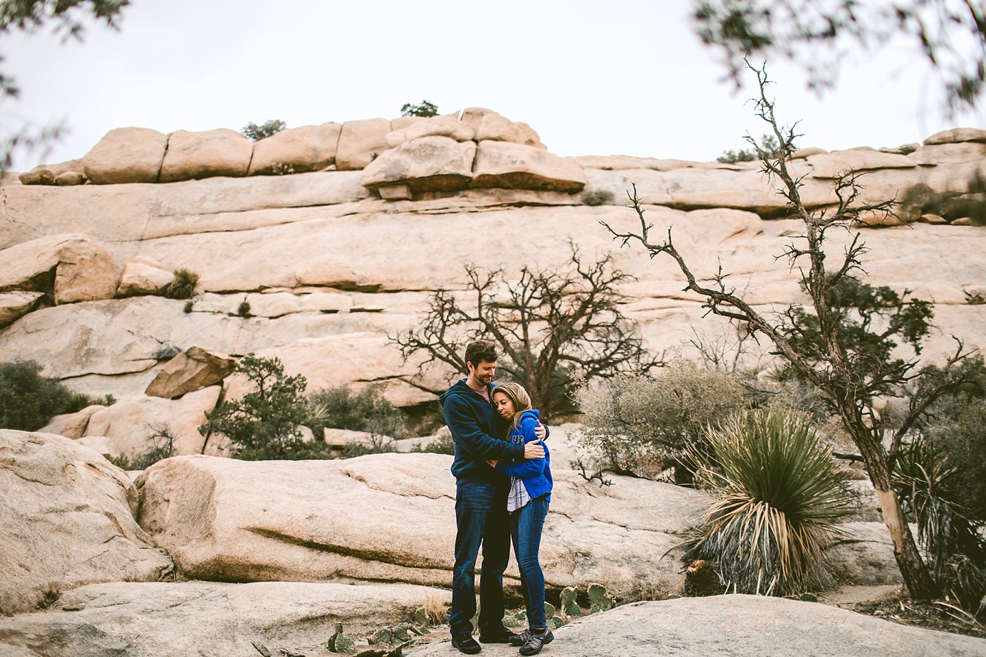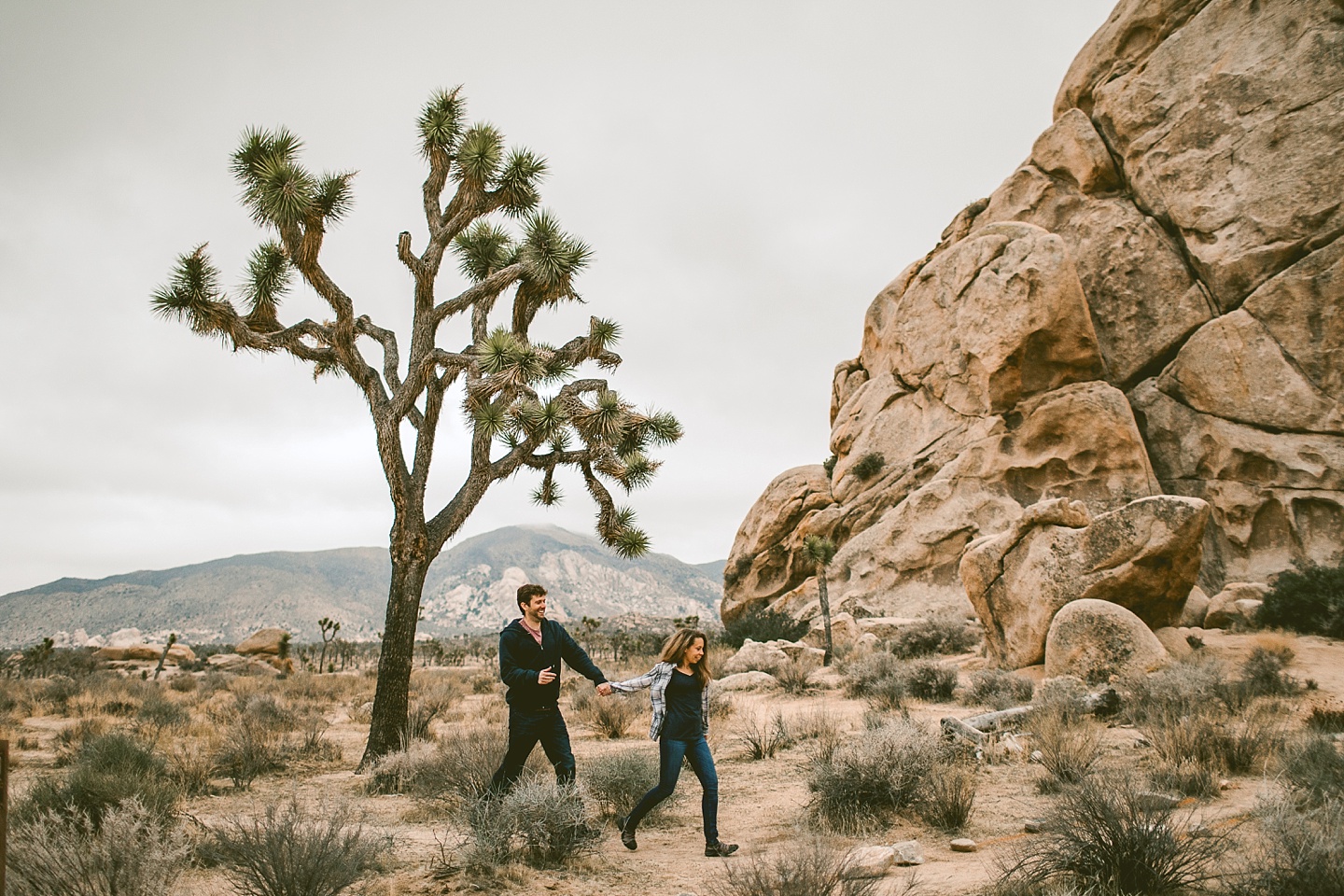 Kelly and Steven live near Los Angeles now, but we hope to get them back in NC someday because they’re awesome. And we are so, so thankful that they came out to Joshua Tree to take photos with us, and we were glad to see them and catch up! And while we were all hoping for that beloved desert sunshine, we were left with a thick blanket of clouds… but! At least the rain did miraculously clear up (hooray!!) and we were able to photograph them chilling around the desert! And when I say chilling, I mean chilling, because it was also quite cold (this was not the desert weather I was anticipating). But despite the clouds and the cold, we had a brilliant time, and the park is every bit as beautiful as I expected it to be. We also saw a few desert bunnies (awww) and I listened to U2’s The Joshua Tree the whole time like a giant nerd and it felt wonderful. Couldn’t be more thankful or happy to have photography be my job and to have wonderful clients who live all over the world who treat us like old friends. Thank you, Kelly and Steven! So glad I got to see this place.
