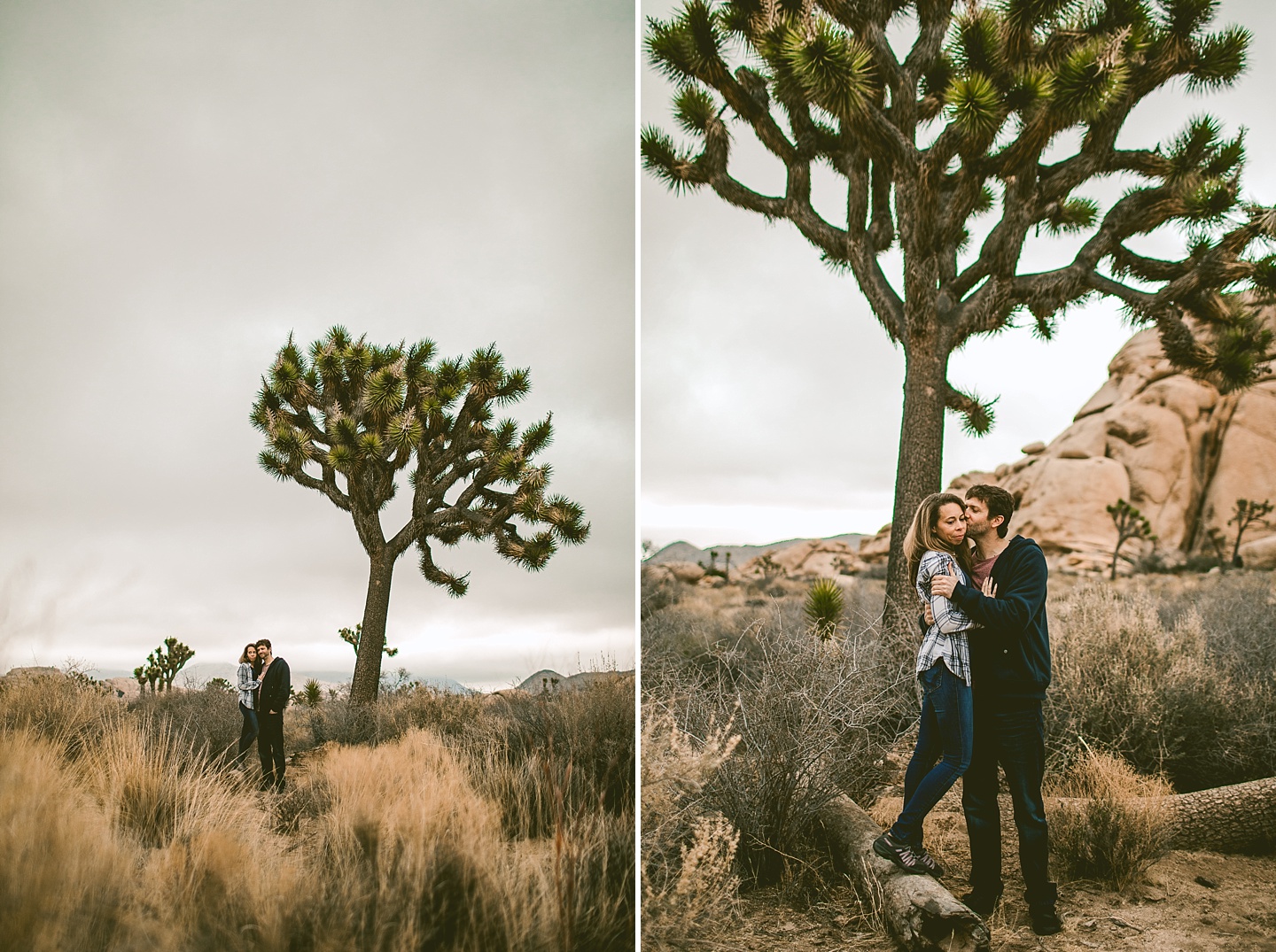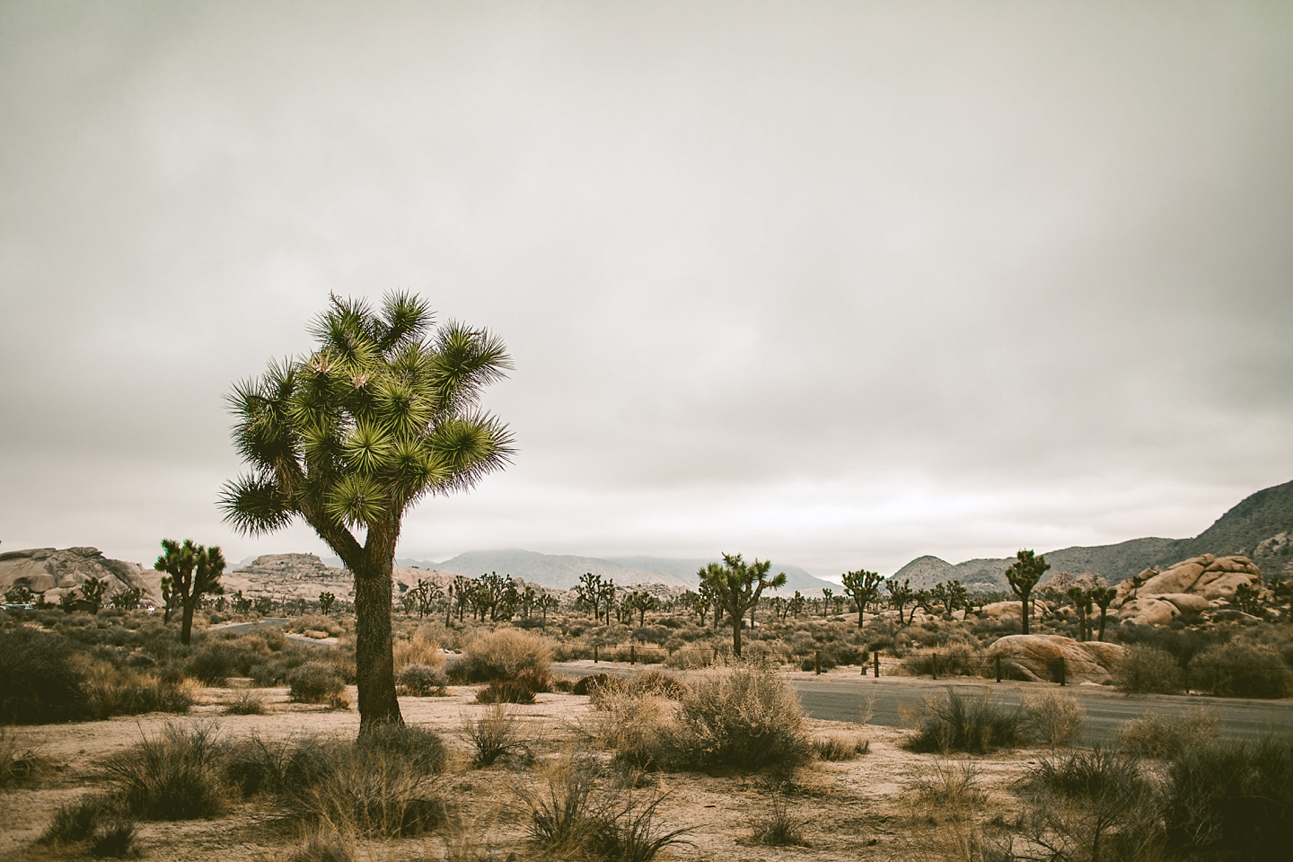 You guyyyys! It has always been a dream of mine to visit Joshua Tree National Park because I’m the world’s biggest U2 dork. And yes, I’m aware that the actual Joshua Tree where Anton Corbijn (one of my favorite photographers) took the famous photos of Bono and Co. near is no longer living, and yes, I’m also aware that this was in the Mojave Desert as opposed to the national park, but I don’t care… it’s still been at the top of my travel list for a long time. So the day after our Santa Paula wedding, we drove all the way over to Joshua Tree. Unfortunately, we picked the one day that it rains nonstop in the desert. On the way the park, we texted back and forth with our beloved clients Kelly and Steven (whom you may remember from their Sutherland wedding back in NC!) and tried to decide what to do. It wasn’t just kinda sprinkling, it was pouring. We could take pictures there, but chances are that we probably wouldn’t be able to. But, we decided to meet anyway. At the very least, we could drive around and discuss The Walking Dead together.