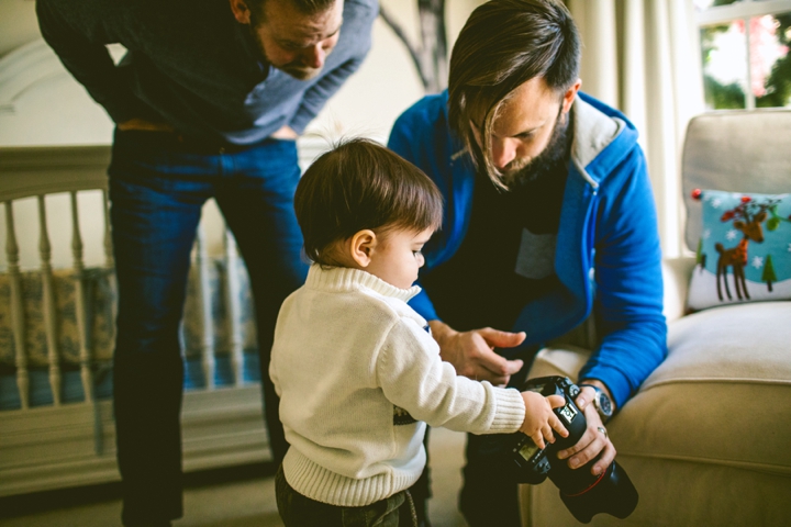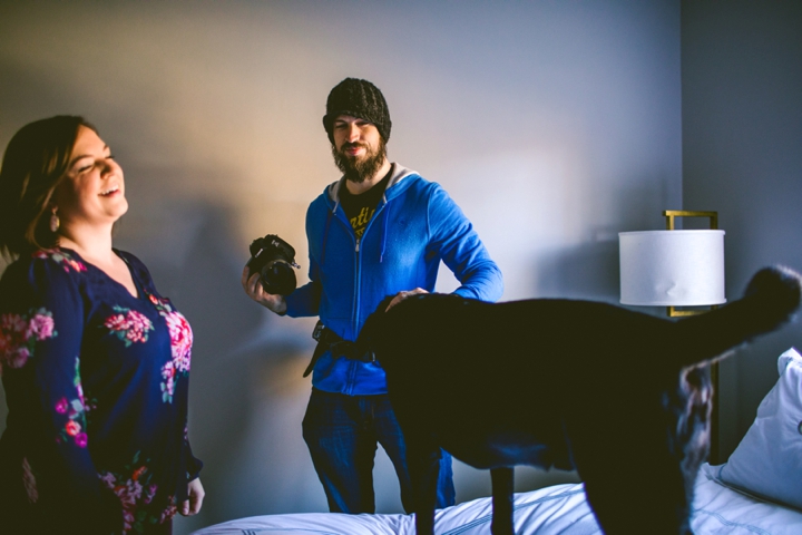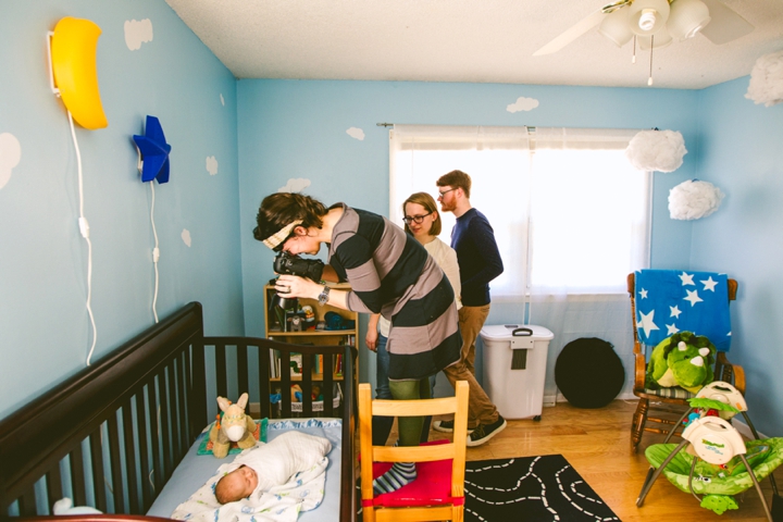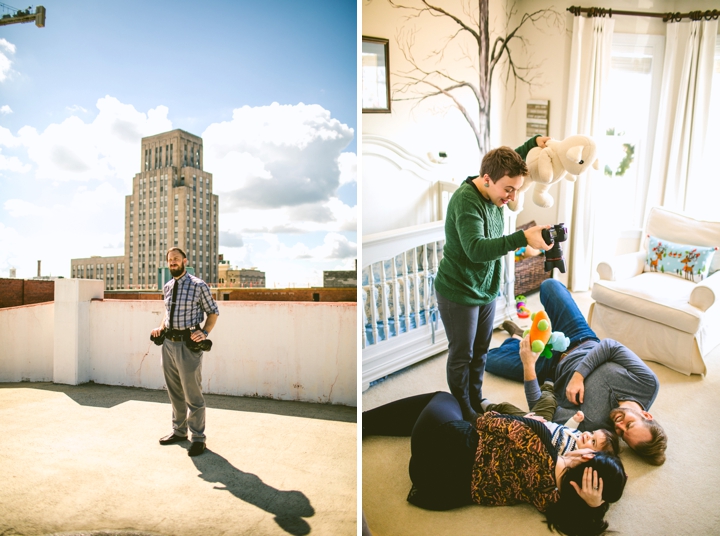 We are always so happy to keep in touch with our awesome couples, and Brooke and David are no exception. And let’s be honest, their cat Spencer is pretty great too. We photographed their wedding back in May 2014 and have been keeping in touch with them and Spencer ever since, happily watching on from a respectful but also kind of creepy distance as Brooke writes tasty, tasty recipes on her foodie blog, Never Any Thyme (named after everyone’s favorite Jessie Spano “I’m So Excited” freakout), and giving her positive but insistent encouragement to bring back her bangs. Brooke is also crafty as hell, and knits stuff that is adorable and completely unattainable with my skill level. I admire her greatly. David isn’t on Instagram so I can’t stalk him as much and Spencer unfortunately doesn’t have his own account yet (hint) but I have high hopes for their adorable little offspring named Finn to have his own hashtag. Look at him! He is adorable and squishy and we are so, so happy for Brooke and David! This kid is a champ. I think he maybe cried for .2 seconds during the shoot, and the rest of the time he drank his entire weight in milk and fell asleep and let us do whatever we wanted. Brooke craved a lot of pineapple during her pregnancy, so we wrapped him in a pineapple swaddle, took some pictures, and called it a day. We also surrounded him with oranges? Because… we didn’t have any pineapple… ? And also… citrus is all the same, right? Wait, I just Googled it, and pineapple isn’t even a citrus. Uggggggh.