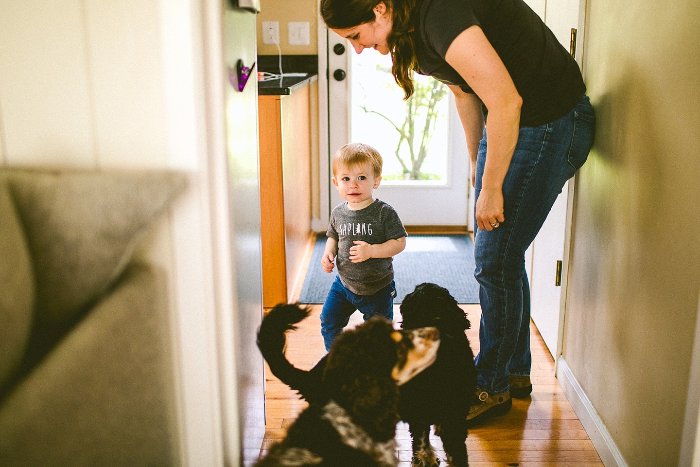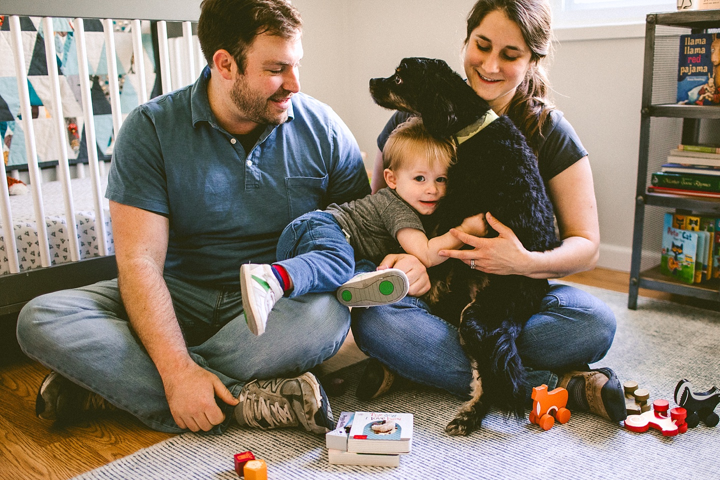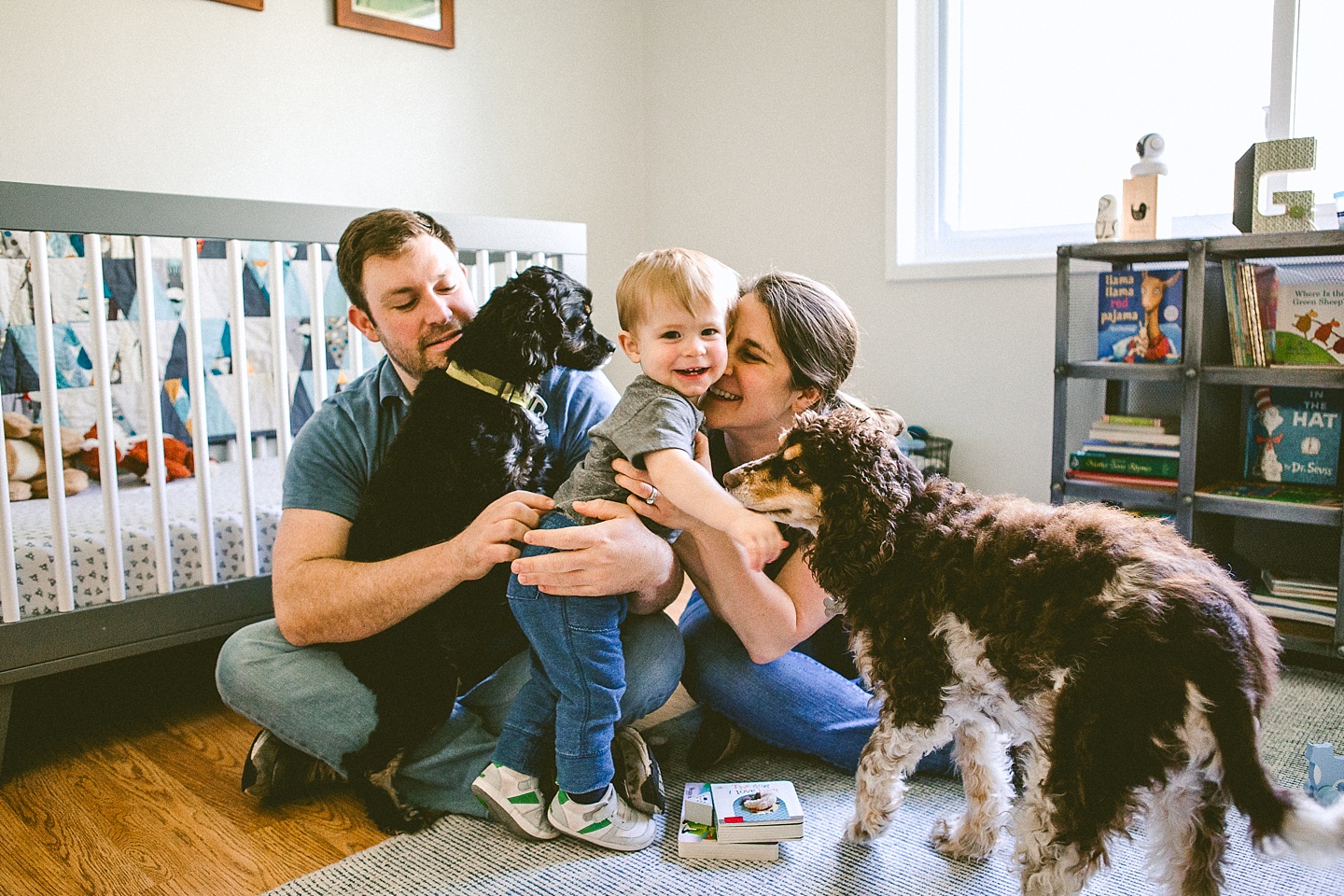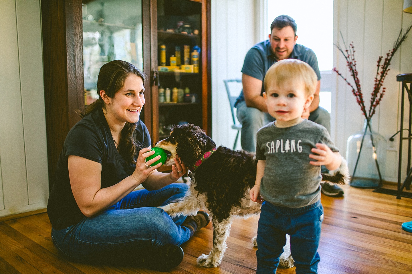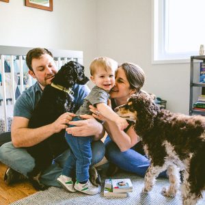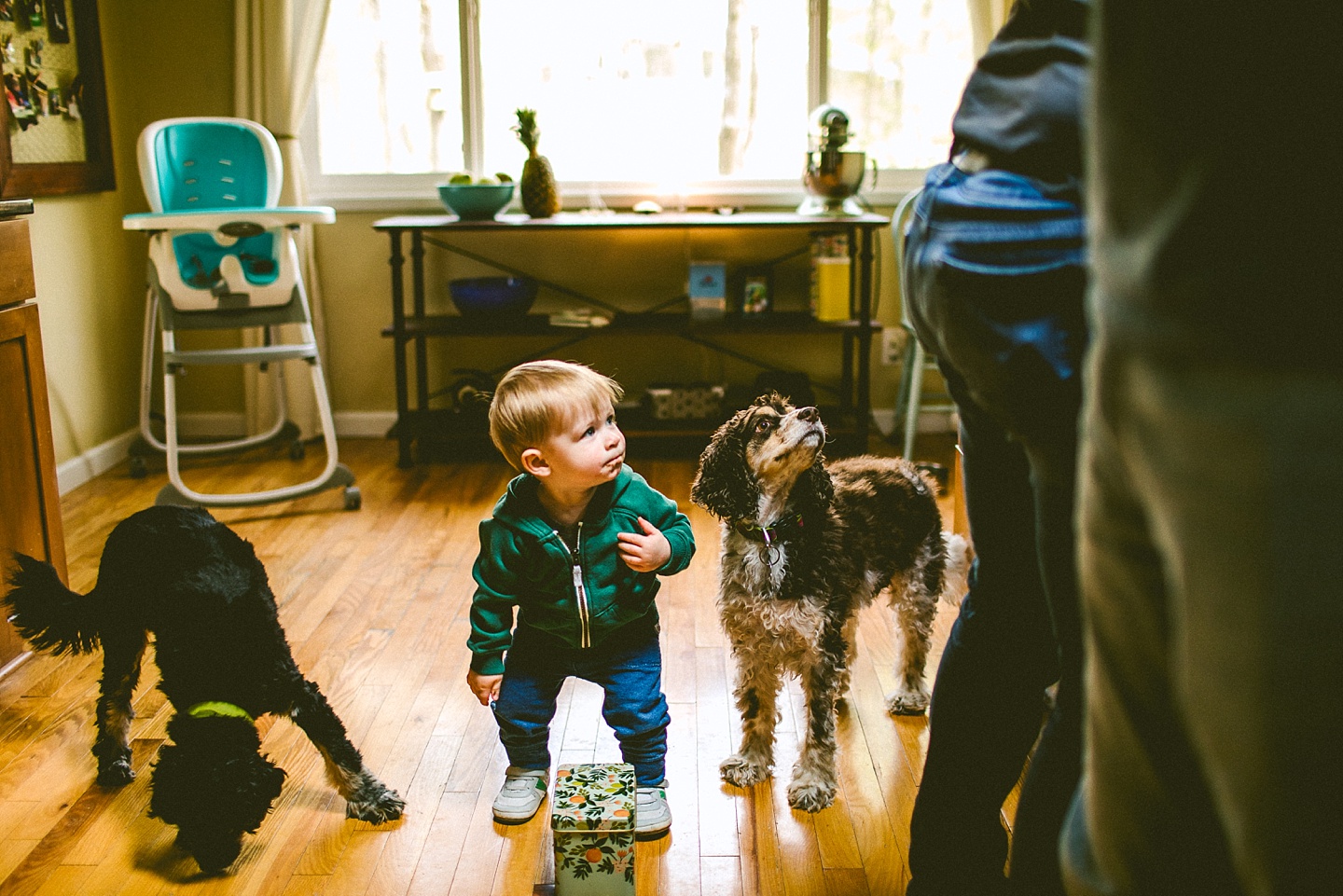 Now Katie and Cameron have an ADORABLE toddler named Grayson who enjoys playing with his furry brothers and sisters (brown doggo Birdie, black doggo Chevy, gray kitteh Tuna), as well as feeding them cat treats (dogs included), and picking up sticks and running around with them. His parents have excellent taste, so they bought him a Charley Harper tent which is the most beautiful and fantastic tent, but he doesn’t care to sit in it, so Tuna the cat has taken it over. When he’s not playing with sticks or throwing balls, he likes to pull flowering stems off Katie’s succulents despite our protests, and also throw his head back and make noises like a zombie (it’s a true skill). His parents are particularly proud of the zombie moaning that Grayson’s mastered, but Katie still maintains that her greatest accomplishment is having a kid who loves cats more than she does. We have a deep love for this family, and we’re so glad the incredible Grayson has joined their ranks (we’re pretty sure that Birdie and Chevy are grateful too since now they get to eat cat treats and bananas).