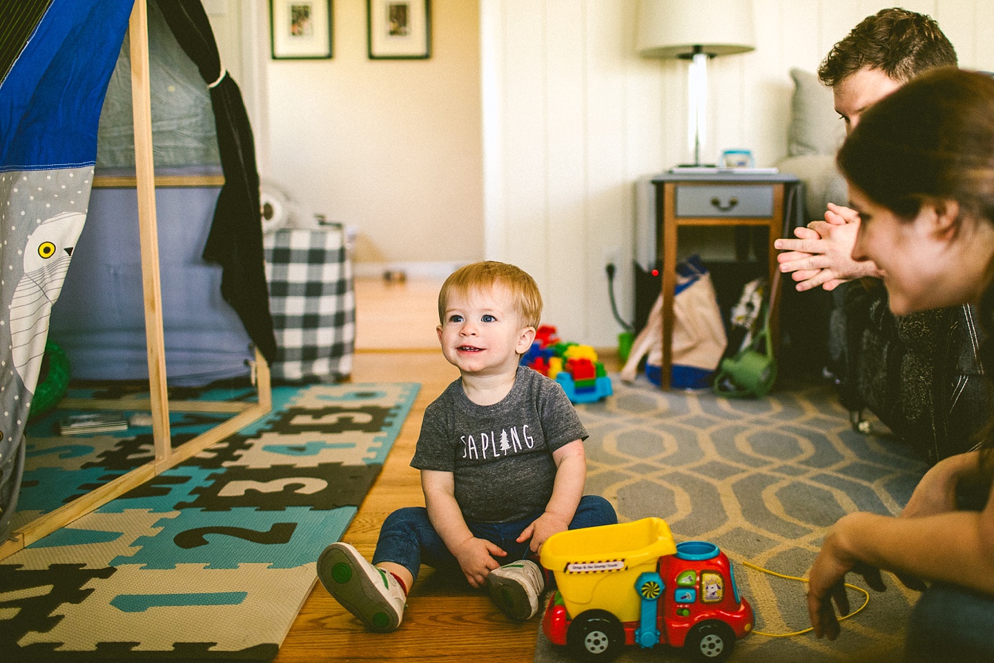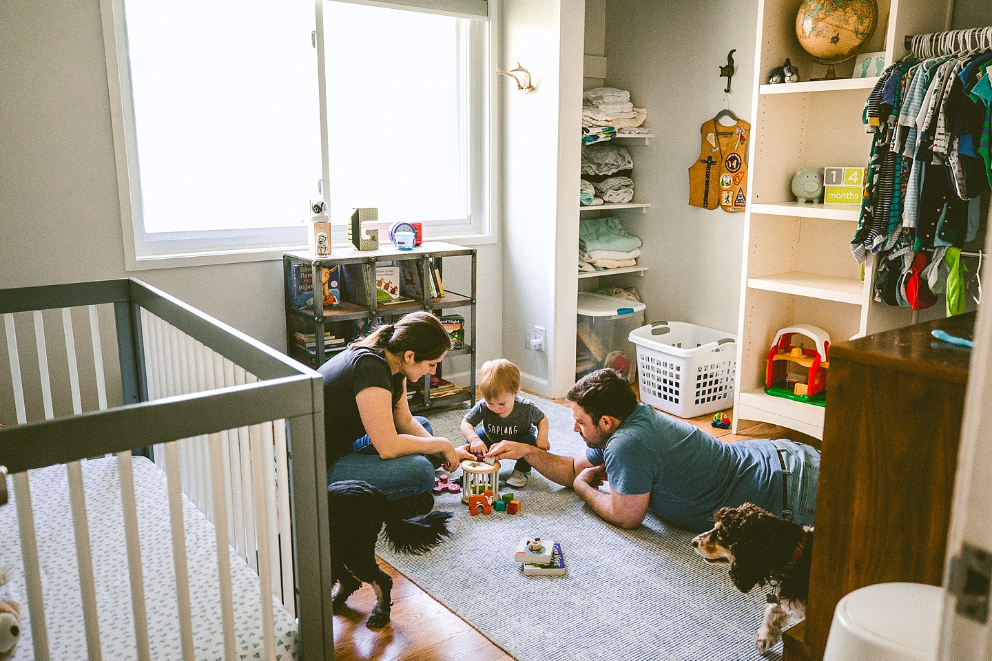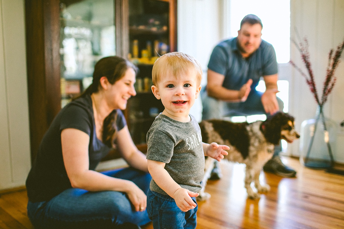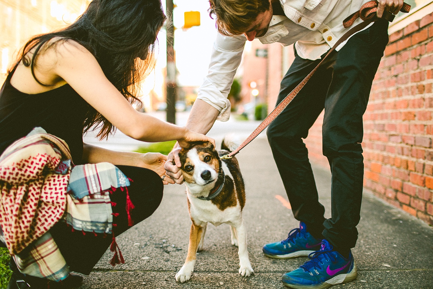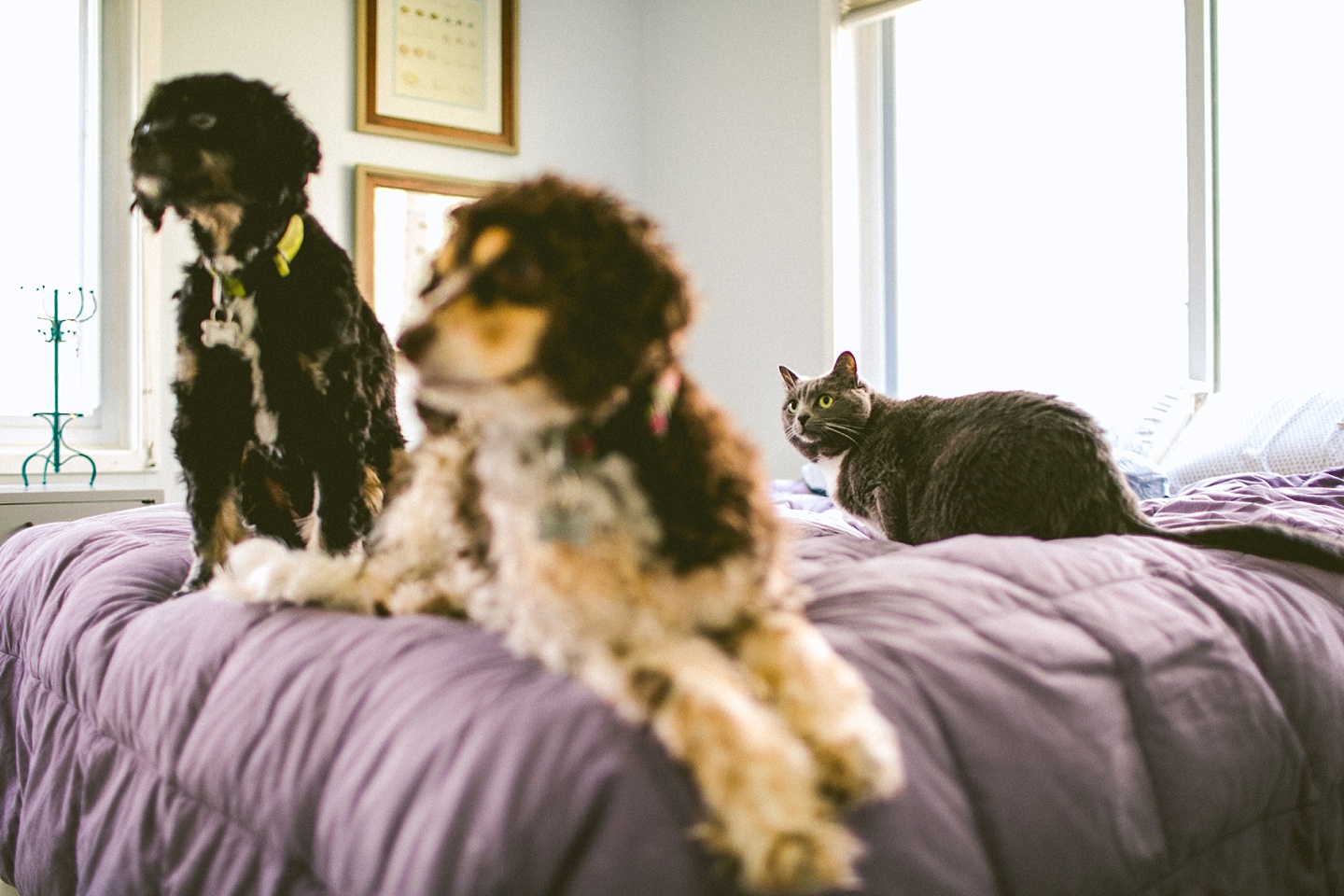 Now Katie and Cameron have an ADORABLE toddler named Grayson who enjoys playing with his furry brothers and sisters (brown doggo Birdie, black doggo Chevy, gray kitteh Tuna), as well as feeding them cat treats (dogs included), and picking up sticks and running around with them. His parents have excellent taste, so they bought him a Charley Harper tent which is the most beautiful and fantastic tent, but he doesn’t care to sit in it, so Tuna the cat has taken it over. When he’s not playing with sticks or throwing balls, he likes to pull flowering stems off Katie’s succulents despite our protests, and also throw his head back and make noises like a zombie (it’s a true skill). His parents are particularly proud of the zombie moaning that Grayson’s mastered, but Katie still maintains that her greatest accomplishment is having a kid who loves cats more than she does. We have a deep love for this family, and we’re so glad the incredible Grayson has joined their ranks (we’re pretty sure that Birdie and Chevy are grateful too since now they get to eat cat treats and bananas).