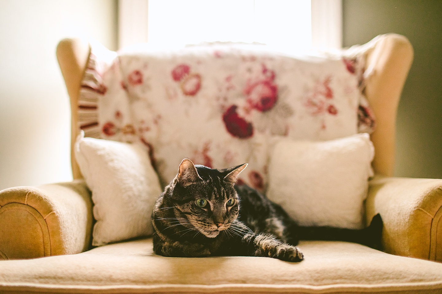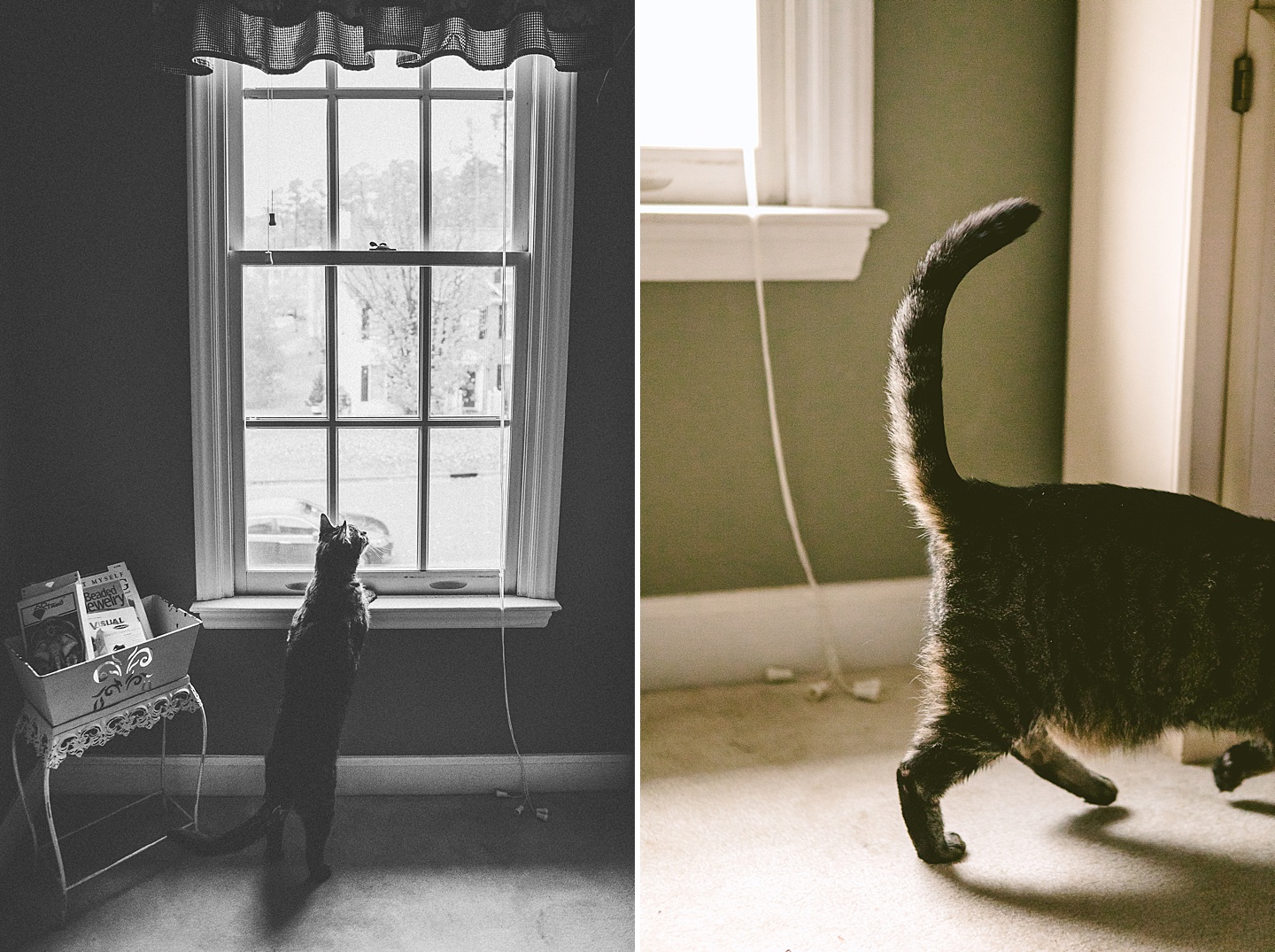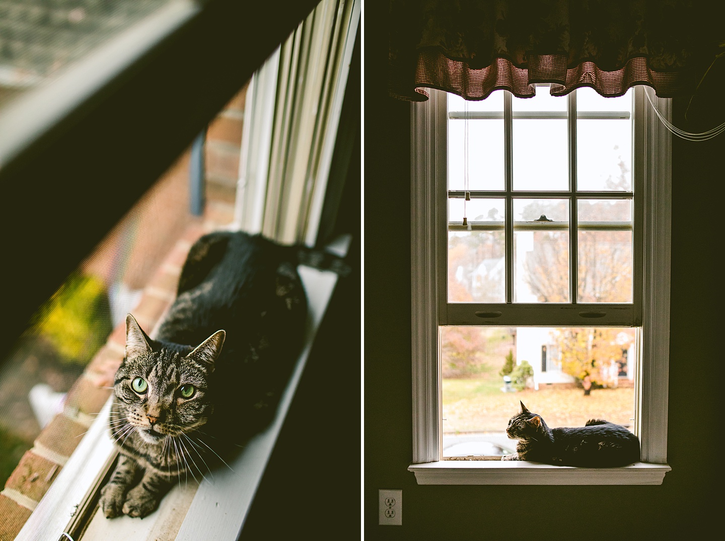 Katie and Cameron were married in 2012 at Magnolia Manor in a wedding full of rope swing glory, and Katie and I have kept in touch since through our mutual love of cats. There has been good times with cats (YAY CATS!!) and bad times with cats (illnesses, and the unfortunate passing away of their adored cat Bug before our session), but through the thick and thin, I know I have someone to message and commiserate with when it comes to cats… and for that I am grateful. :) And now that they’re in a light-filled modernist house of awesome in Chapel Hill, we can also keep in touch with our mutual love of attempting to keep desert plants alive in a zone 8 climate with high humidity.