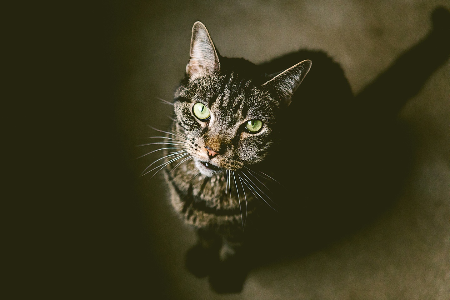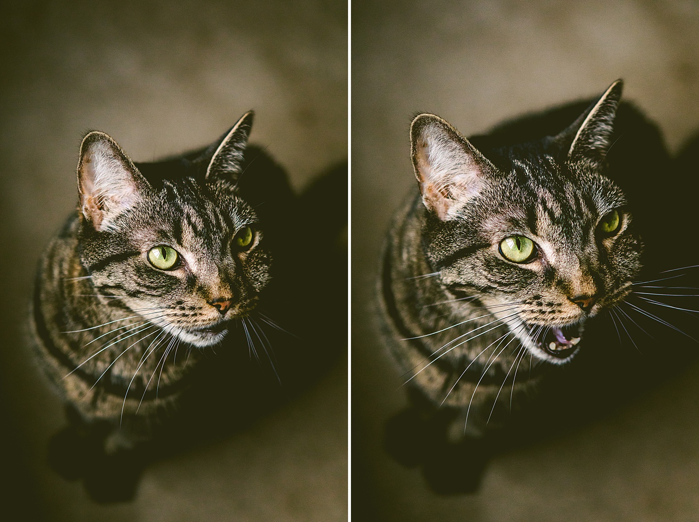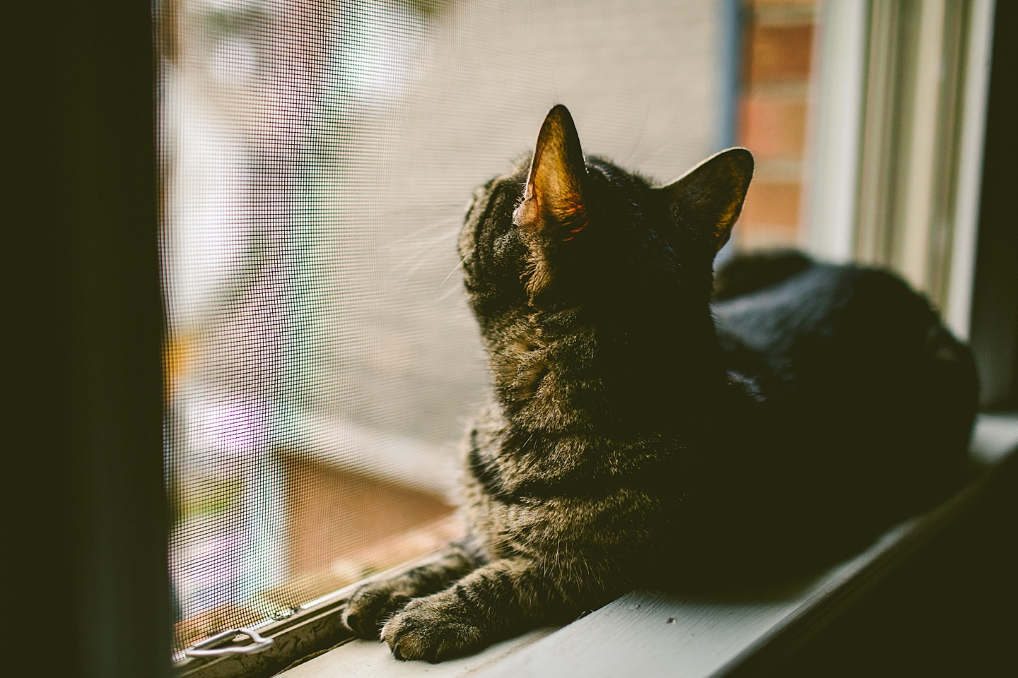 Katie and Cameron were married in 2012 at Magnolia Manor in a wedding full of rope swing glory, and Katie and I have kept in touch since through our mutual love of cats. There has been good times with cats (YAY CATS!!) and bad times with cats (illnesses, and the unfortunate passing away of their adored cat Bug before our session), but through the thick and thin, I know I have someone to message and commiserate with when it comes to cats… and for that I am grateful. :) And now that they’re in a light-filled modernist house of awesome in Chapel Hill, we can also keep in touch with our mutual love of attempting to keep desert plants alive in a zone 8 climate with high humidity.