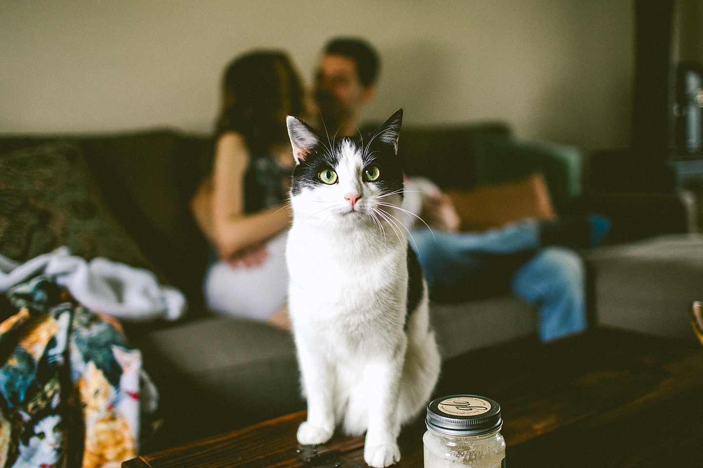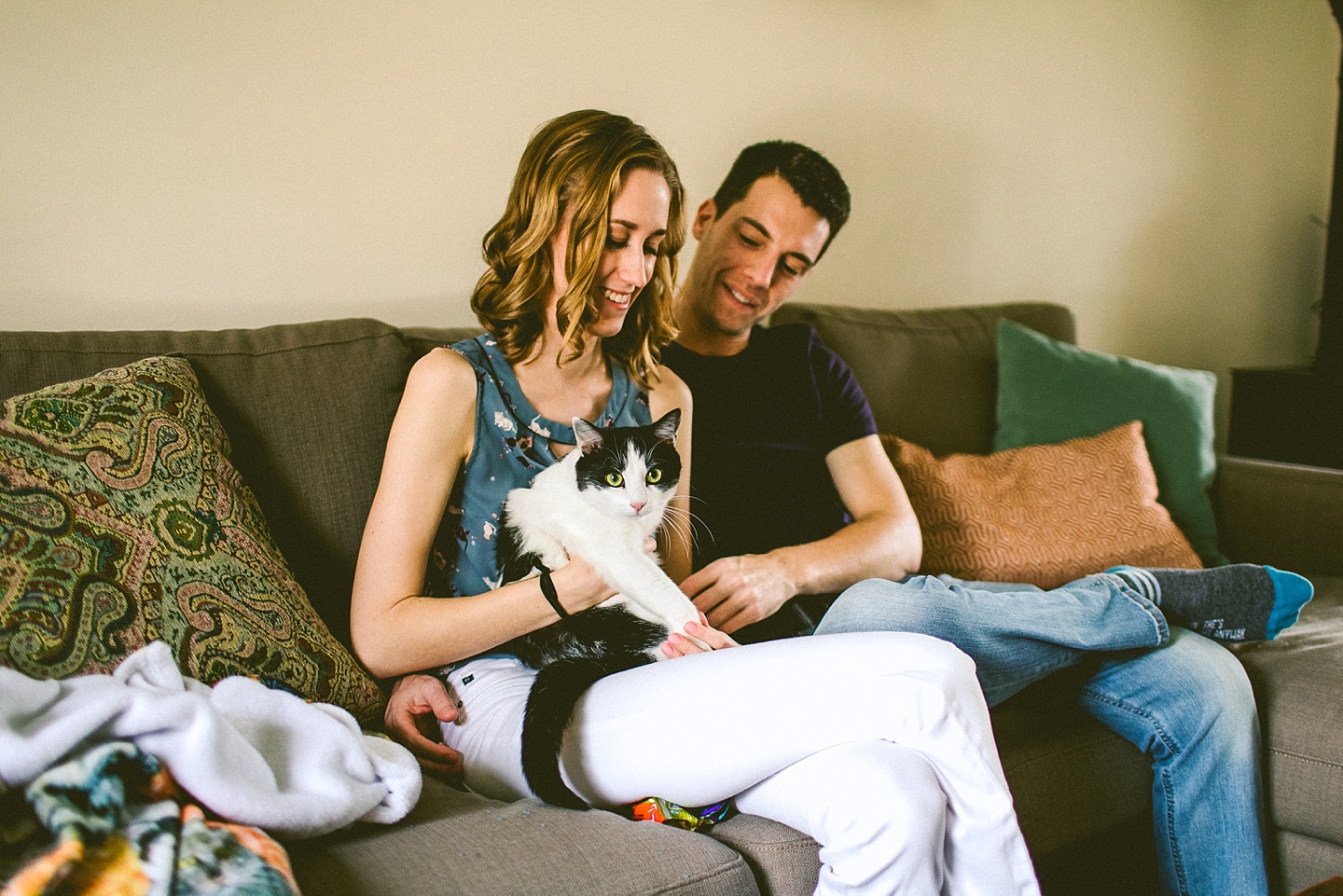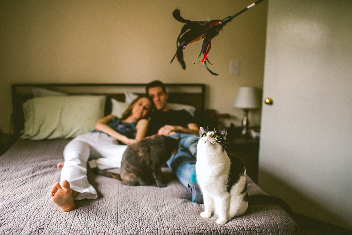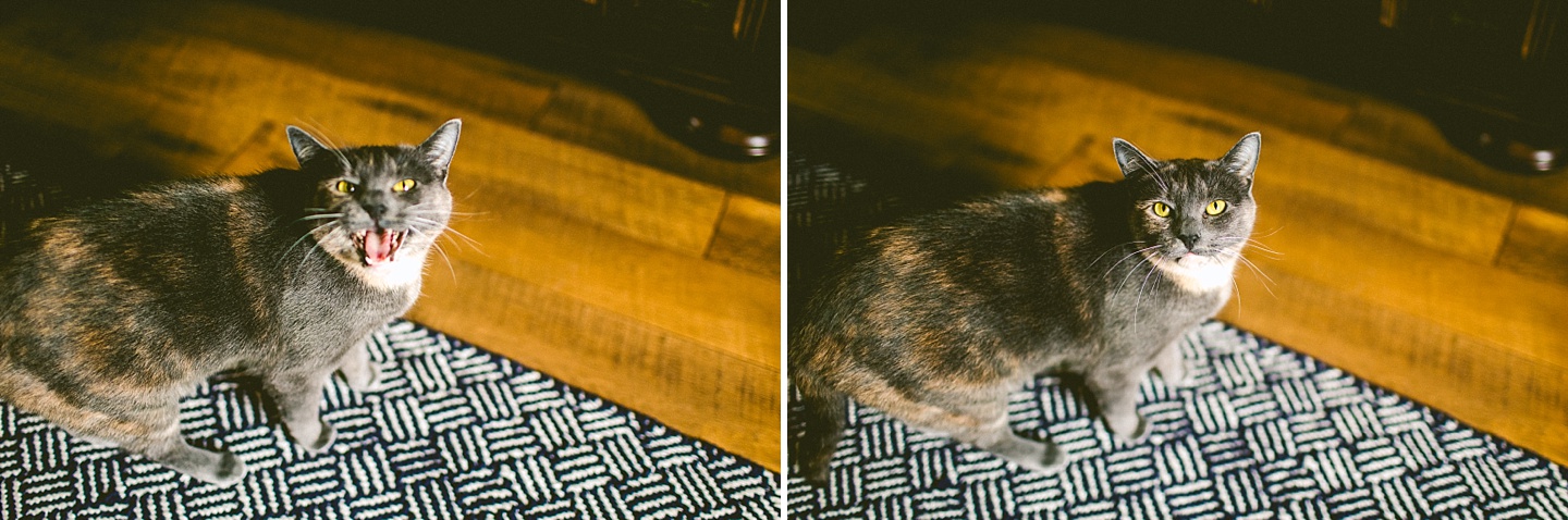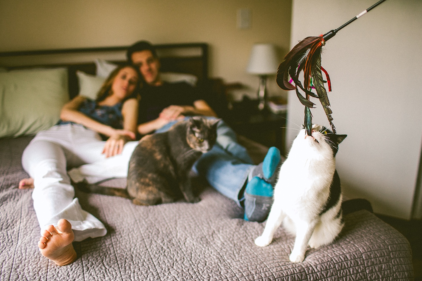 WE NEED MORE ENGAGEMENT SESSIONS WITH CATS. Do you hear me, internet? Cats. More cats. We are not short on adorable doggos, but we are short on cats. That being said, you have to hire us fully prepared that your engagement session is just going to turn into pictures of your cats. Jessica was prepared for that (cat dress, cat blanket, book on how to talk to your cat about guns). RJ did stop us during the session to say something like, “Wait, aren’t these supposed to be pictures of us?” but I’m pretty sure he was joking due to the cat salt & pepper shakers, Jackson Galaxy books, and polaroids of their cats adorning their walls.
