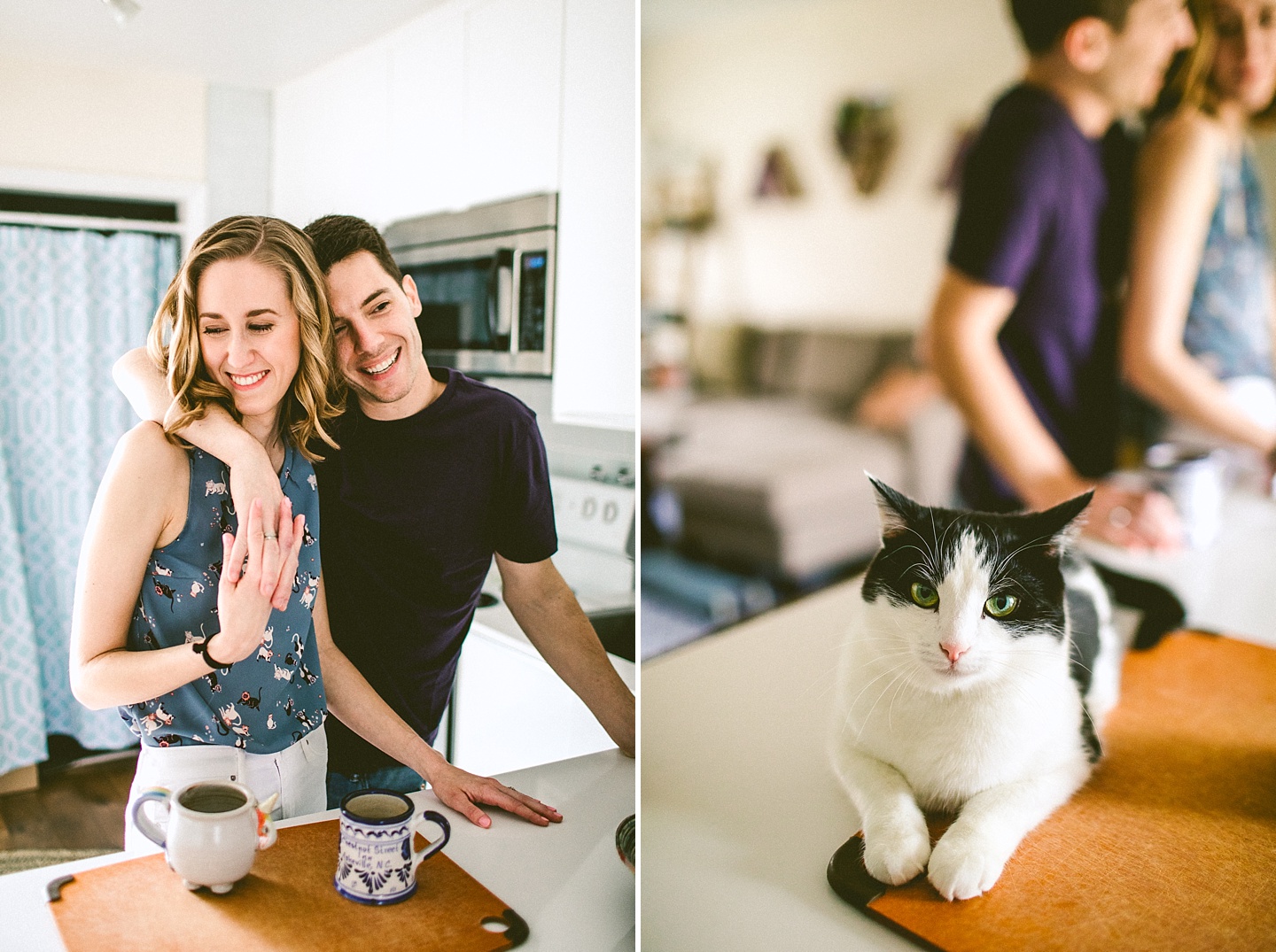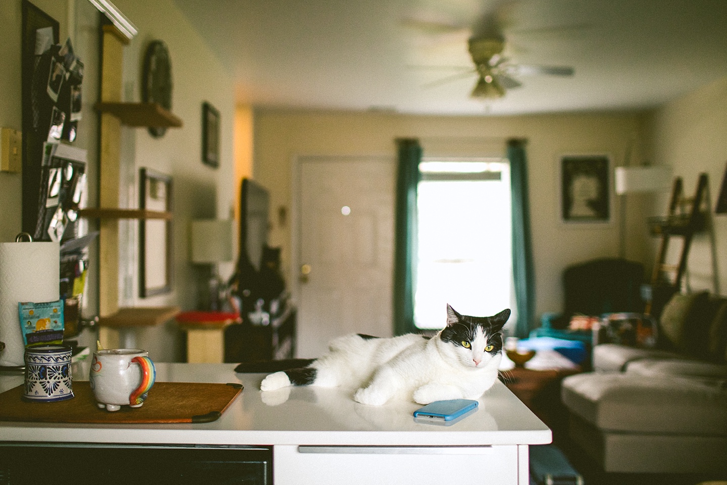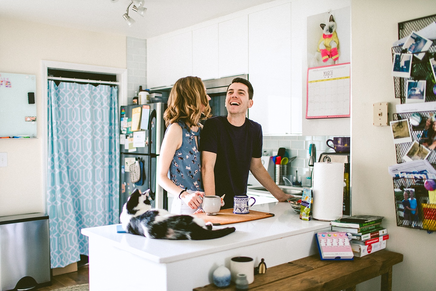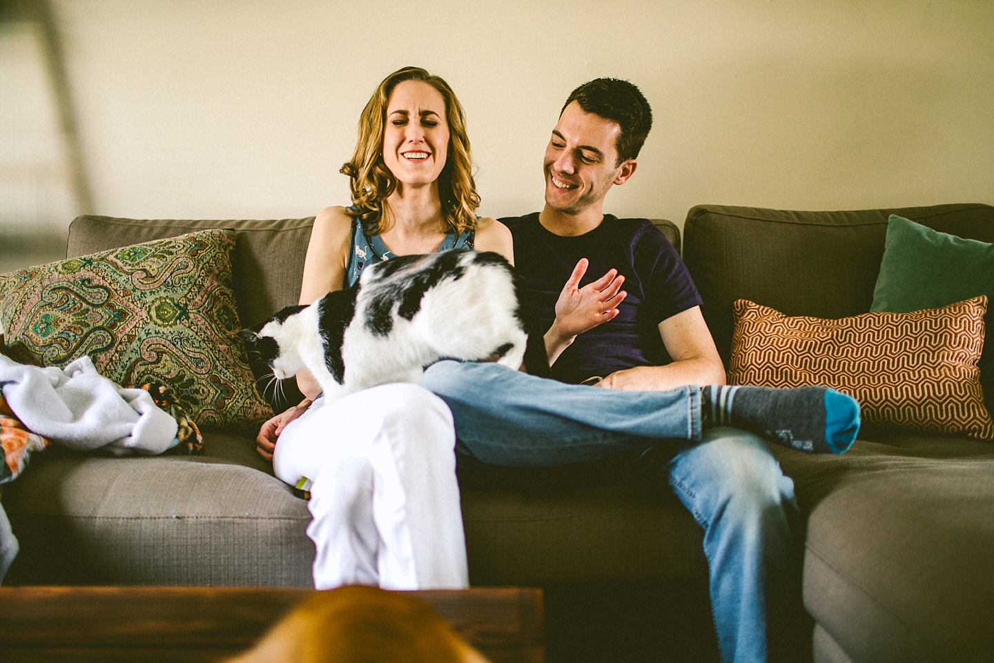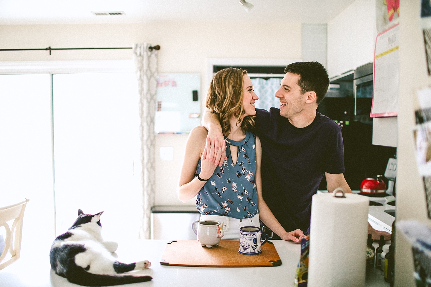 WE NEED MORE ENGAGEMENT SESSIONS WITH CATS. Do you hear me, internet? Cats. More cats. We are not short on adorable doggos, but we are short on cats. That being said, you have to hire us fully prepared that your engagement session is just going to turn into pictures of your cats. Jessica was prepared for that (cat dress, cat blanket, book on how to talk to your cat about guns). RJ did stop us during the session to say something like, “Wait, aren’t these supposed to be pictures of us?” but I’m pretty sure he was joking due to the cat salt & pepper shakers, Jackson Galaxy books, and polaroids of their cats adorning their walls.