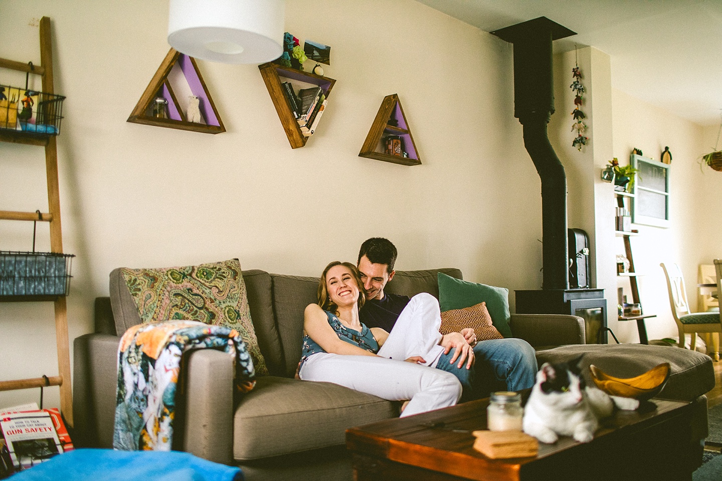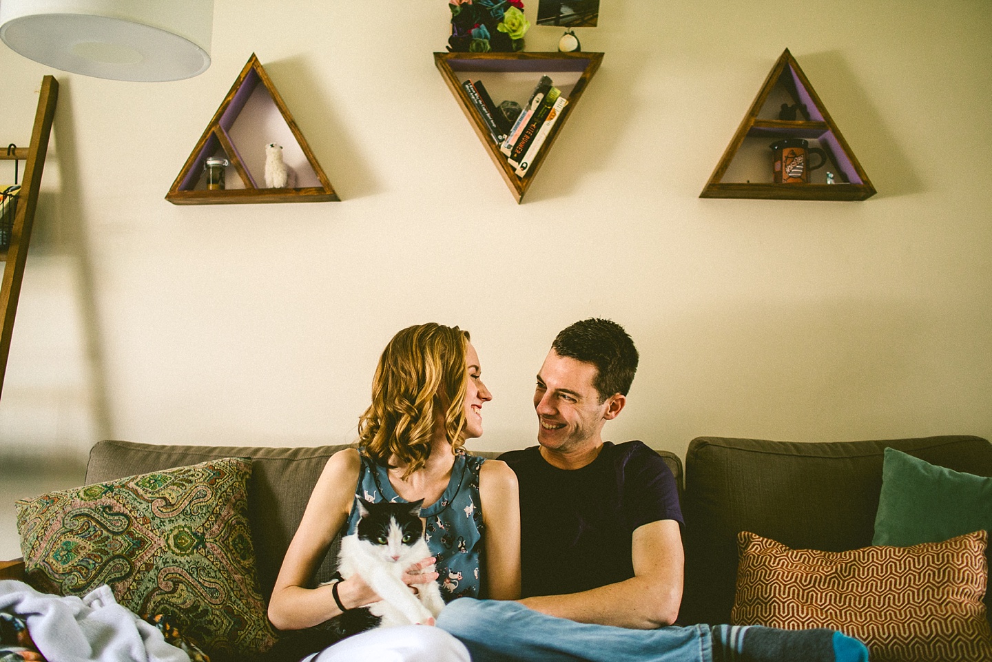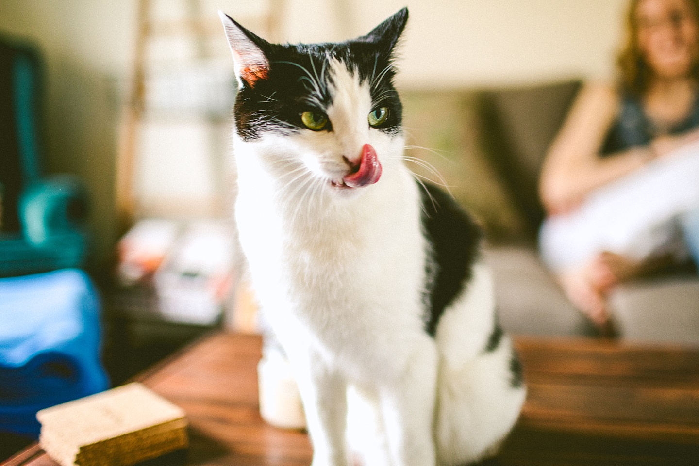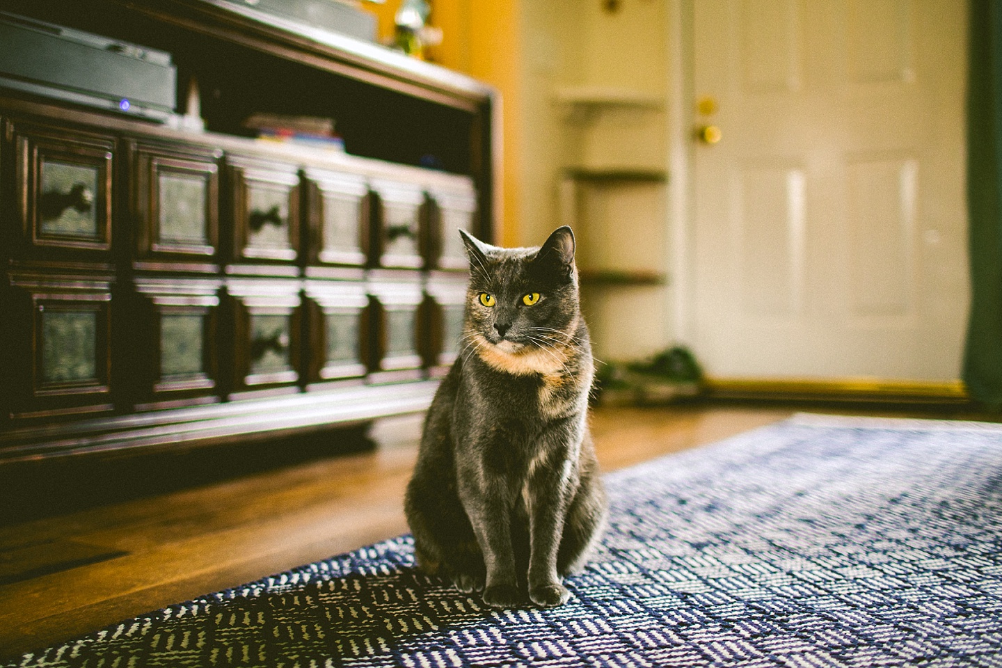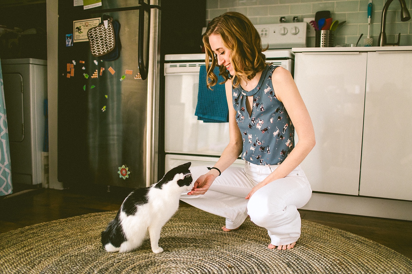 WE NEED MORE ENGAGEMENT SESSIONS WITH CATS. Do you hear me, internet? Cats. More cats. We are not short on adorable doggos, but we are short on cats. That being said, you have to hire us fully prepared that your engagement session is just going to turn into pictures of your cats. Jessica was prepared for that (cat dress, cat blanket, book on how to talk to your cat about guns). RJ did stop us during the session to say something like, “Wait, aren’t these supposed to be pictures of us?” but I’m pretty sure he was joking due to the cat salt & pepper shakers, Jackson Galaxy books, and polaroids of their cats adorning their walls.