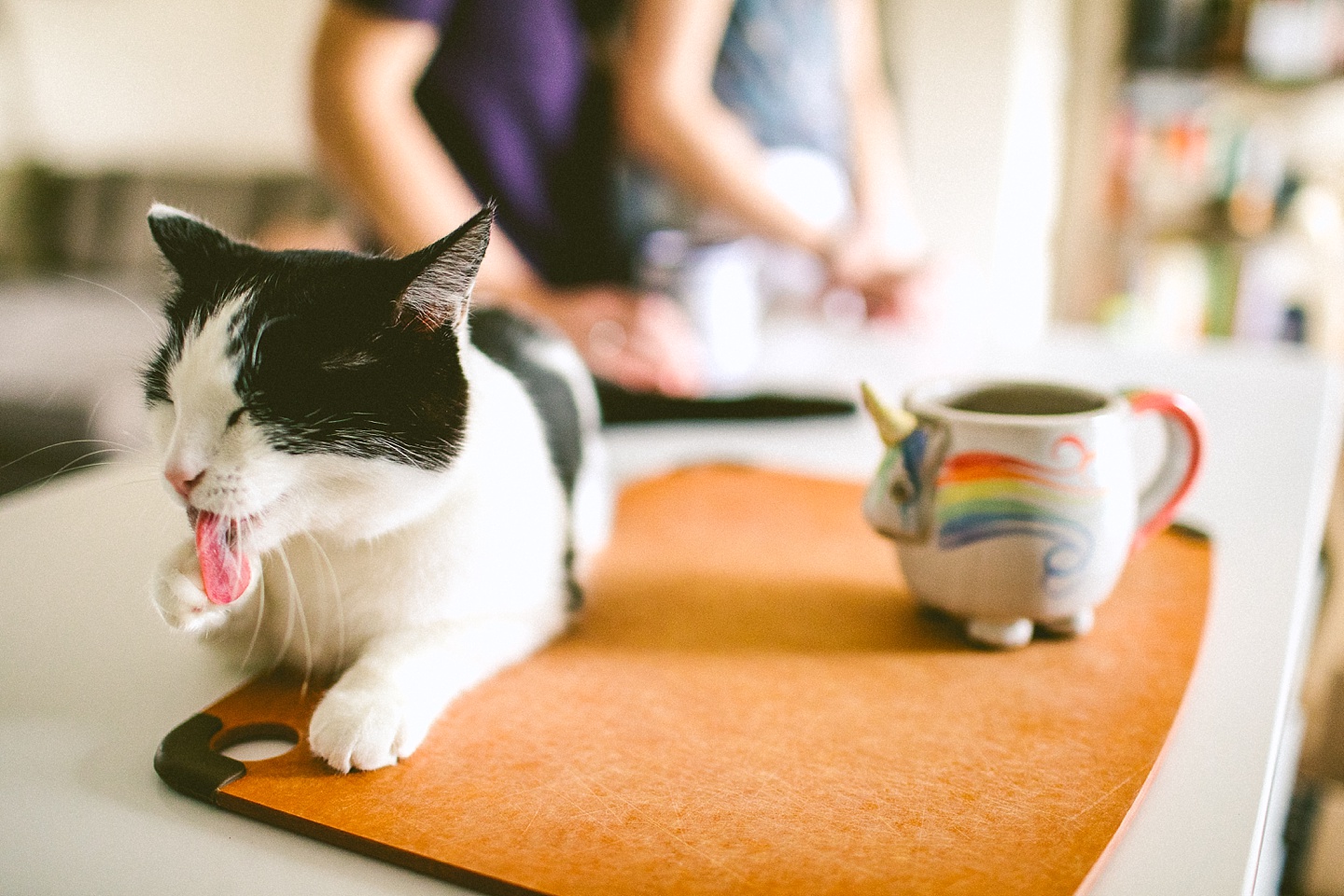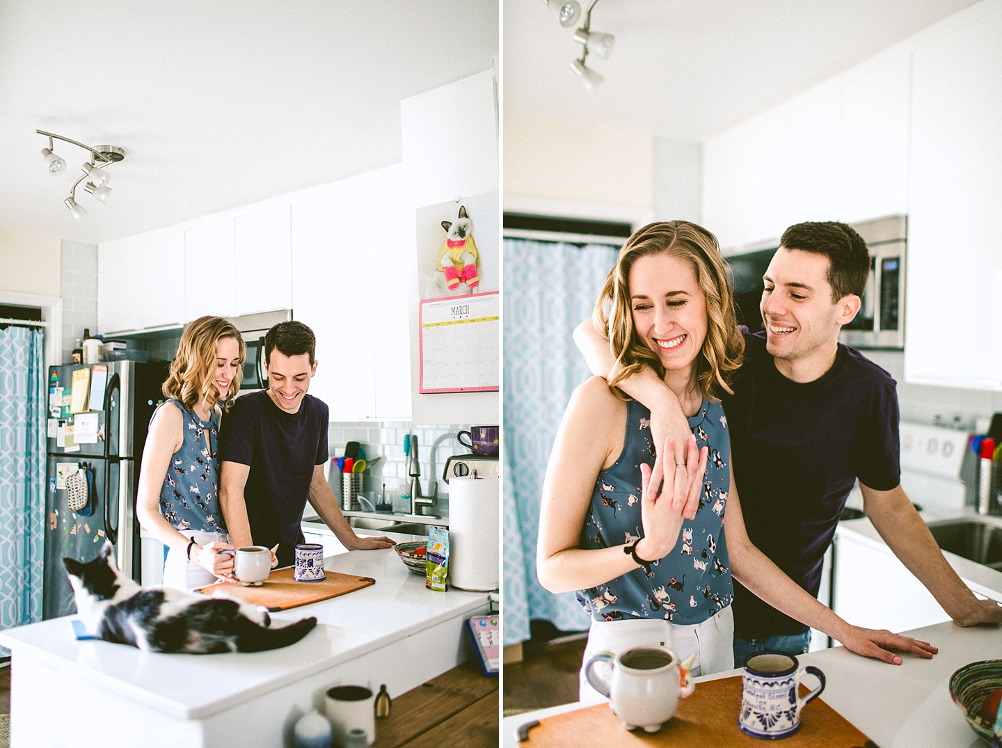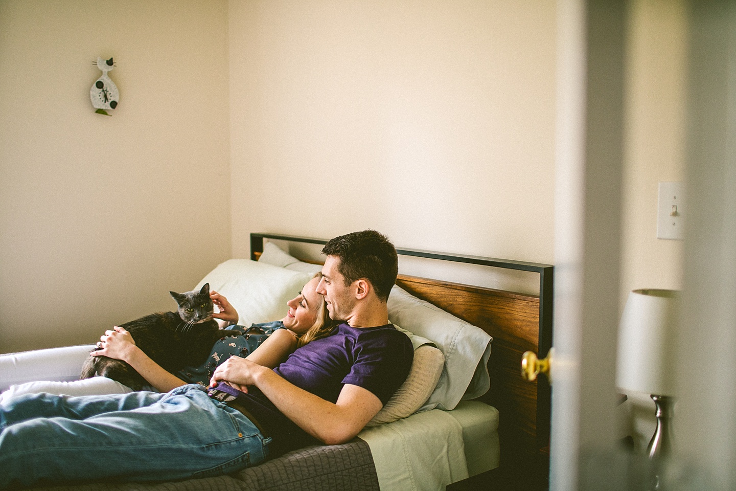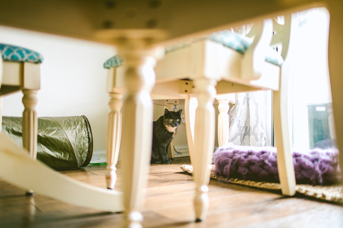 WE NEED MORE ENGAGEMENT SESSIONS WITH CATS. Do you hear me, internet? Cats. More cats. We are not short on adorable doggos, but we are short on cats. That being said, you have to hire us fully prepared that your engagement session is just going to turn into pictures of your cats. Jessica was prepared for that (cat dress, cat blanket, book on how to talk to your cat about guns). RJ did stop us during the session to say something like, “Wait, aren’t these supposed to be pictures of us?” but I’m pretty sure he was joking due to the cat salt & pepper shakers, Jackson Galaxy books, and polaroids of their cats adorning their walls.