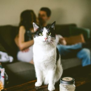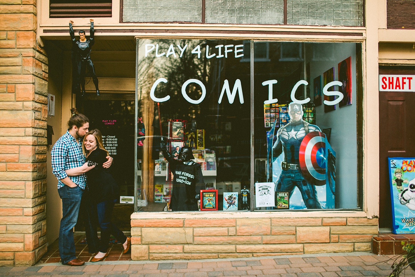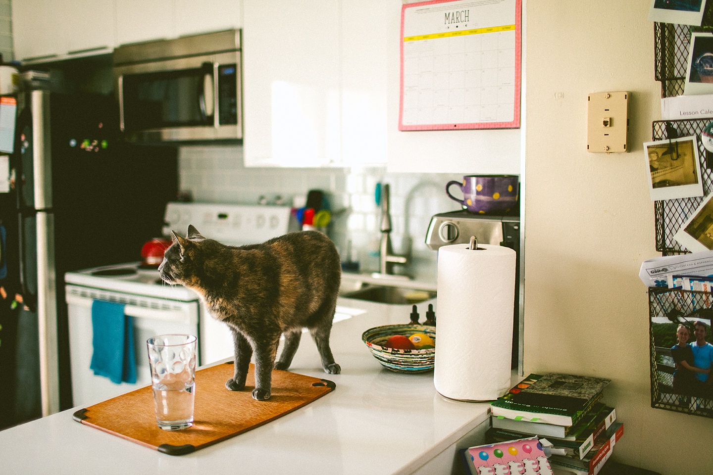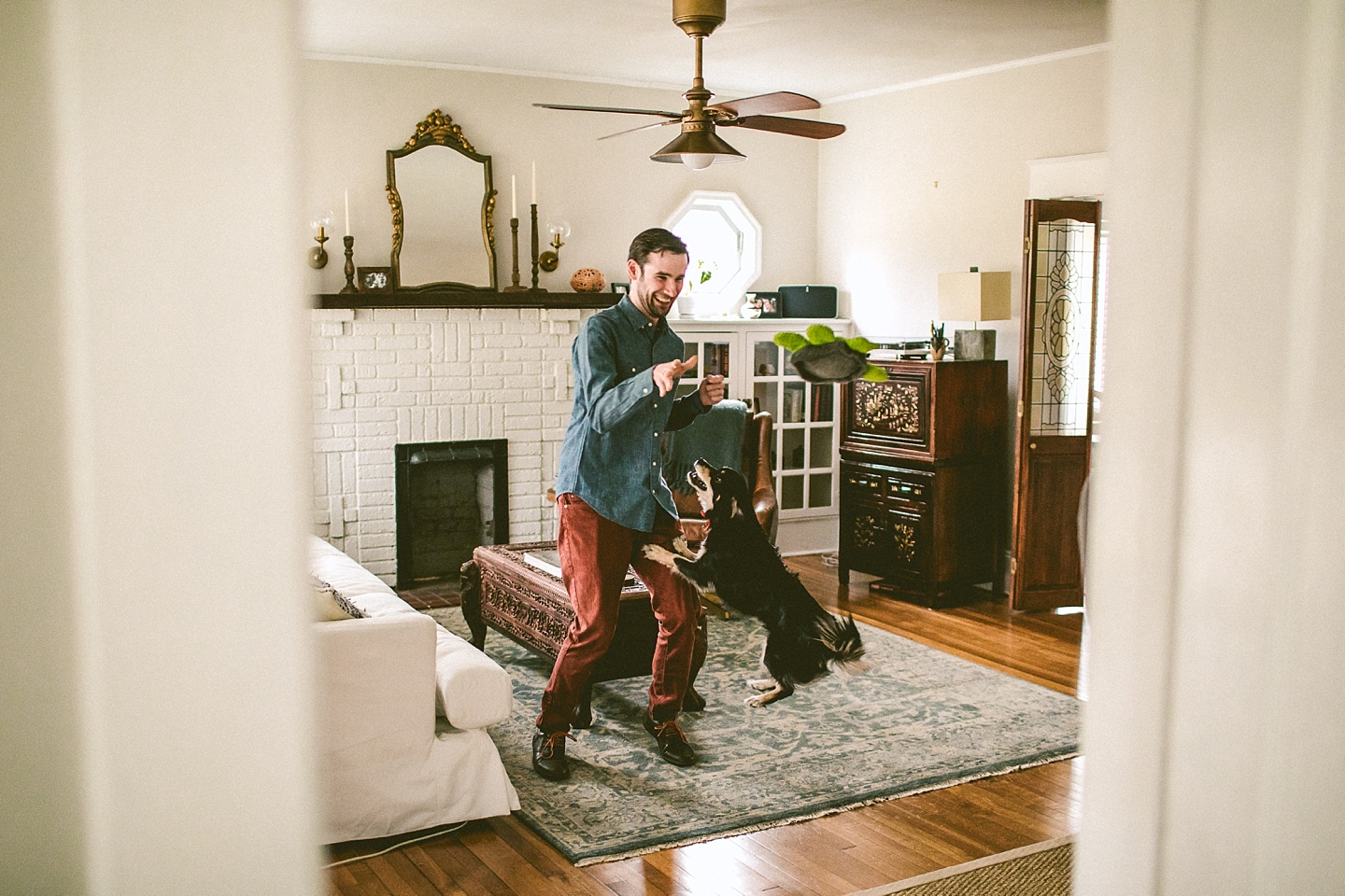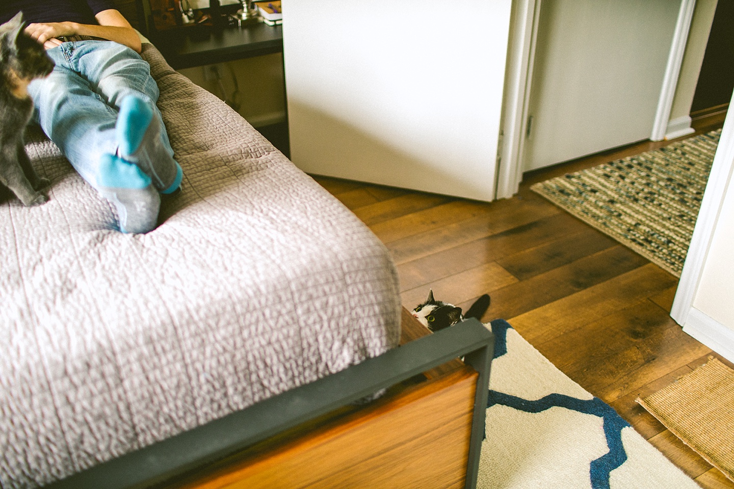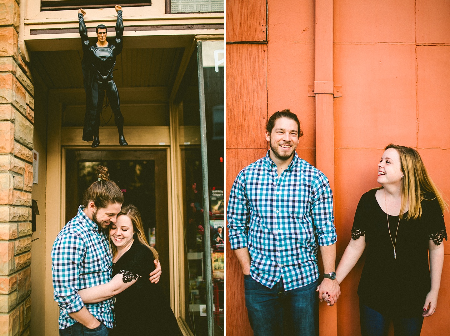 WE NEED MORE ENGAGEMENT SESSIONS WITH CATS. Do you hear me, internet? Cats. More cats. We are not short on adorable doggos, but we are short on cats. That being said, you have to hire us fully prepared that your engagement session is just going to turn into pictures of your cats. Jessica was prepared for that (cat dress, cat blanket, book on how to talk to your cat about guns). RJ did stop us during the session to say something like, “Wait, aren’t these supposed to be pictures of us?” but I’m pretty sure he was joking due to the cat salt & pepper shakers, Jackson Galaxy books, and polaroids of their cats adorning their walls.