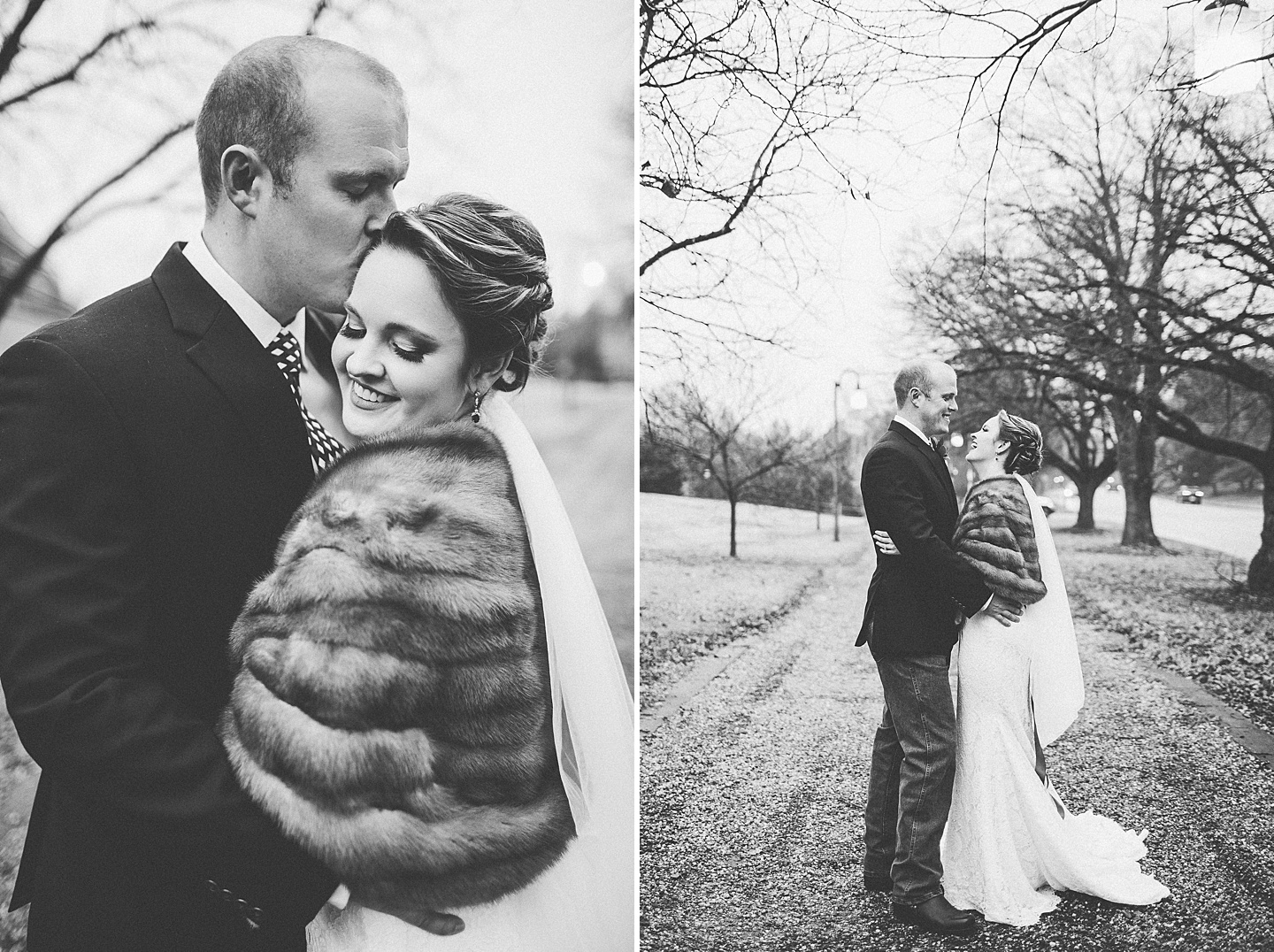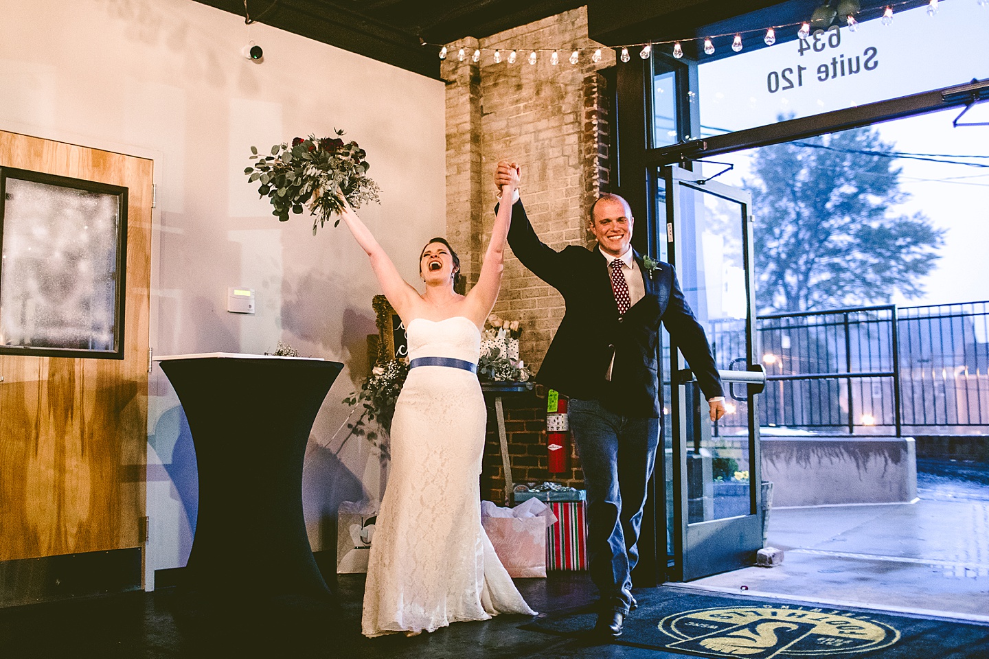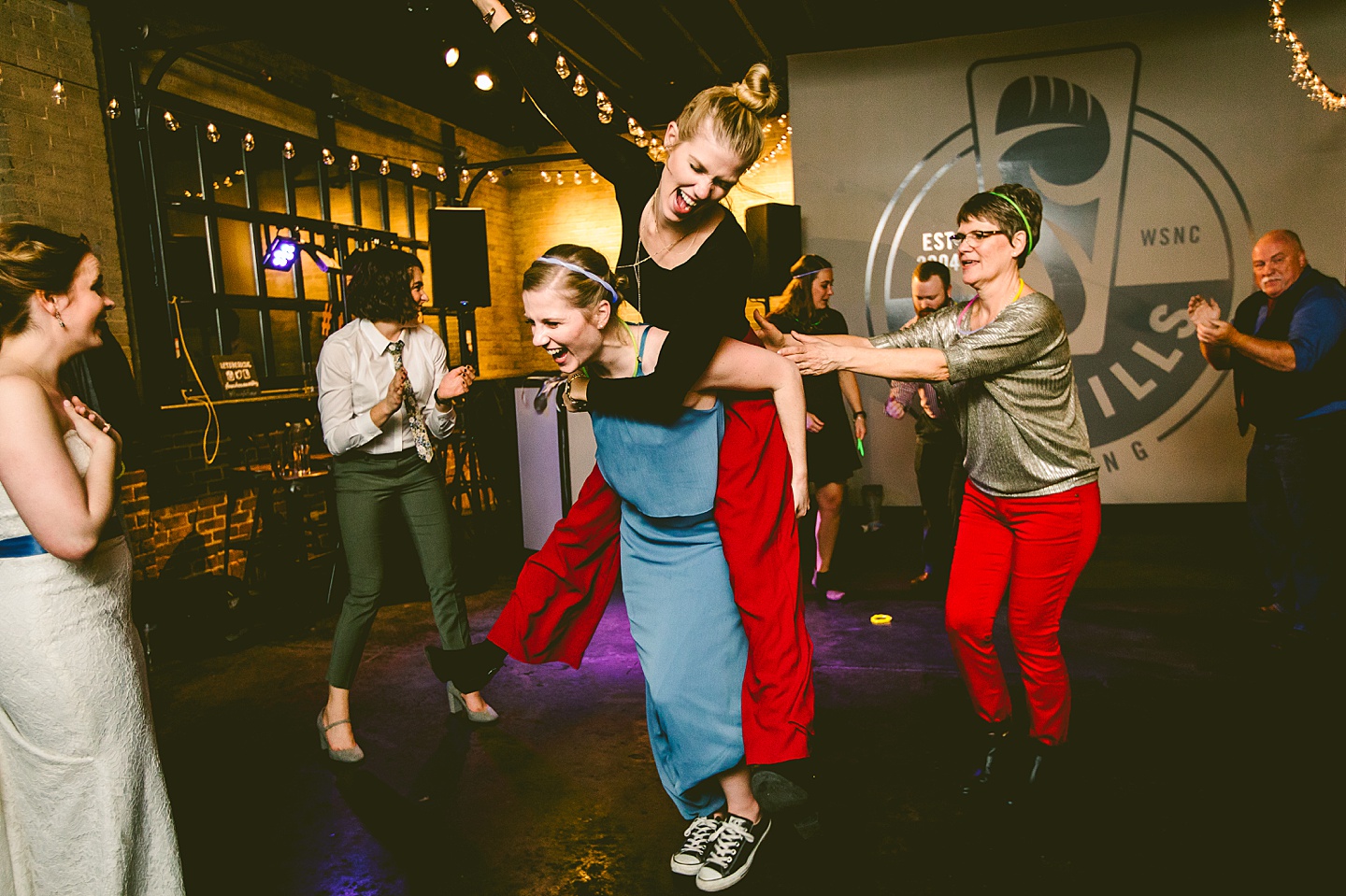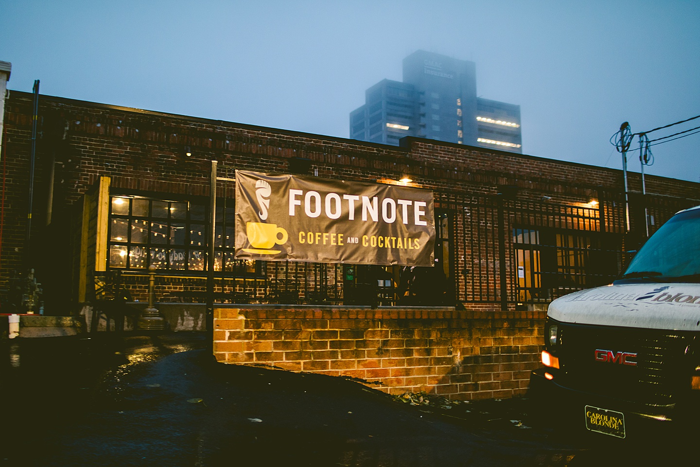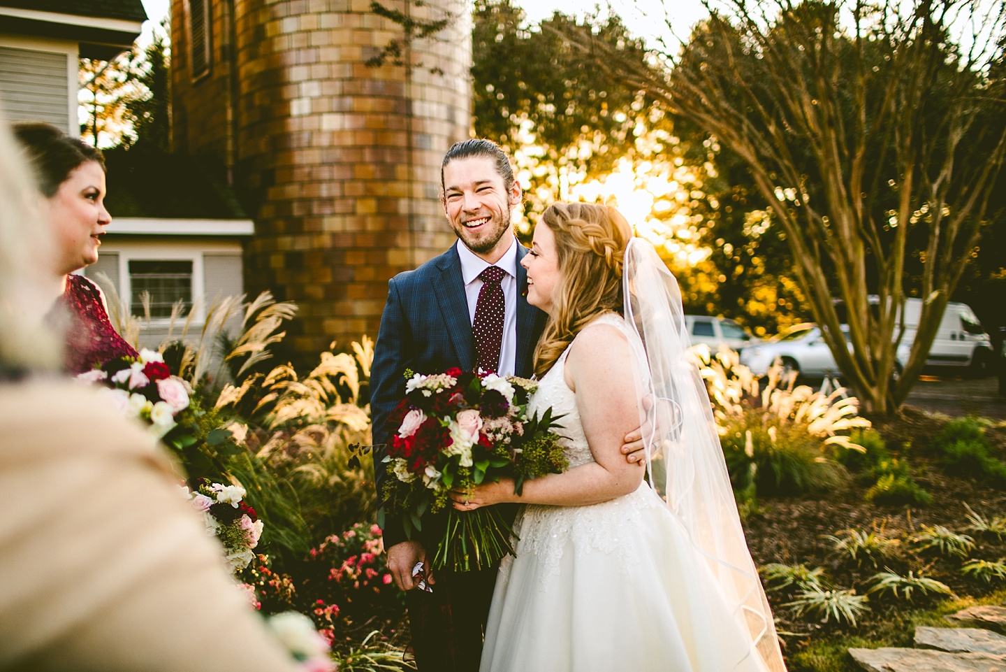 Prior to the pictures, Amber and Kevin were married at the Trinity Moravian Church in a ceremony that included some sweet traditions. A unity candle was lit first, then Amber and Kevin passed that light to their own candles, then to the wedding party members, and out into every wedding guest present. Amber was also wearing a pink ribbon prior to the ceremony, which was changed into a blue ribbon by her mother to signify a married woman in accordance with Moravian traditions. Then we froze outside for a while on a bridge. Then we went to Footnote to celebrate with dancing and cake and some Pearl Jam (yessss). It was a beautiful day for these two stellar people, and we wish them the best of luck in their lives in Oklahoma! So glad we were your photographers!