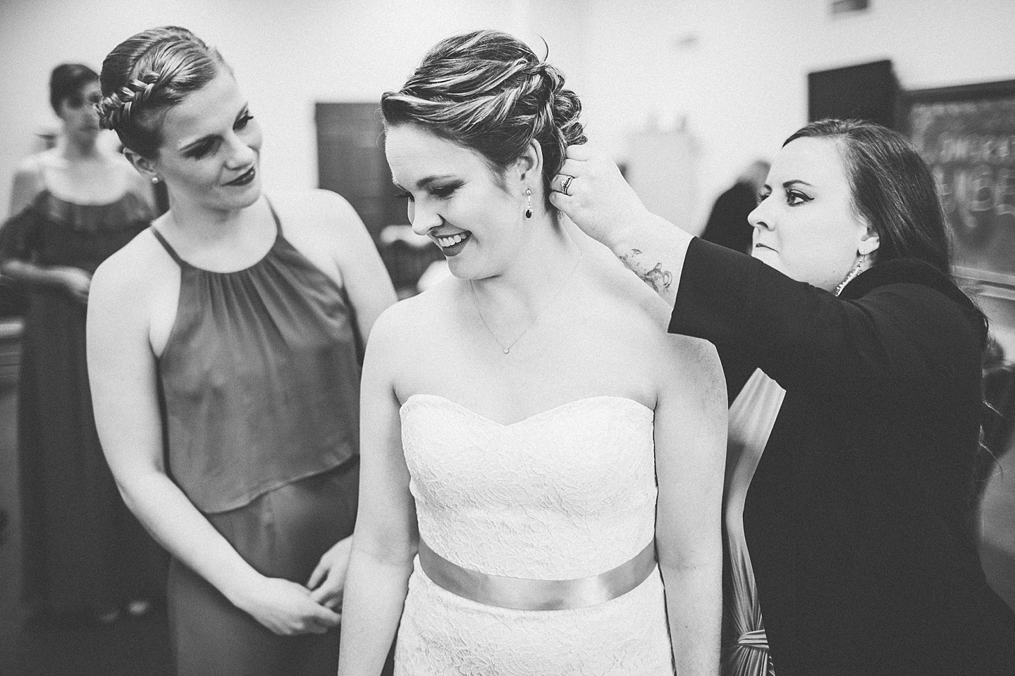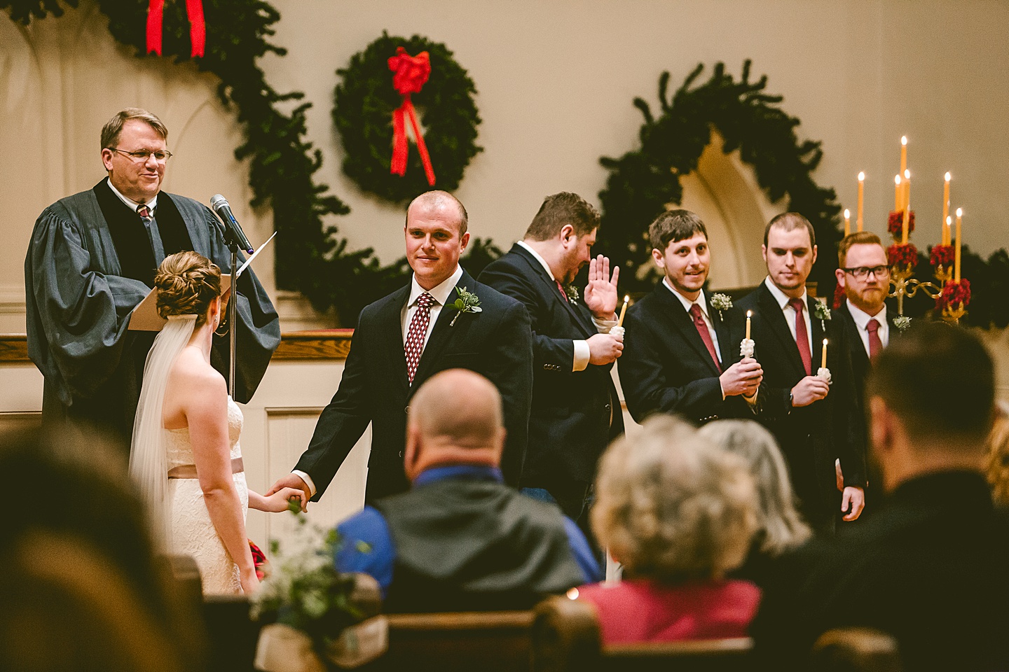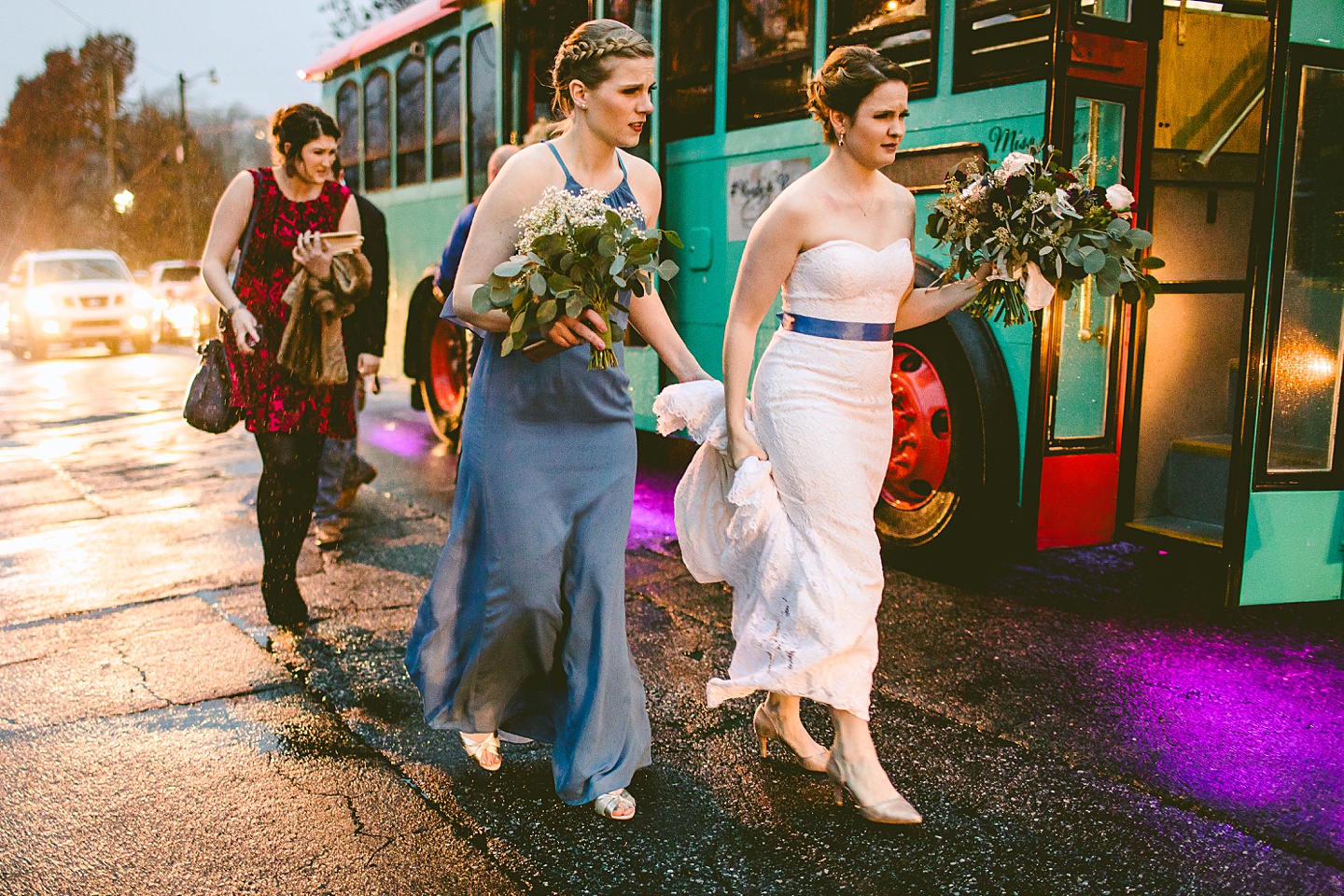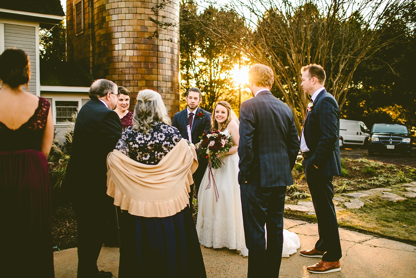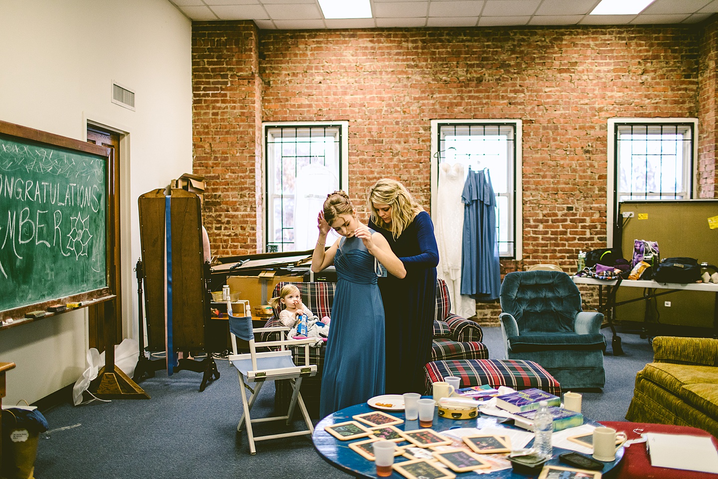 Prior to the pictures, Amber and Kevin were married at the Trinity Moravian Church in a ceremony that included some sweet traditions. A unity candle was lit first, then Amber and Kevin passed that light to their own candles, then to the wedding party members, and out into every wedding guest present. Amber was also wearing a pink ribbon prior to the ceremony, which was changed into a blue ribbon by her mother to signify a married woman in accordance with Moravian traditions. Then we froze outside for a while on a bridge. Then we went to Footnote to celebrate with dancing and cake and some Pearl Jam (yessss). It was a beautiful day for these two stellar people, and we wish them the best of luck in their lives in Oklahoma! So glad we were your photographers!