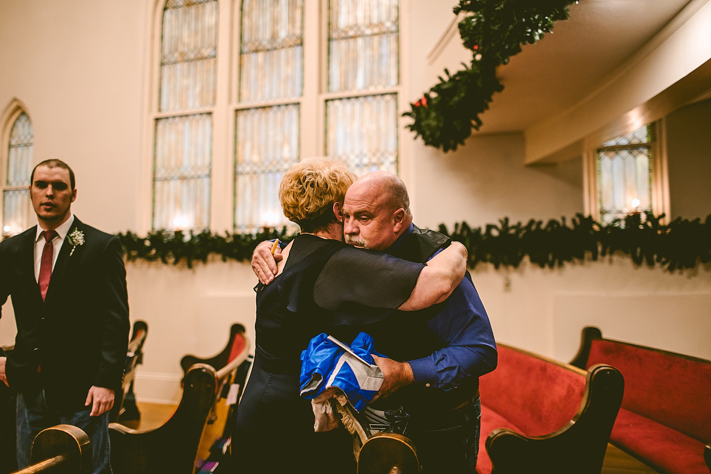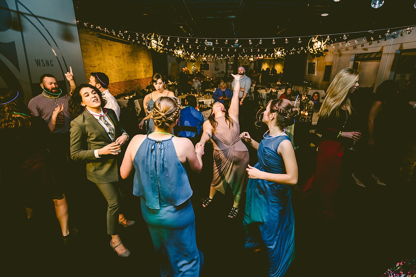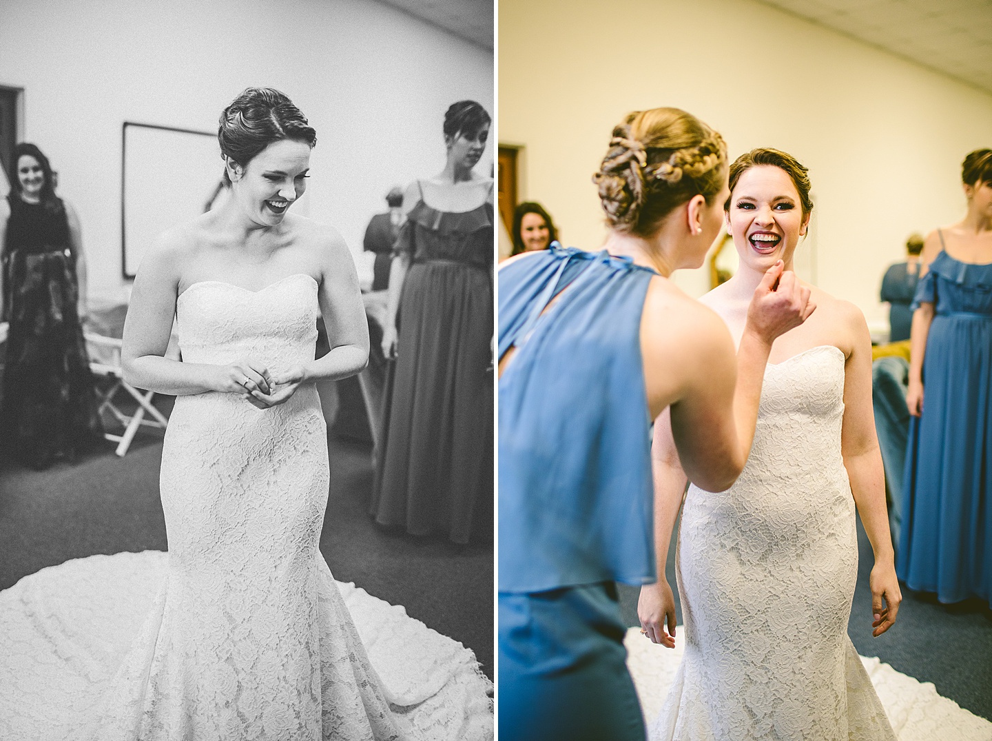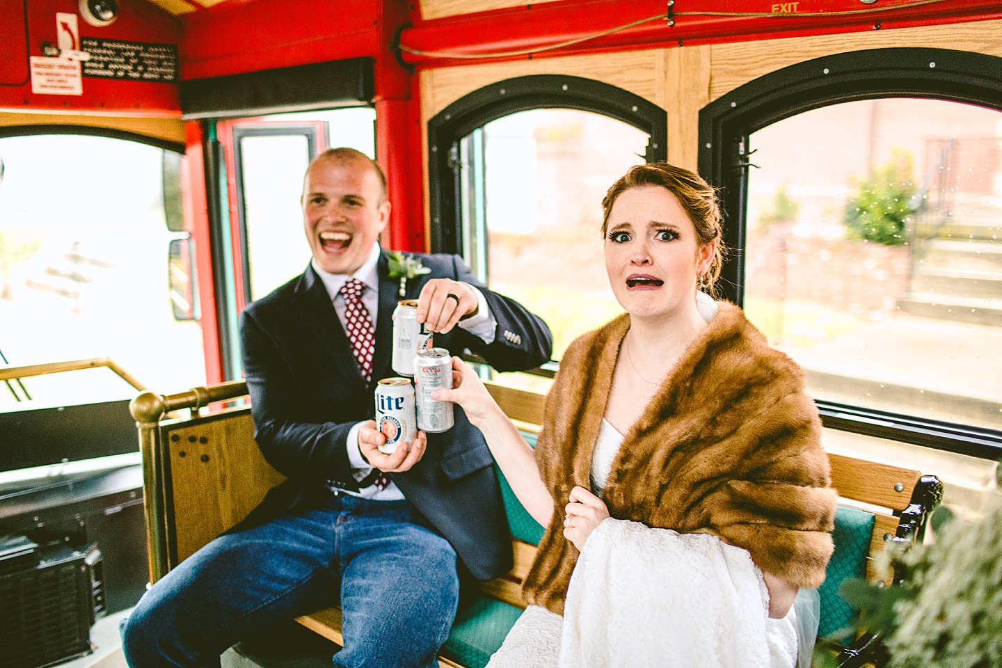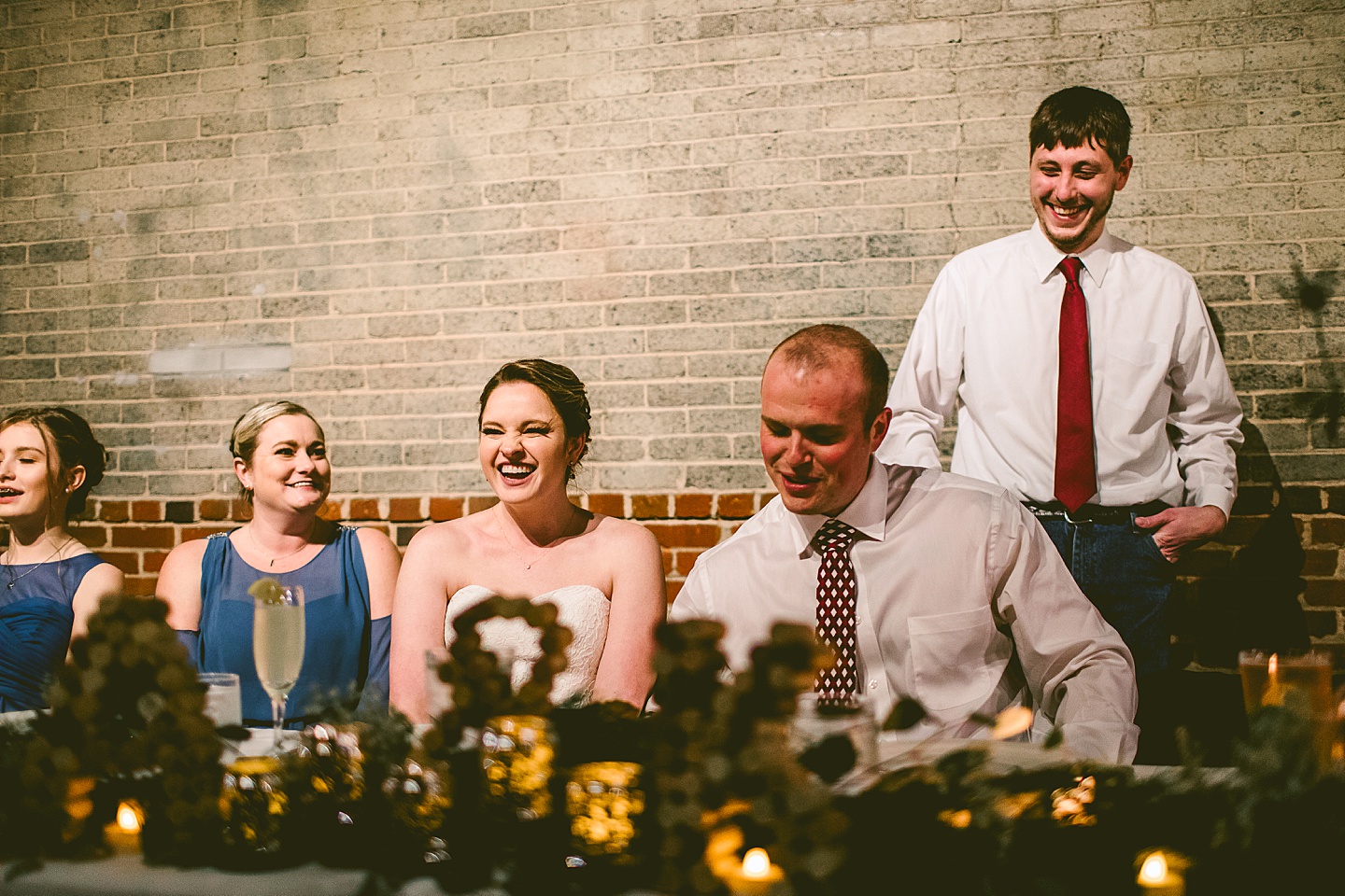 Prior to the pictures, Amber and Kevin were married at the Trinity Moravian Church in a ceremony that included some sweet traditions. A unity candle was lit first, then Amber and Kevin passed that light to their own candles, then to the wedding party members, and out into every wedding guest present. Amber was also wearing a pink ribbon prior to the ceremony, which was changed into a blue ribbon by her mother to signify a married woman in accordance with Moravian traditions. Then we froze outside for a while on a bridge. Then we went to Footnote to celebrate with dancing and cake and some Pearl Jam (yessss). It was a beautiful day for these two stellar people, and we wish them the best of luck in their lives in Oklahoma! So glad we were your photographers!