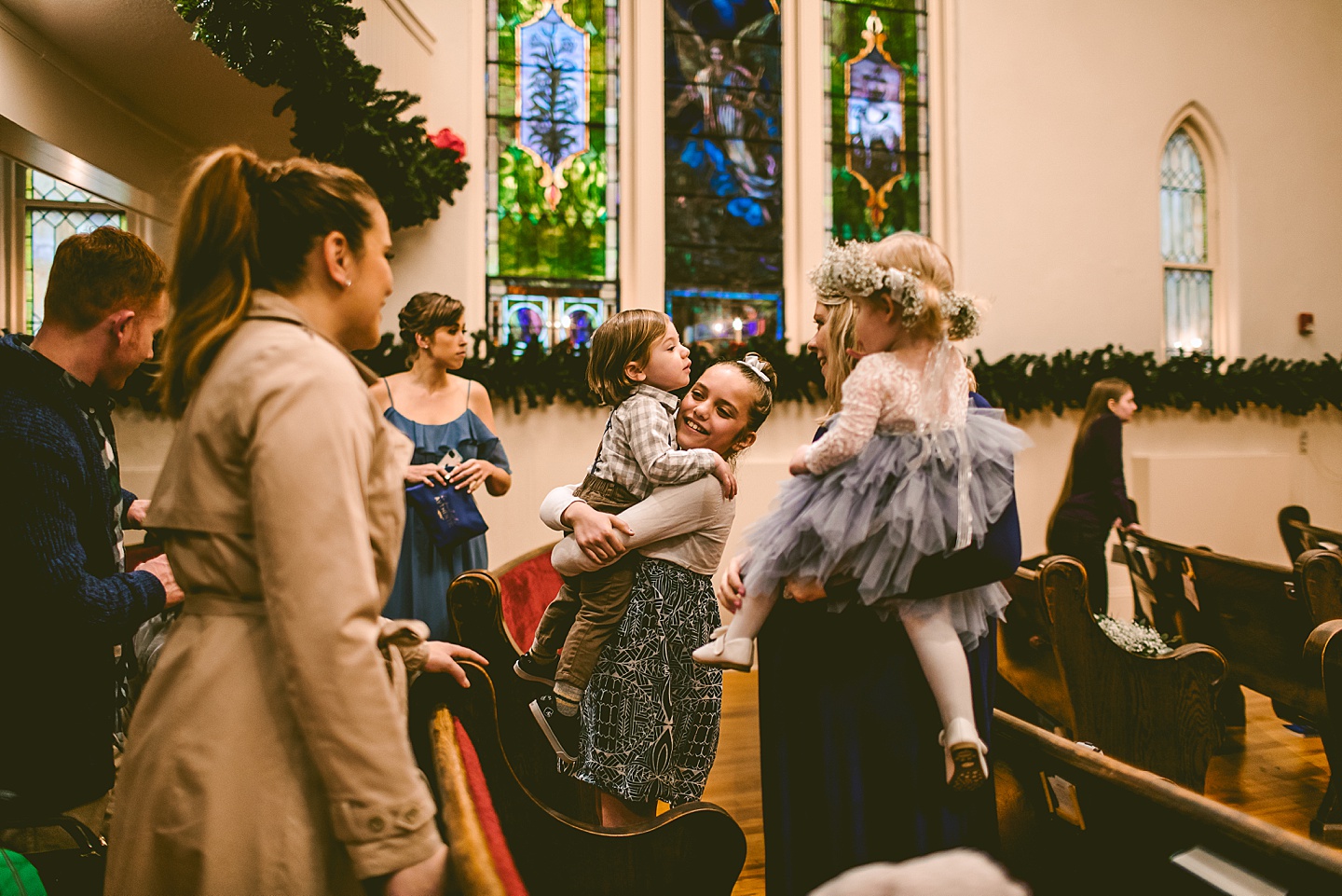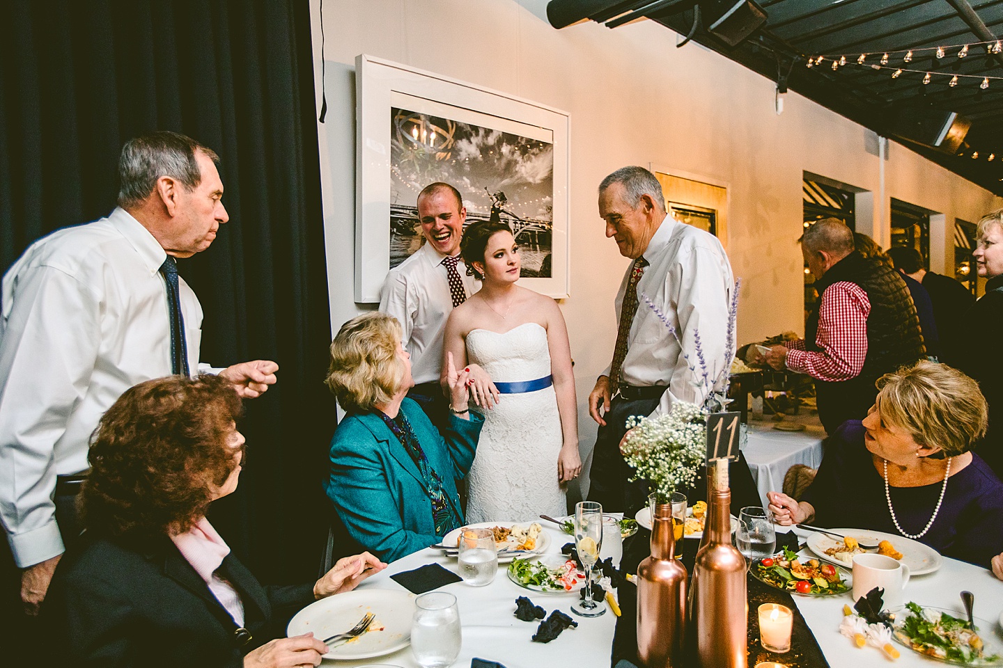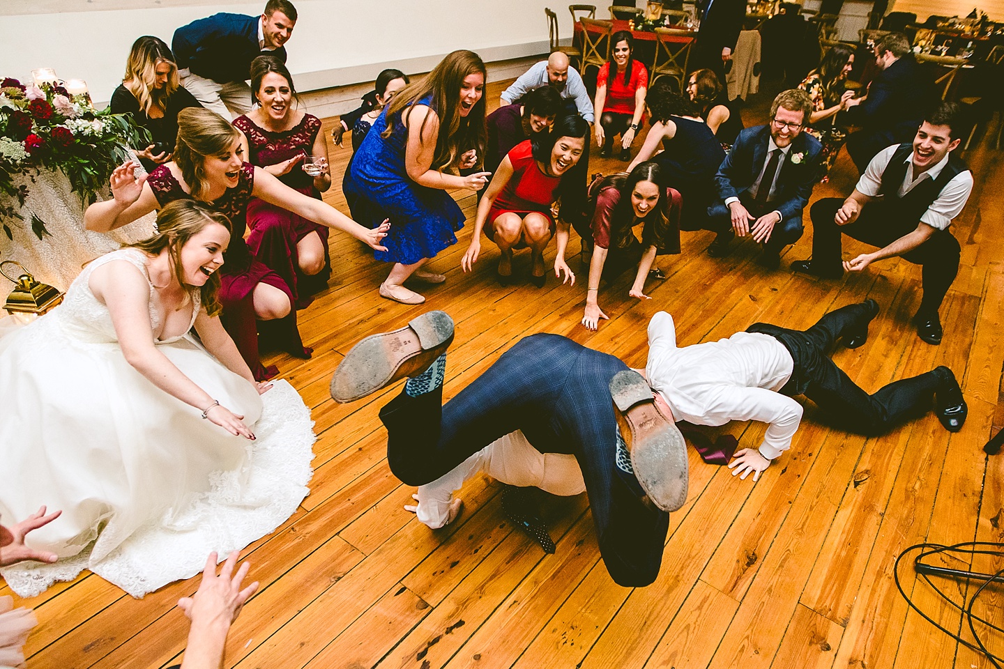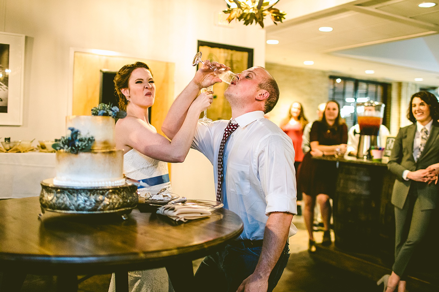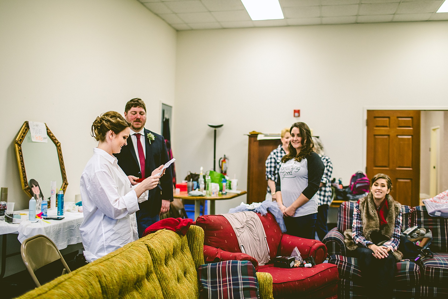 Prior to the pictures, Amber and Kevin were married at the Trinity Moravian Church in a ceremony that included some sweet traditions. A unity candle was lit first, then Amber and Kevin passed that light to their own candles, then to the wedding party members, and out into every wedding guest present. Amber was also wearing a pink ribbon prior to the ceremony, which was changed into a blue ribbon by her mother to signify a married woman in accordance with Moravian traditions. Then we froze outside for a while on a bridge. Then we went to Footnote to celebrate with dancing and cake and some Pearl Jam (yessss). It was a beautiful day for these two stellar people, and we wish them the best of luck in their lives in Oklahoma! So glad we were your photographers!