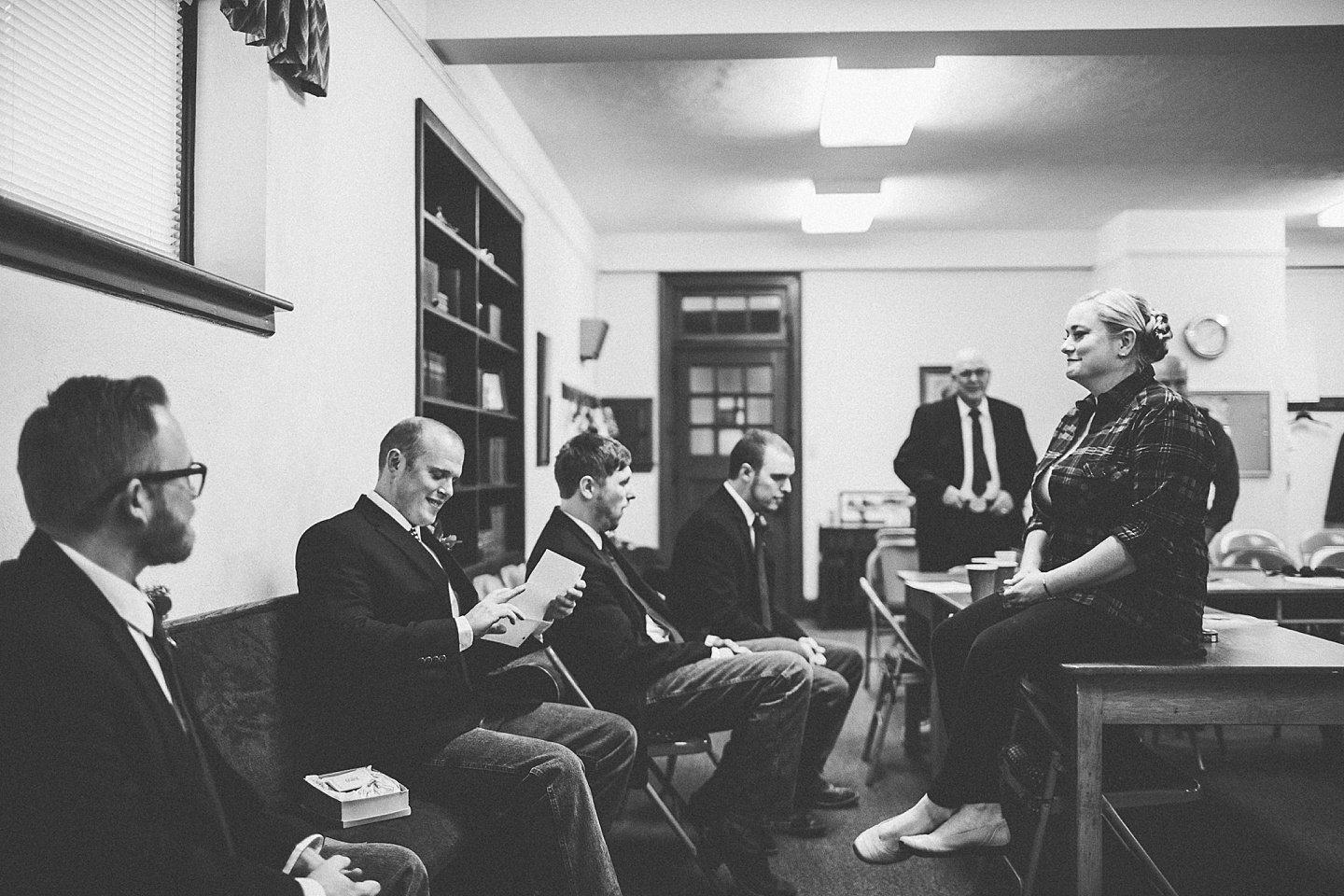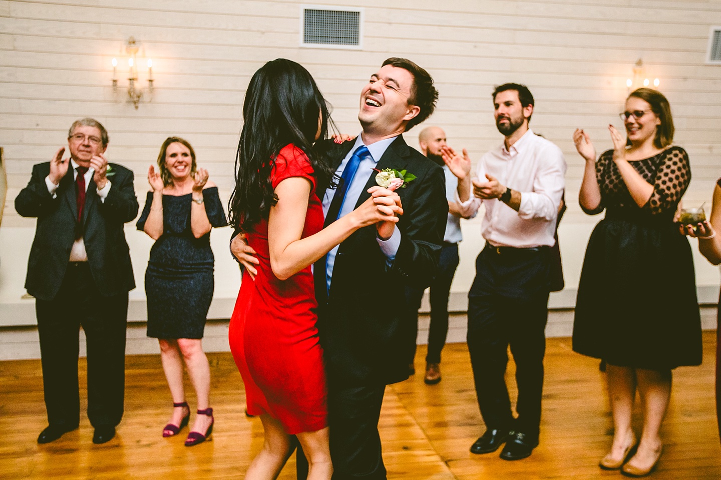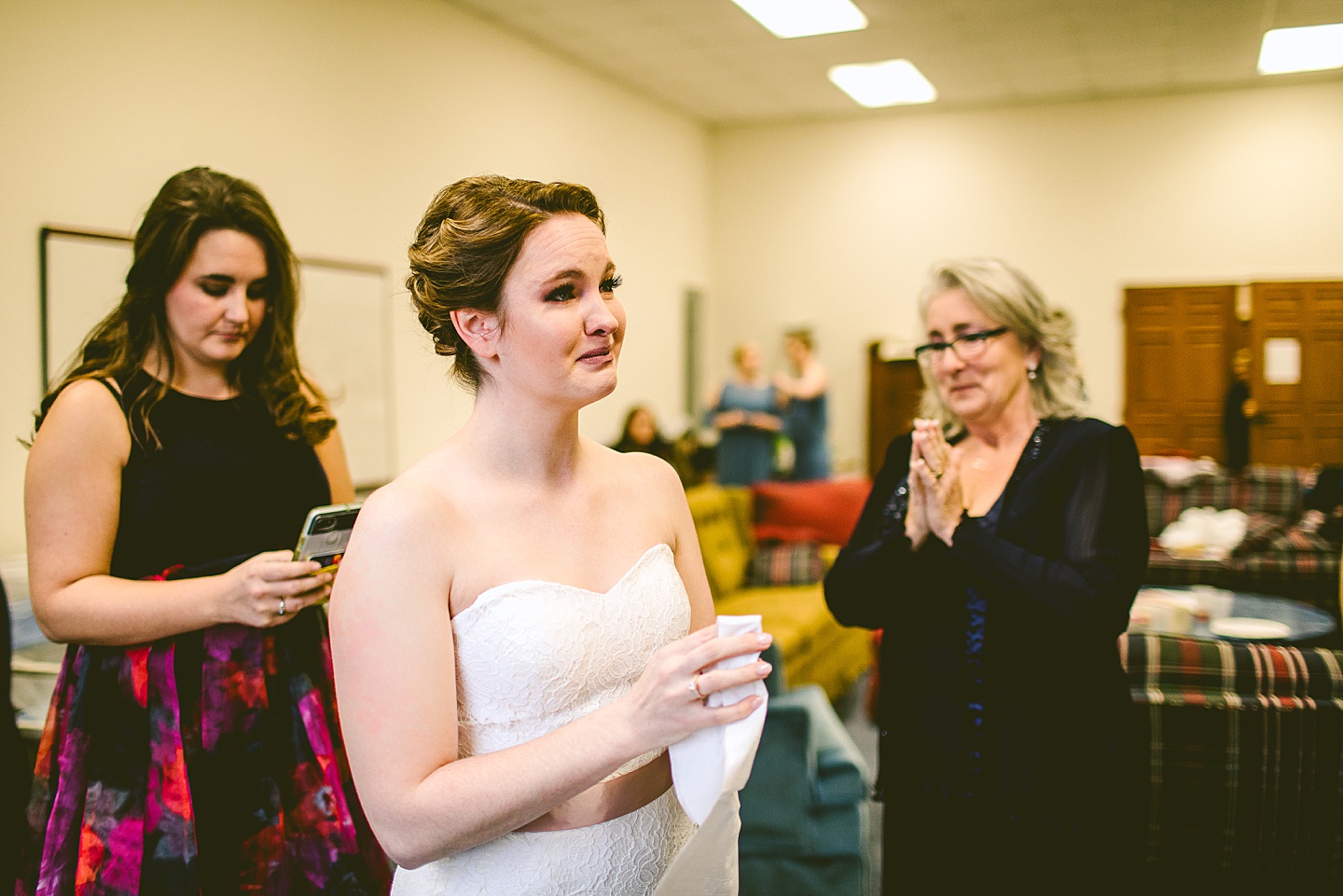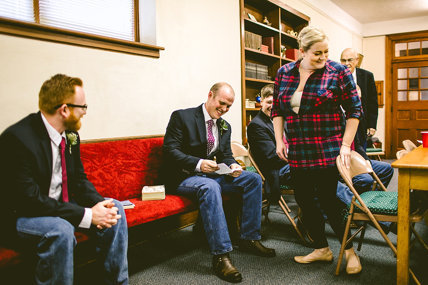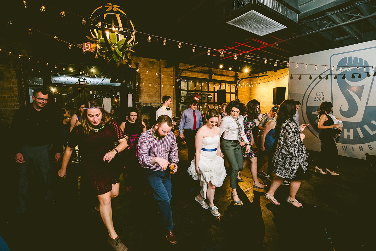 Prior to the pictures, Amber and Kevin were married at the Trinity Moravian Church in a ceremony that included some sweet traditions. A unity candle was lit first, then Amber and Kevin passed that light to their own candles, then to the wedding party members, and out into every wedding guest present. Amber was also wearing a pink ribbon prior to the ceremony, which was changed into a blue ribbon by her mother to signify a married woman in accordance with Moravian traditions. Then we froze outside for a while on a bridge. Then we went to Footnote to celebrate with dancing and cake and some Pearl Jam (yessss). It was a beautiful day for these two stellar people, and we wish them the best of luck in their lives in Oklahoma! So glad we were your photographers!