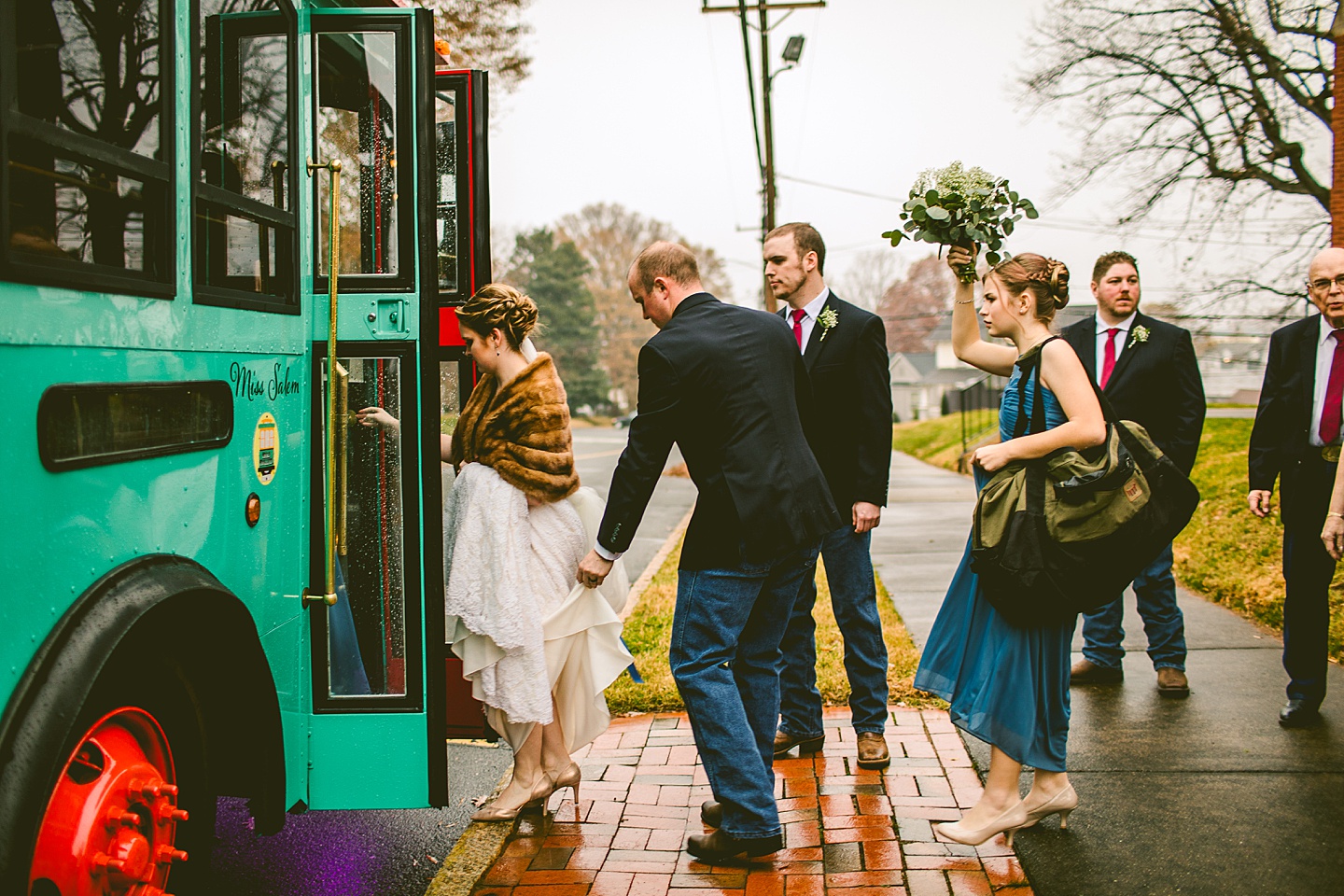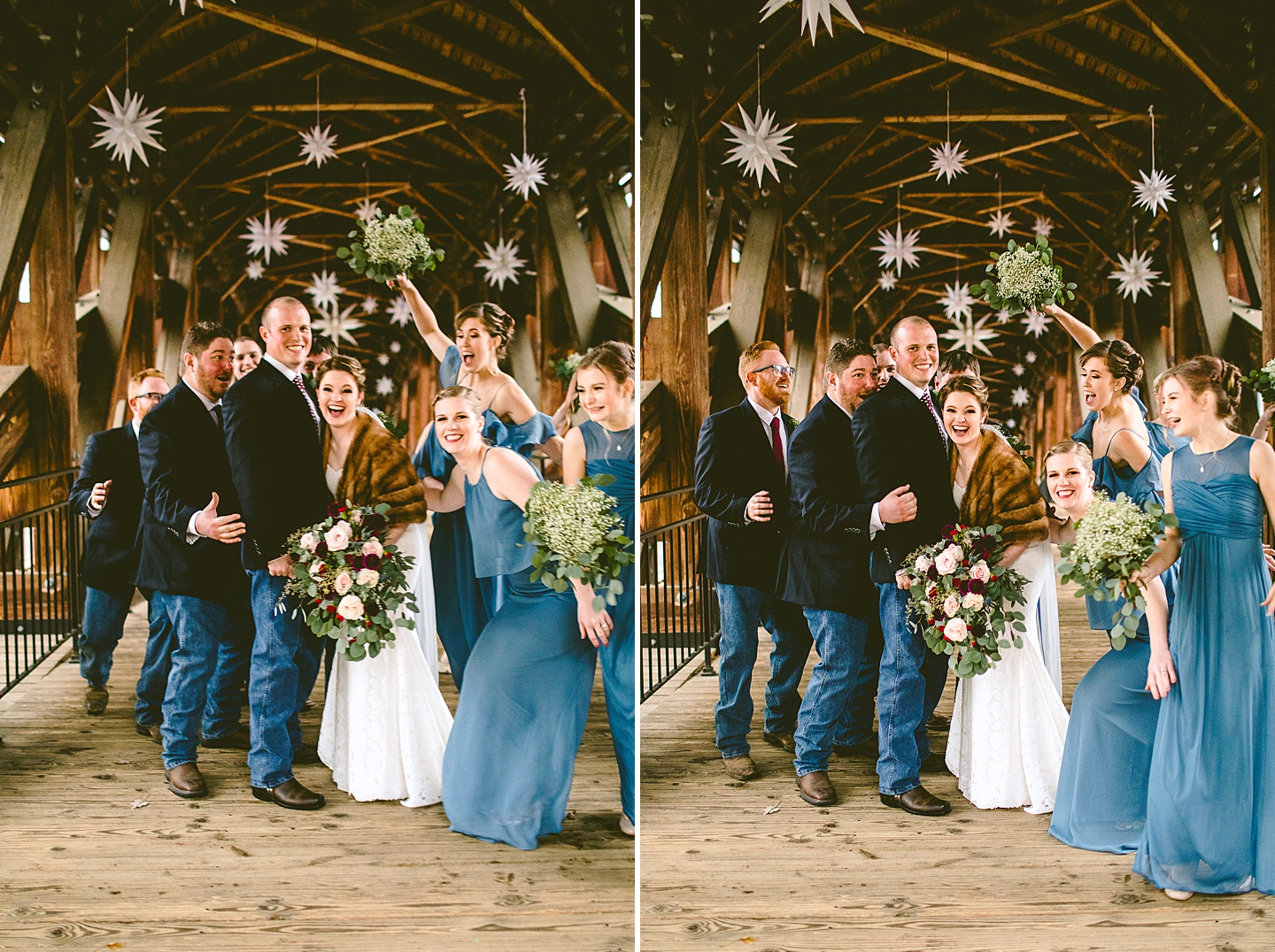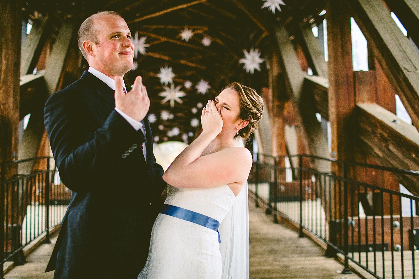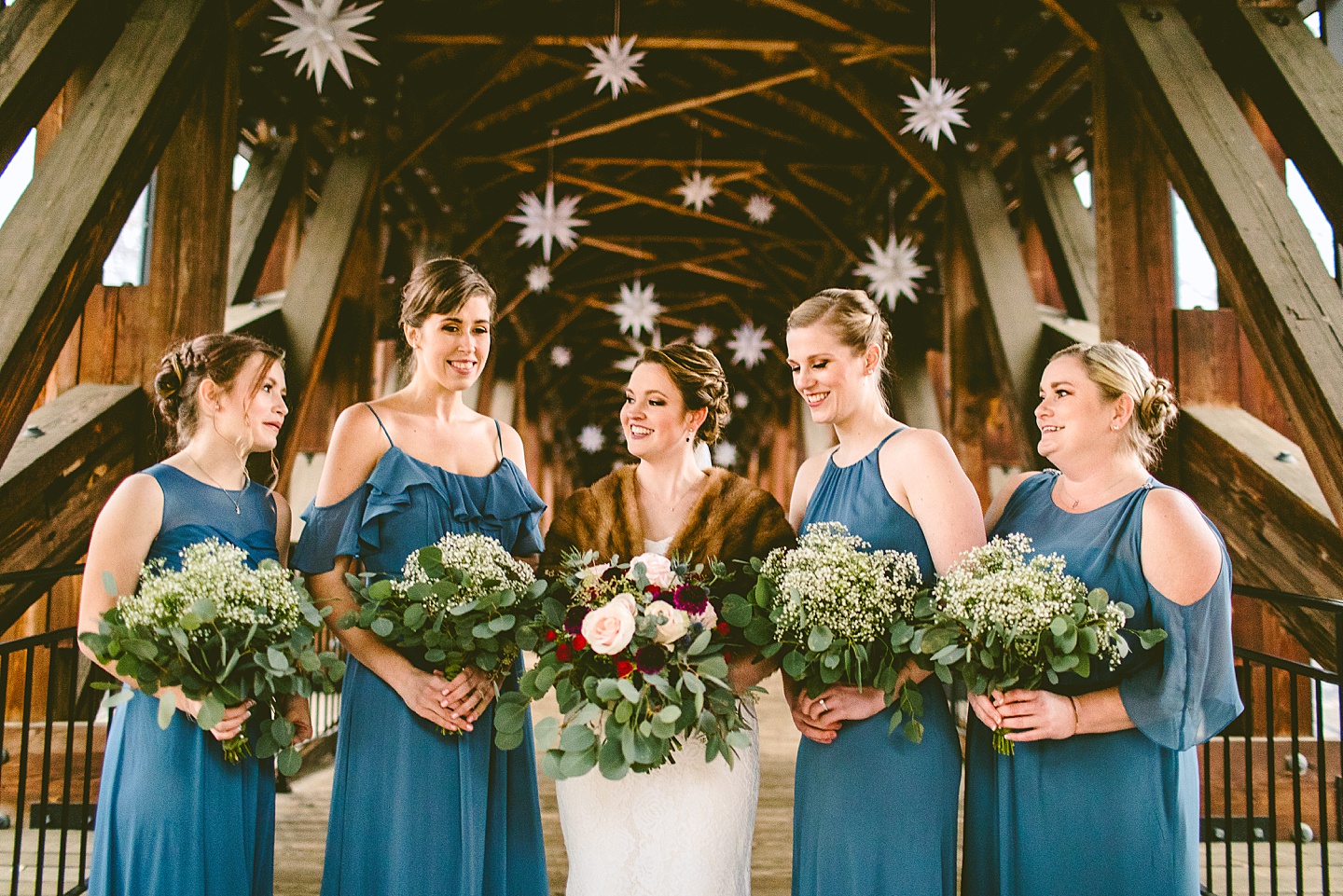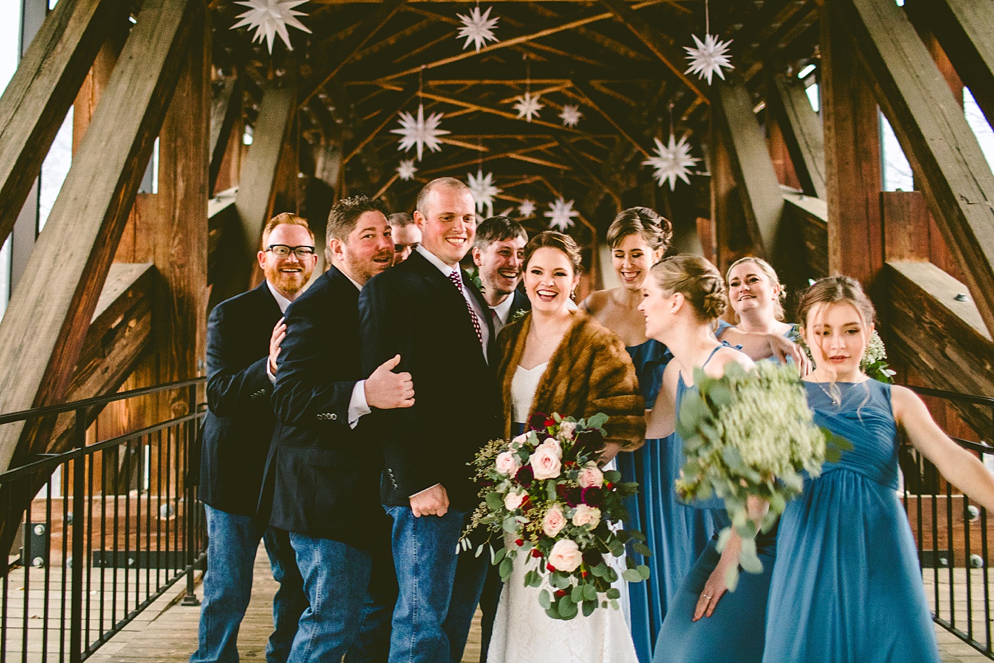 Amber and Kevin have been client gems for many months now and we’ve been so lucky to have them! Not only do they like cats (check) and Star Wars (check) and The Walking Dead (check) and Game of Thrones (check) but they are also going to Costa Rica for their honeymoon which is where we went (check) AND are rad enough people to not let a decent amount of really cold rain and weather get them down for their wedding. We were planning on doing their portraits around Old Salem (which is so cute from what I saw on the trolley) but due to pretty significant rainfall and super cold conditions we headed straight for the WONDERFULLY ADORABLE covered bridge instead and took over. Not a bad rain plan for pictures at all. Amber and Kevin remained positive and adorable themselves and had a great time, so rain didn’t spoil this parade. And I am loving all these winter stoles! Not only do they look cute but I do get them to wear them occasionally for half the time shooting so they also keep me warm as well (that’s the only reason why I have brides sometimes remove them).