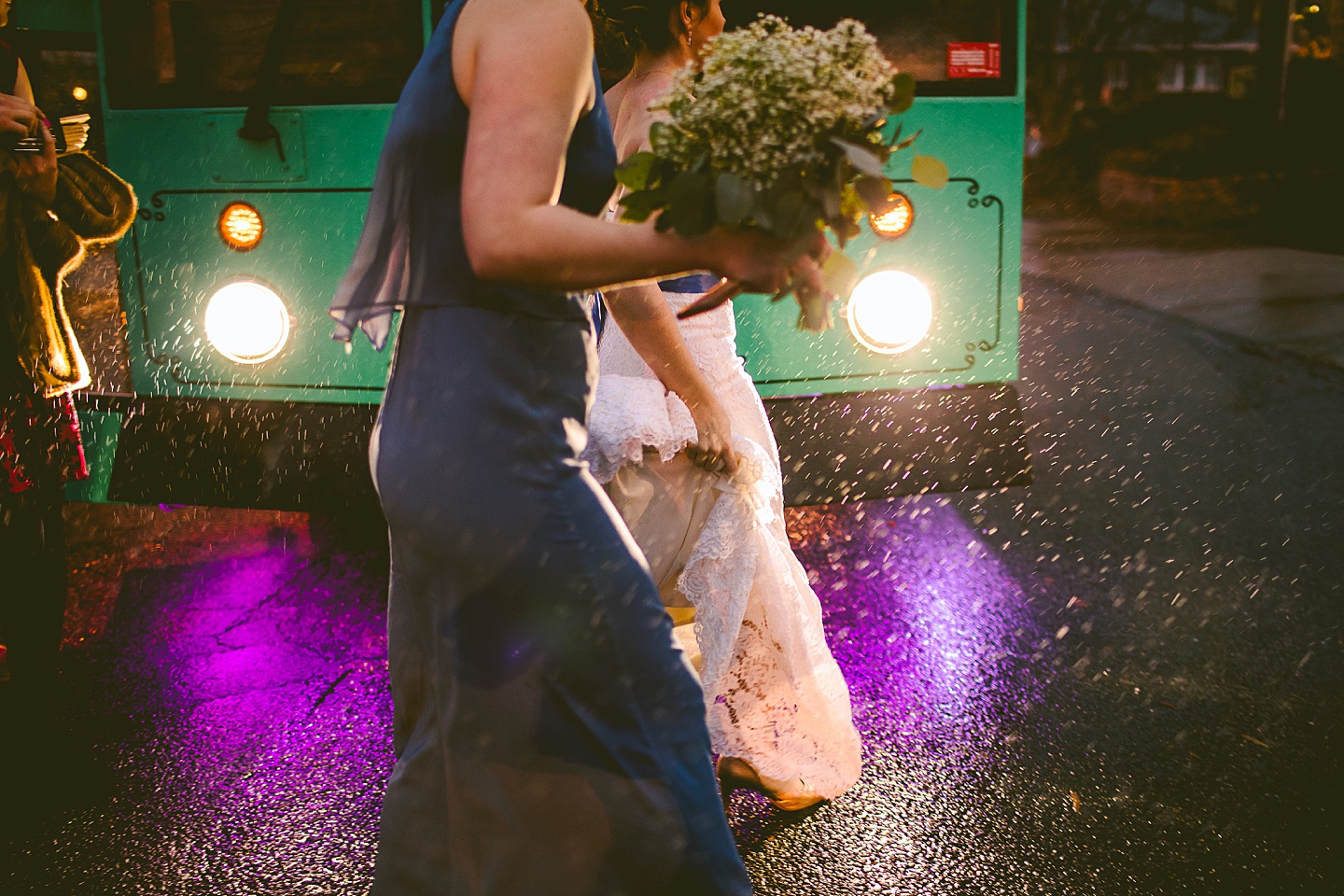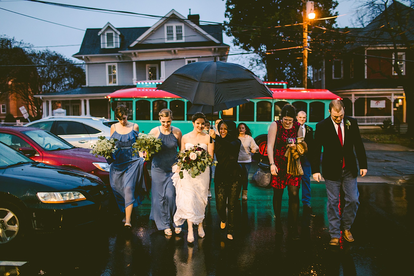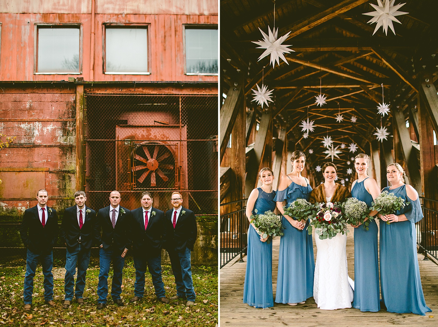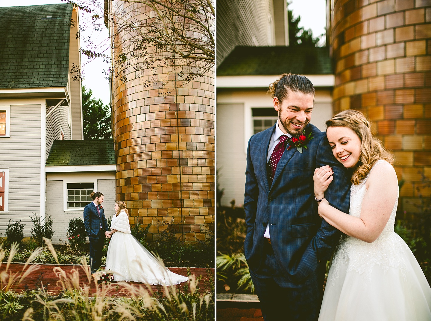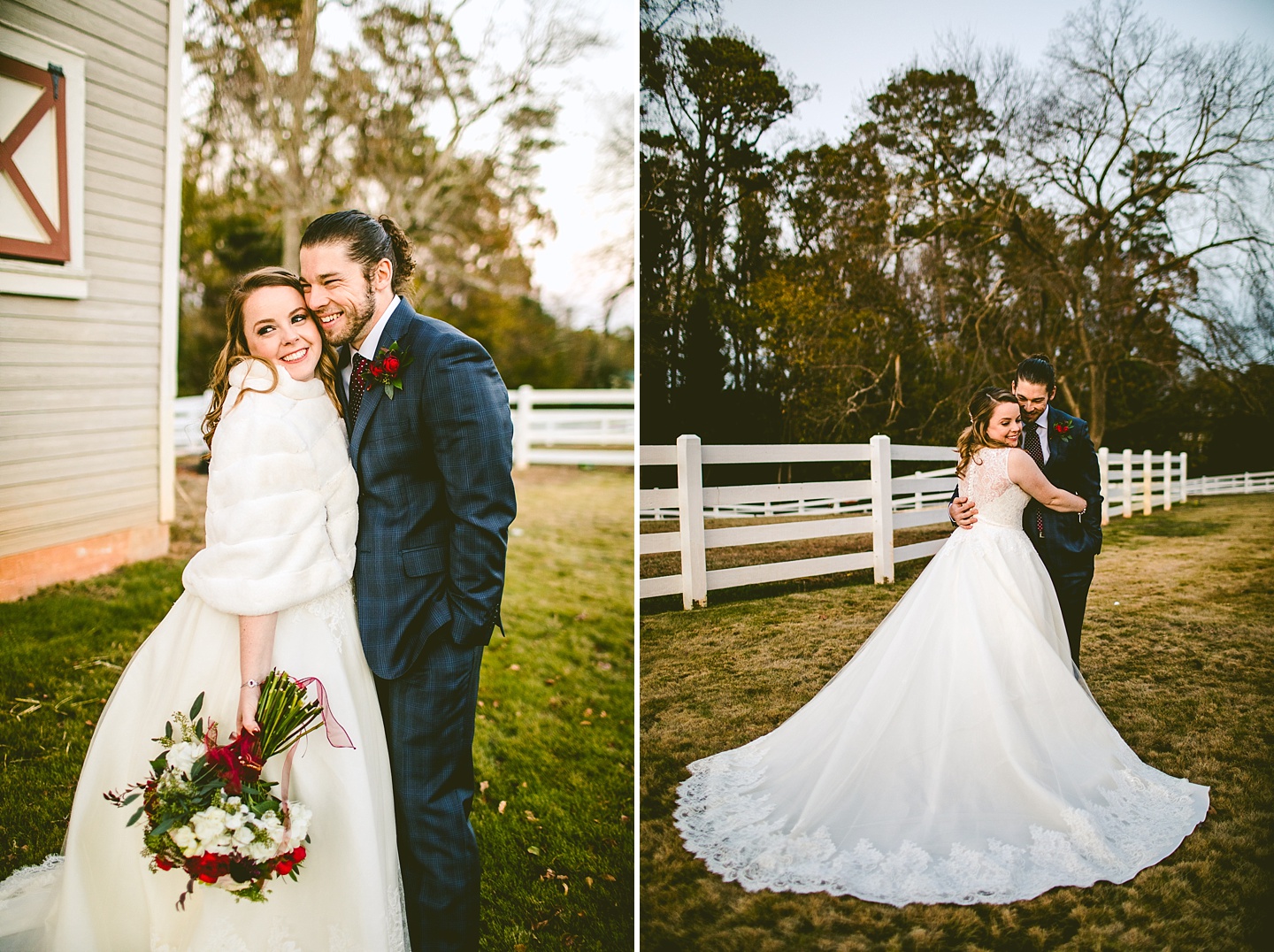 Amber and Kevin have been client gems for many months now and we’ve been so lucky to have them! Not only do they like cats (check) and Star Wars (check) and The Walking Dead (check) and Game of Thrones (check) but they are also going to Costa Rica for their honeymoon which is where we went (check) AND are rad enough people to not let a decent amount of really cold rain and weather get them down for their wedding. We were planning on doing their portraits around Old Salem (which is so cute from what I saw on the trolley) but due to pretty significant rainfall and super cold conditions we headed straight for the WONDERFULLY ADORABLE covered bridge instead and took over. Not a bad rain plan for pictures at all. Amber and Kevin remained positive and adorable themselves and had a great time, so rain didn’t spoil this parade. And I am loving all these winter stoles! Not only do they look cute but I do get them to wear them occasionally for half the time shooting so they also keep me warm as well (that’s the only reason why I have brides sometimes remove them).