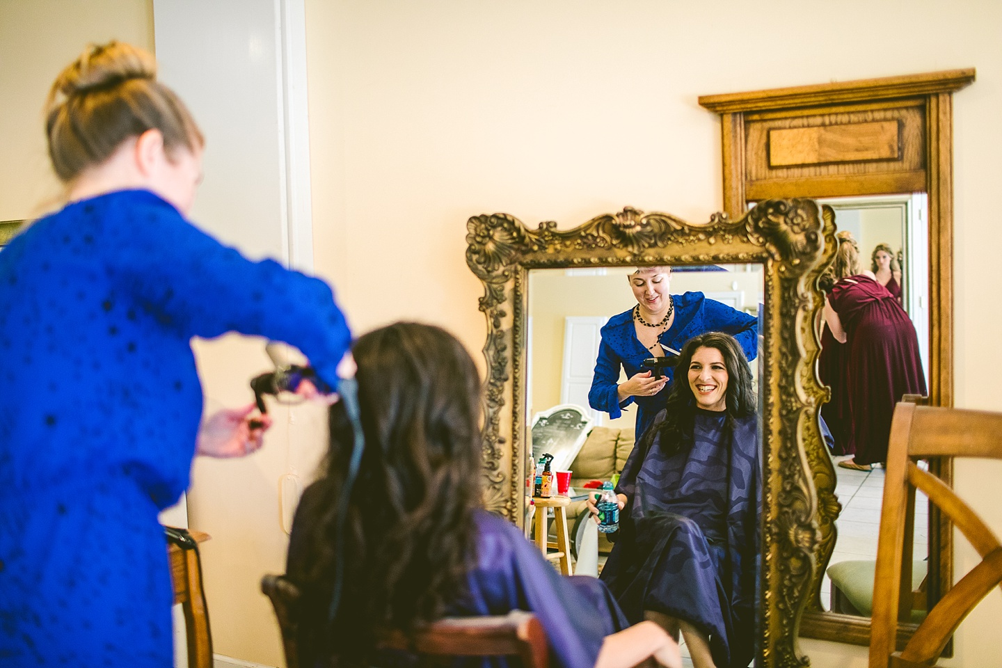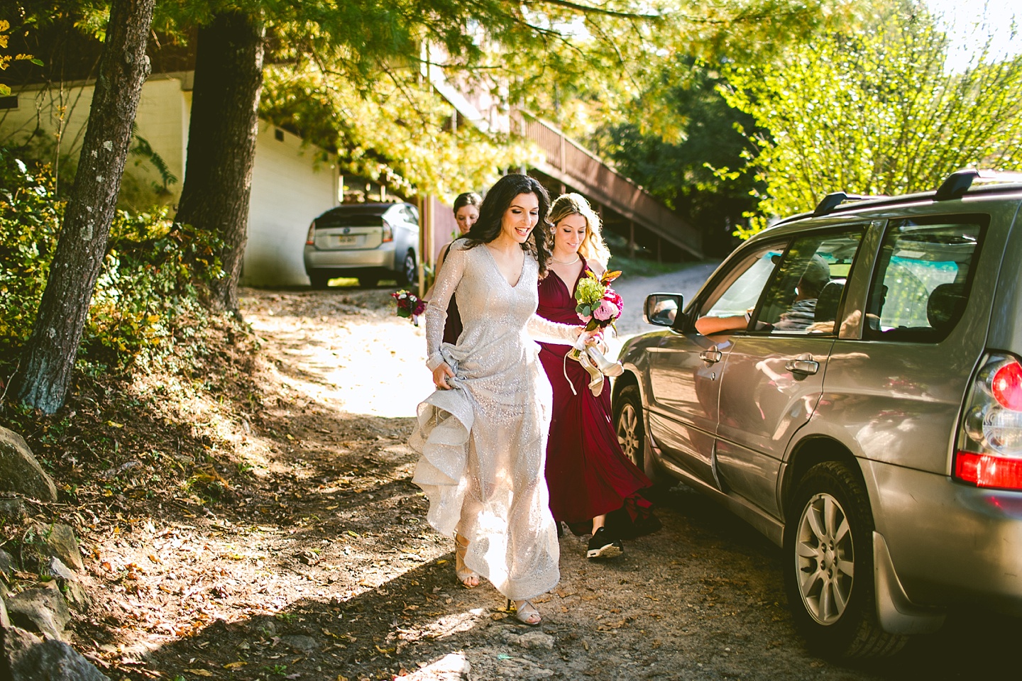 After the lovely and intimate rehearsal dinner, we got some beauty sleep and woke the next day to brave downtown Asheville to make our way to the Leau de Vi salon for hair and makeup. Of course, Asheville was holding the Bel Chere festival that weekend, and every street that we needed to get to was blocked off. :)