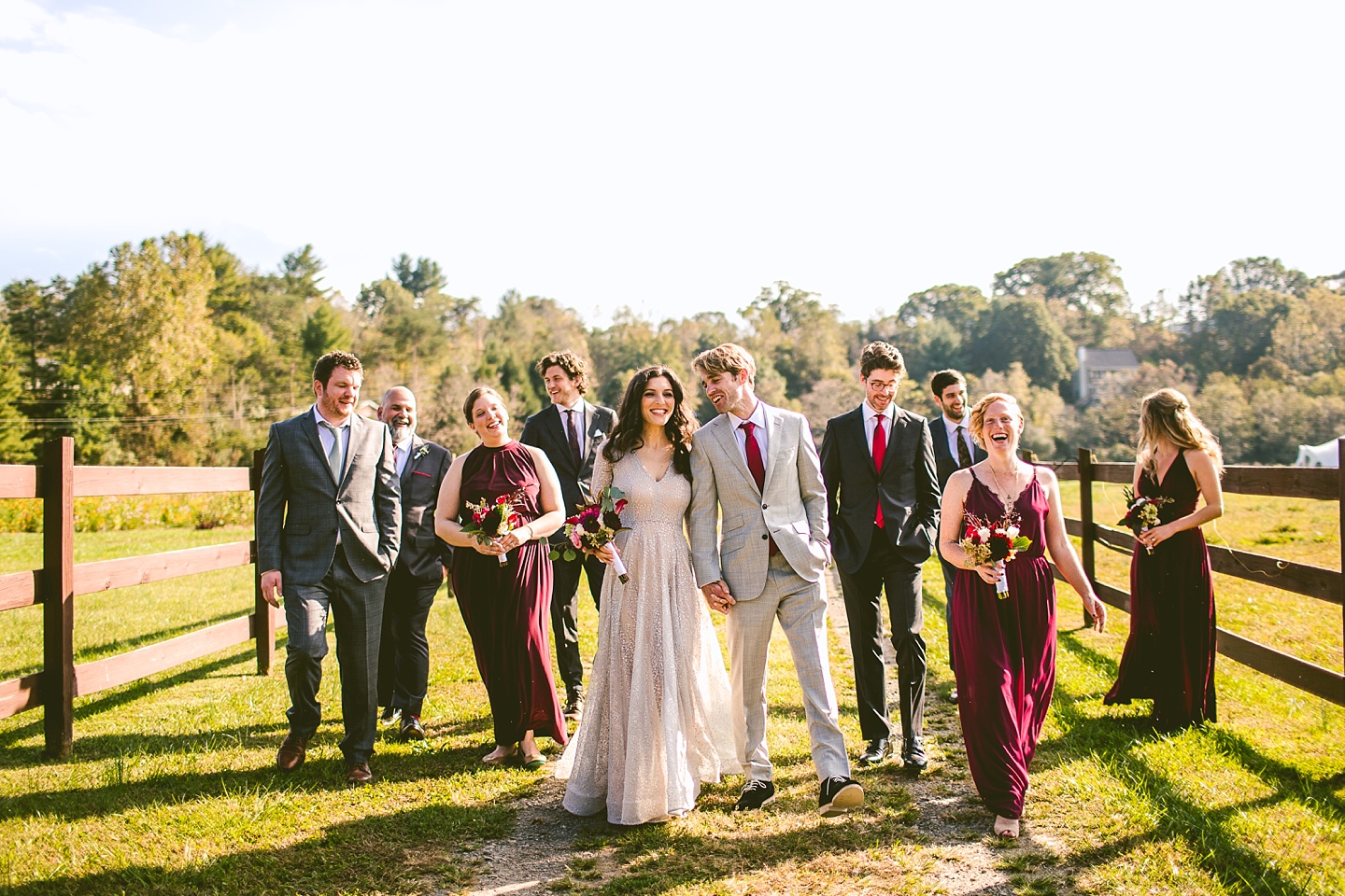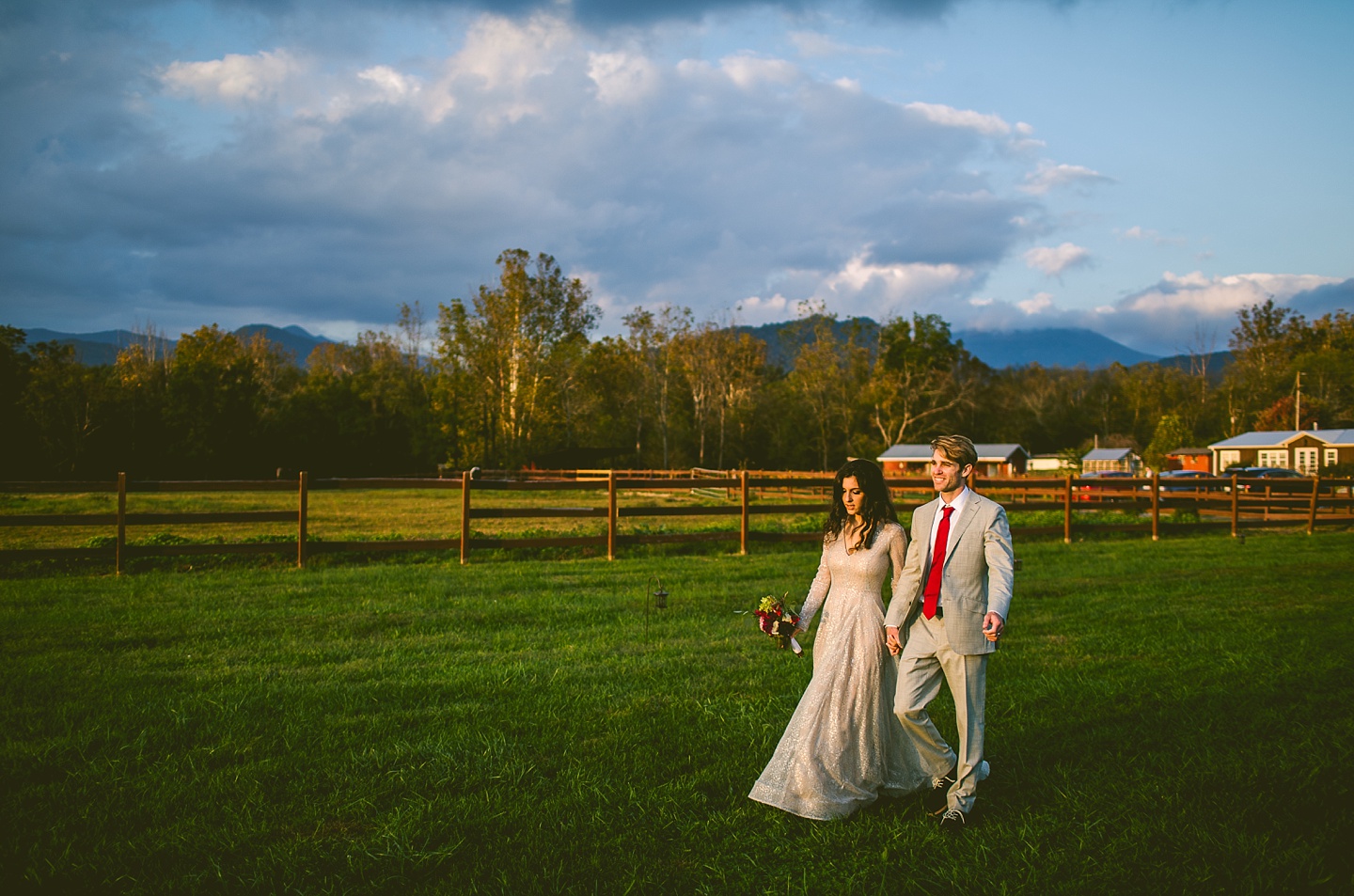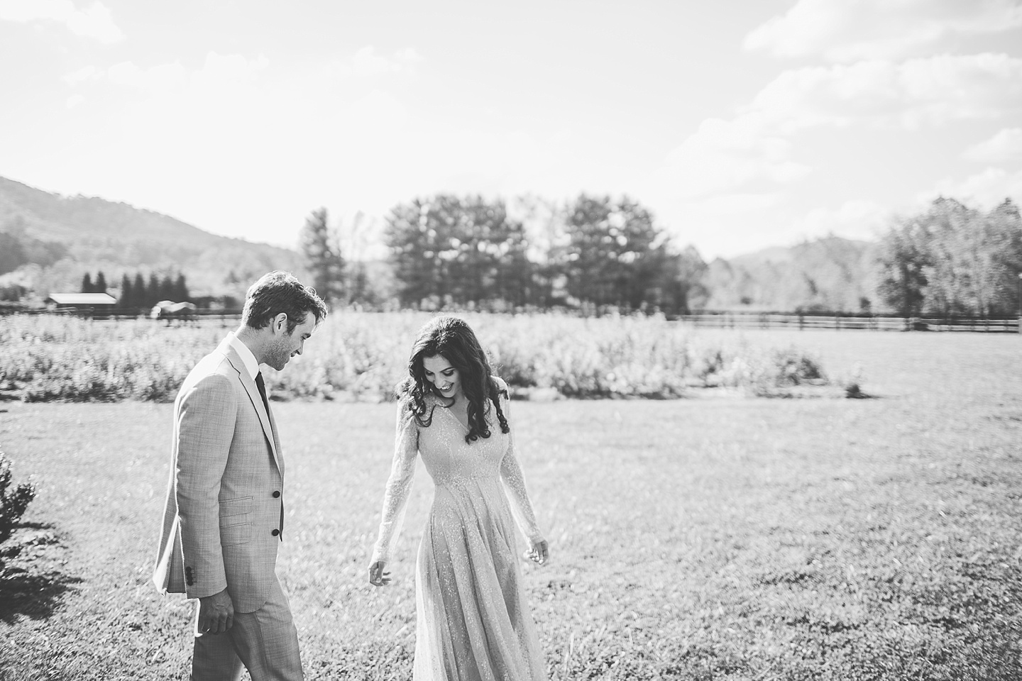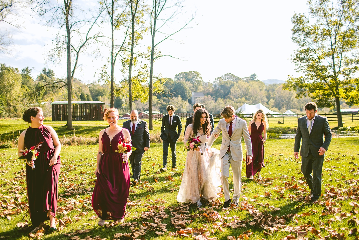 Now that we have that settled, Leila was our beloved former clients Carly+Jay’s maid of honor and we were so happy when she asked us to shoot her and Colin’s wedding in Asheville! It was actually in Swannanoa which is a pretty little small town just far enough outside of Asheville to be very woodsy, yet close enough where I could overdose on cinnamon buns at Posana for brunch. Ideal conditions. Hidden River Events is an incredible venue with a ton of wildflowers, horses, and dare I say the best lighting conditions on the planet (well, in the evening of October 14th anyway). It was beautiful. And Leila and Colin aren’t so bad themselves. Leila is of Palestinian descent and she and Colin met in Palestine doing all sorts of wonderful humanitarian goodness for people over there. They continue to do humanitarian goodness for all sorts of people from their homebase in Washington, DC with their dog Mr. B while watching Seinfeld at the same time. They were surrounded at their wedding by other Palestinians and also a lot of Irish. There were lots of good accents.