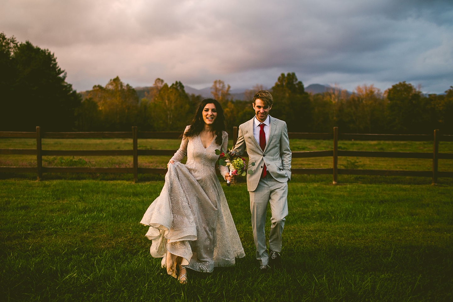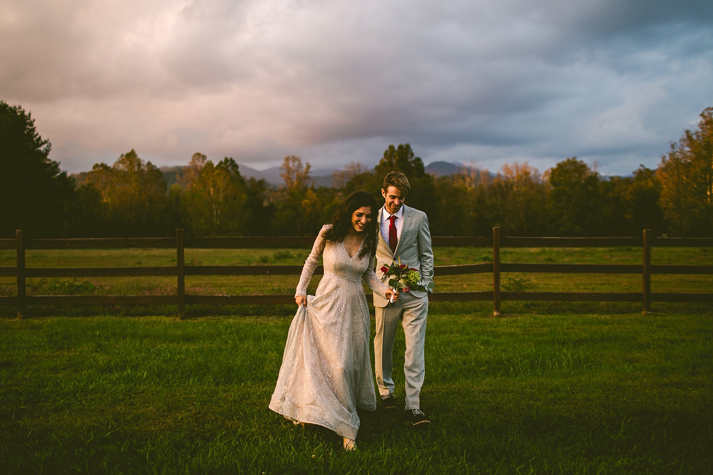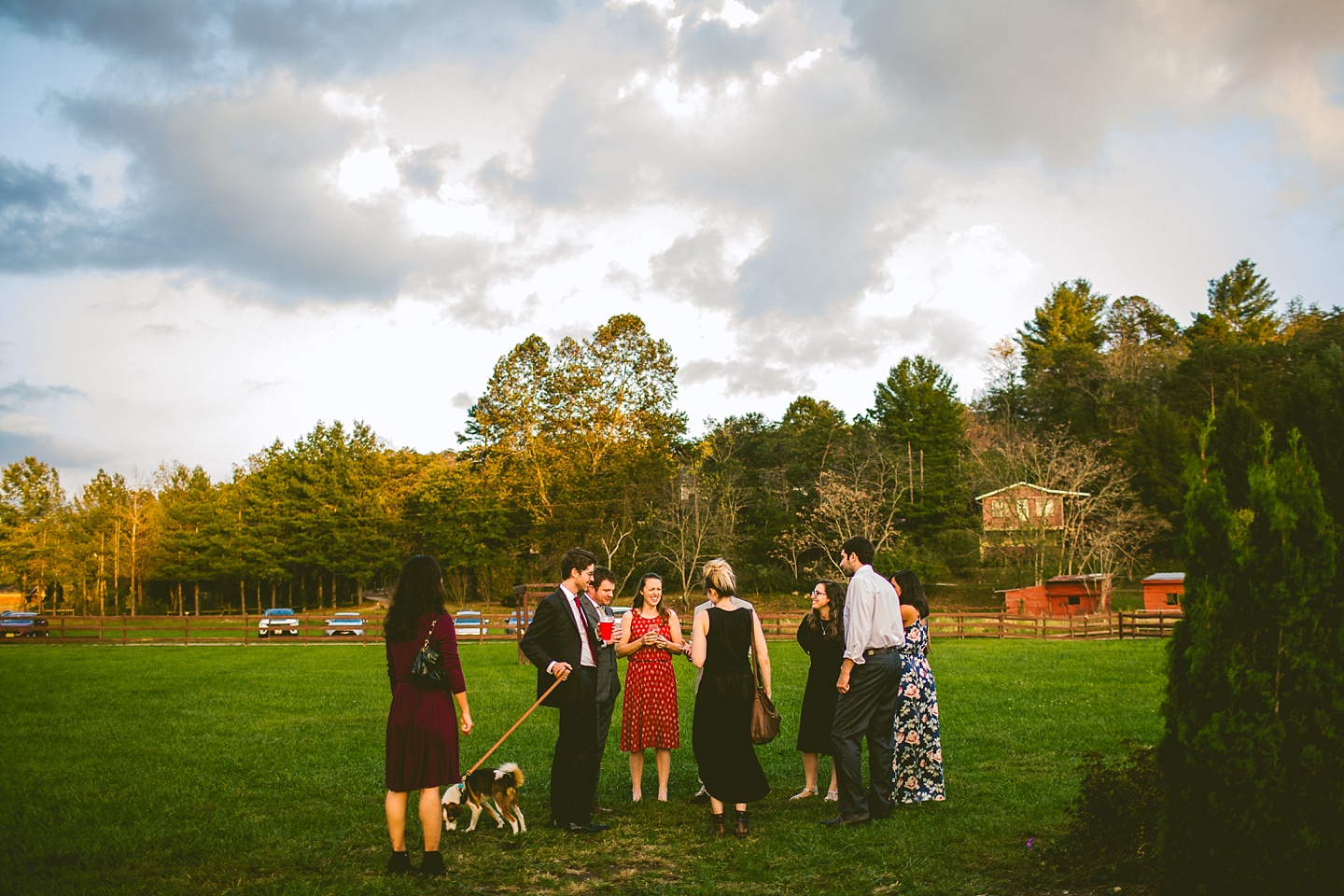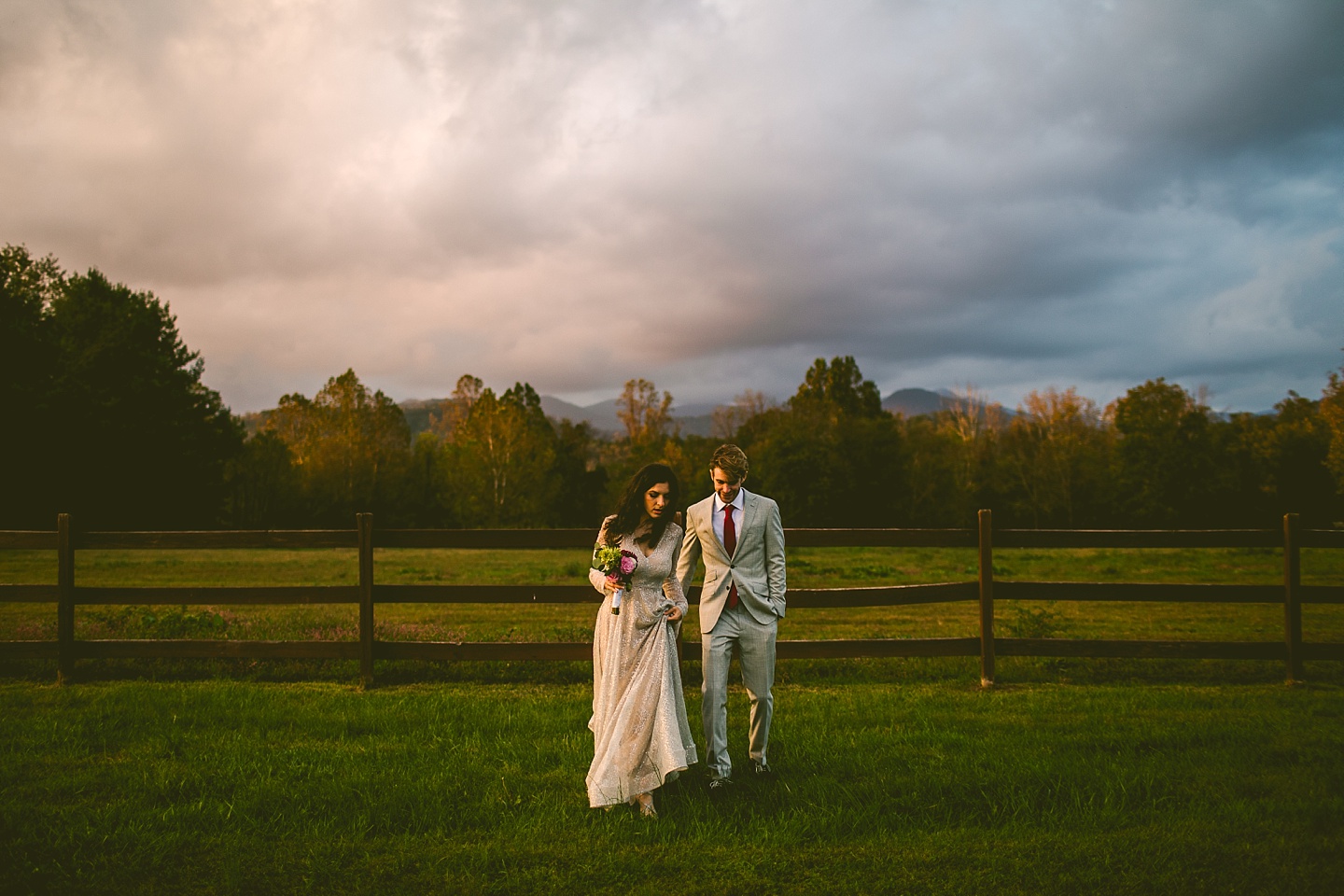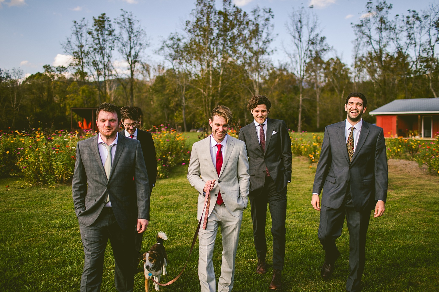 Now that we have that settled, Leila was our beloved former clients Carly+Jay’s maid of honor and we were so happy when she asked us to shoot her and Colin’s wedding in Asheville! It was actually in Swannanoa which is a pretty little small town just far enough outside of Asheville to be very woodsy, yet close enough where I could overdose on cinnamon buns at Posana for brunch. Ideal conditions. Hidden River Events is an incredible venue with a ton of wildflowers, horses, and dare I say the best lighting conditions on the planet (well, in the evening of October 14th anyway). It was beautiful. And Leila and Colin aren’t so bad themselves. Leila is of Palestinian descent and she and Colin met in Palestine doing all sorts of wonderful humanitarian goodness for people over there. They continue to do humanitarian goodness for all sorts of people from their homebase in Washington, DC with their dog Mr. B while watching Seinfeld at the same time. They were surrounded at their wedding by other Palestinians and also a lot of Irish. There were lots of good accents.