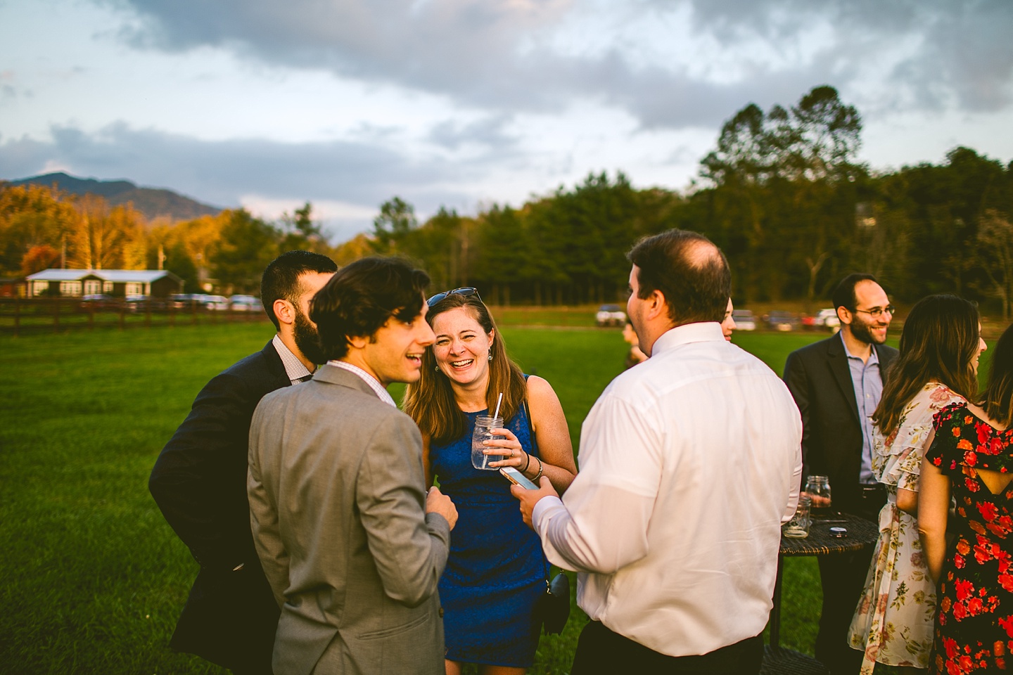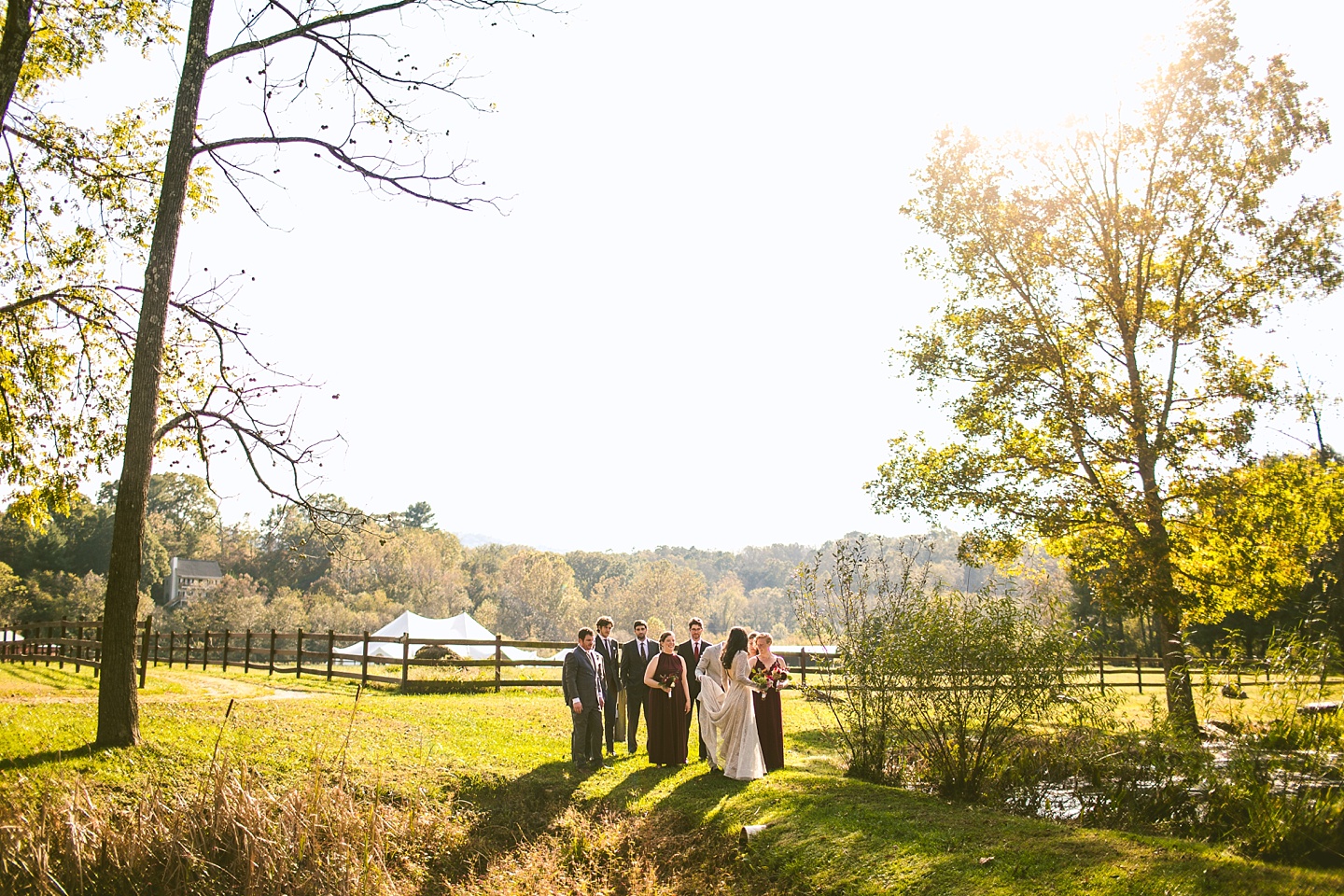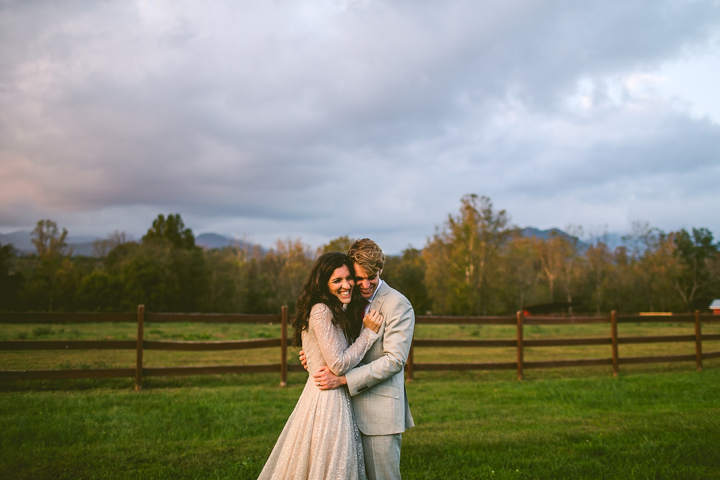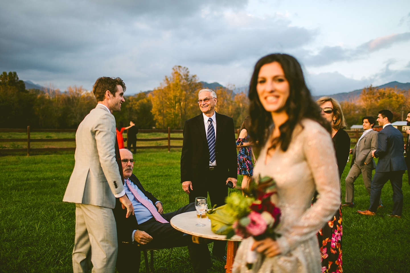 Now that we have that settled, Leila was our beloved former clients Carly+Jay’s maid of honor and we were so happy when she asked us to shoot her and Colin’s wedding in Asheville! It was actually in Swannanoa which is a pretty little small town just far enough outside of Asheville to be very woodsy, yet close enough where I could overdose on cinnamon buns at Posana for brunch. Ideal conditions. Hidden River Events is an incredible venue with a ton of wildflowers, horses, and dare I say the best lighting conditions on the planet (well, in the evening of October 14th anyway). It was beautiful. And Leila and Colin aren’t so bad themselves. Leila is of Palestinian descent and she and Colin met in Palestine doing all sorts of wonderful humanitarian goodness for people over there. They continue to do humanitarian goodness for all sorts of people from their homebase in Washington, DC with their dog Mr. B while watching Seinfeld at the same time. They were surrounded at their wedding by other Palestinians and also a lot of Irish. There were lots of good accents.