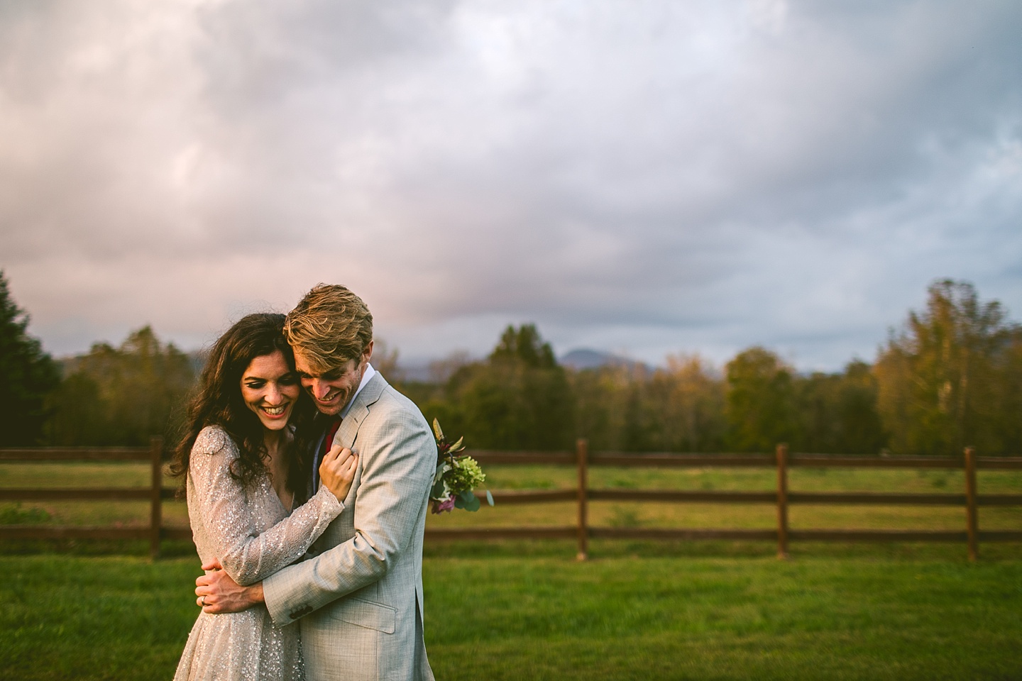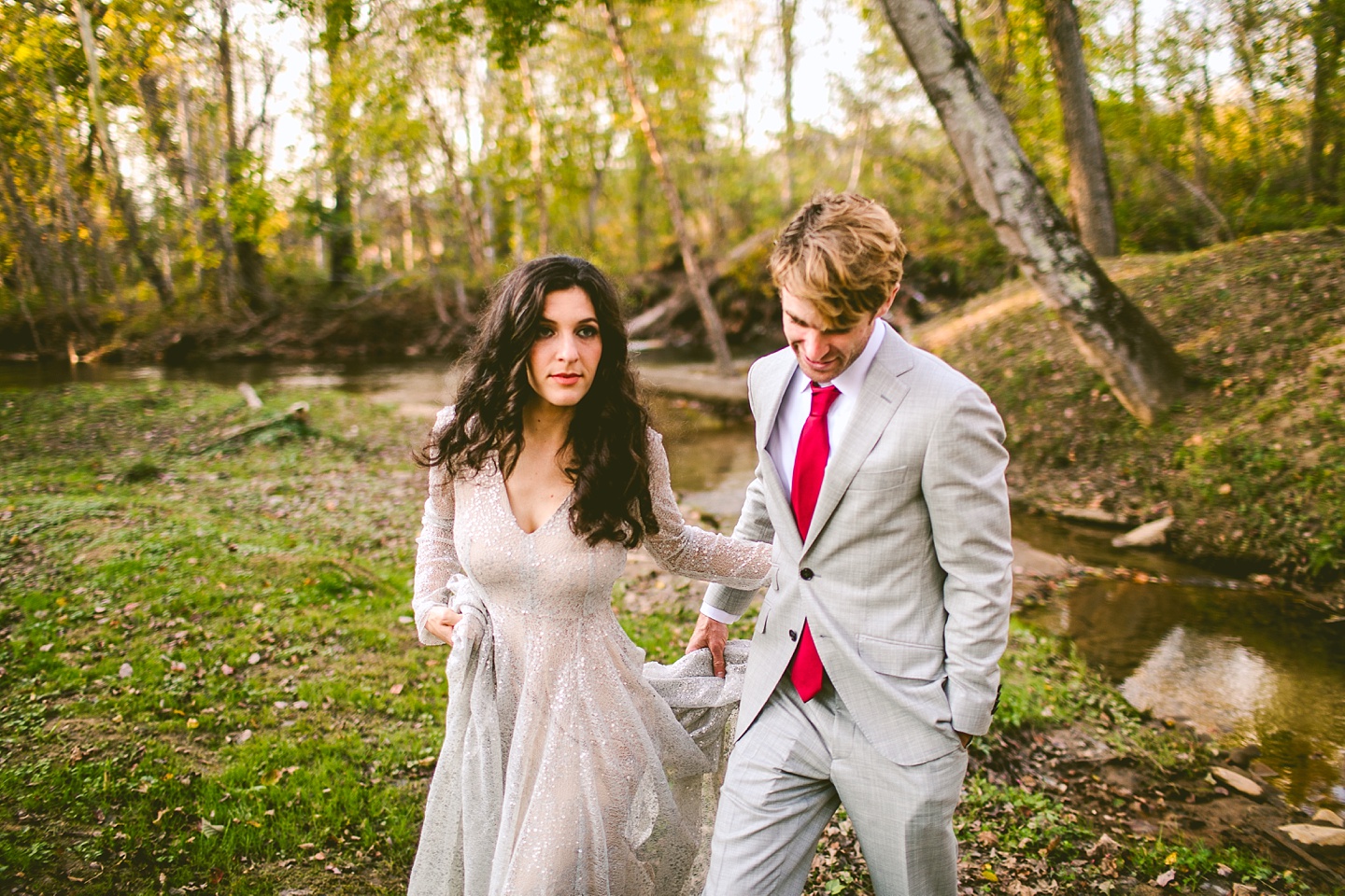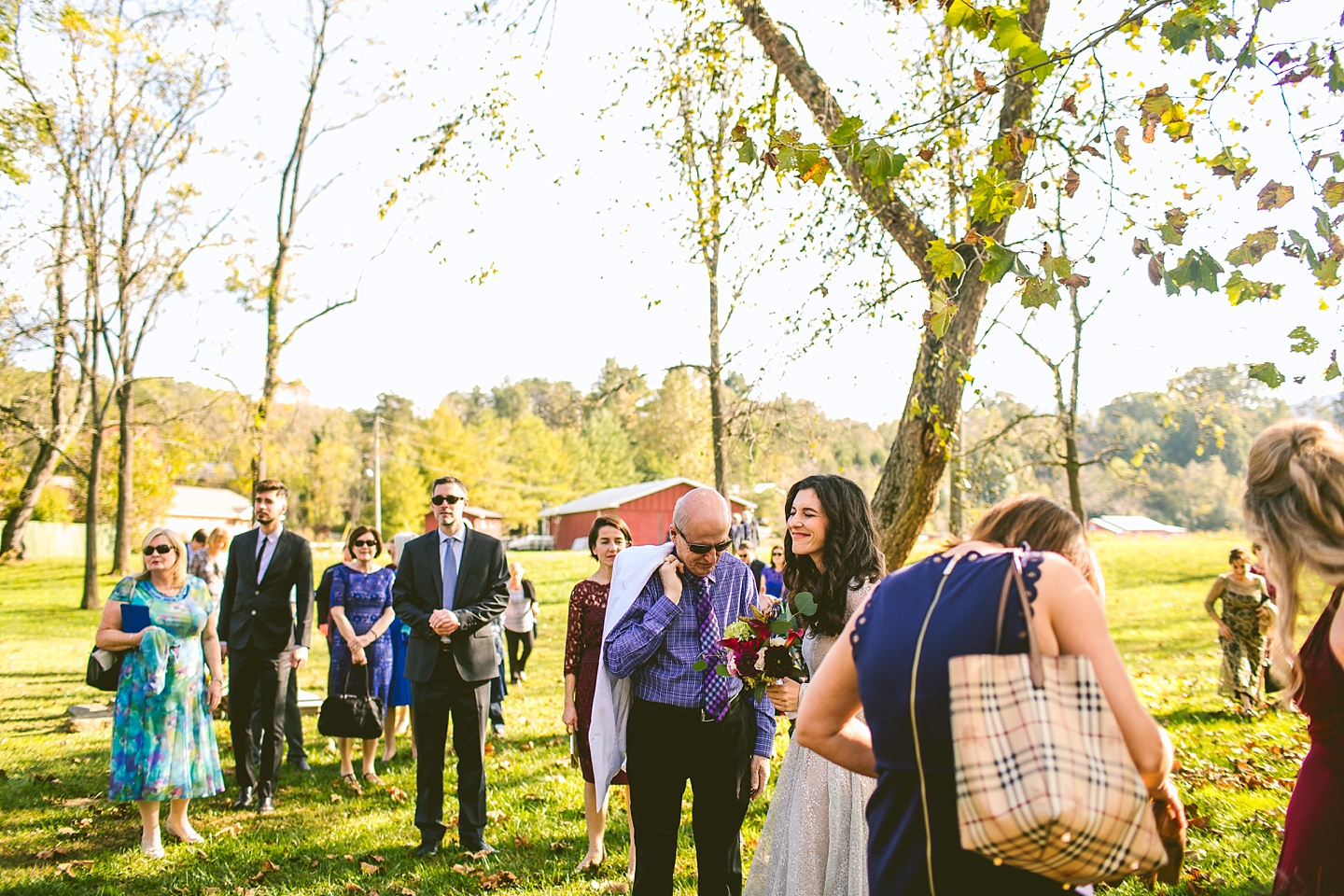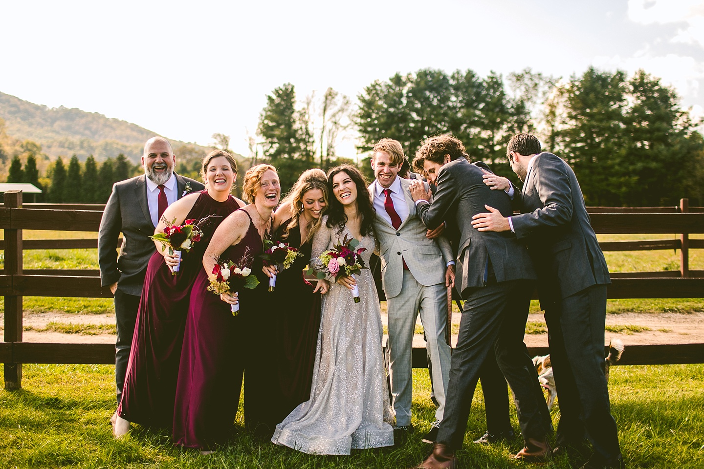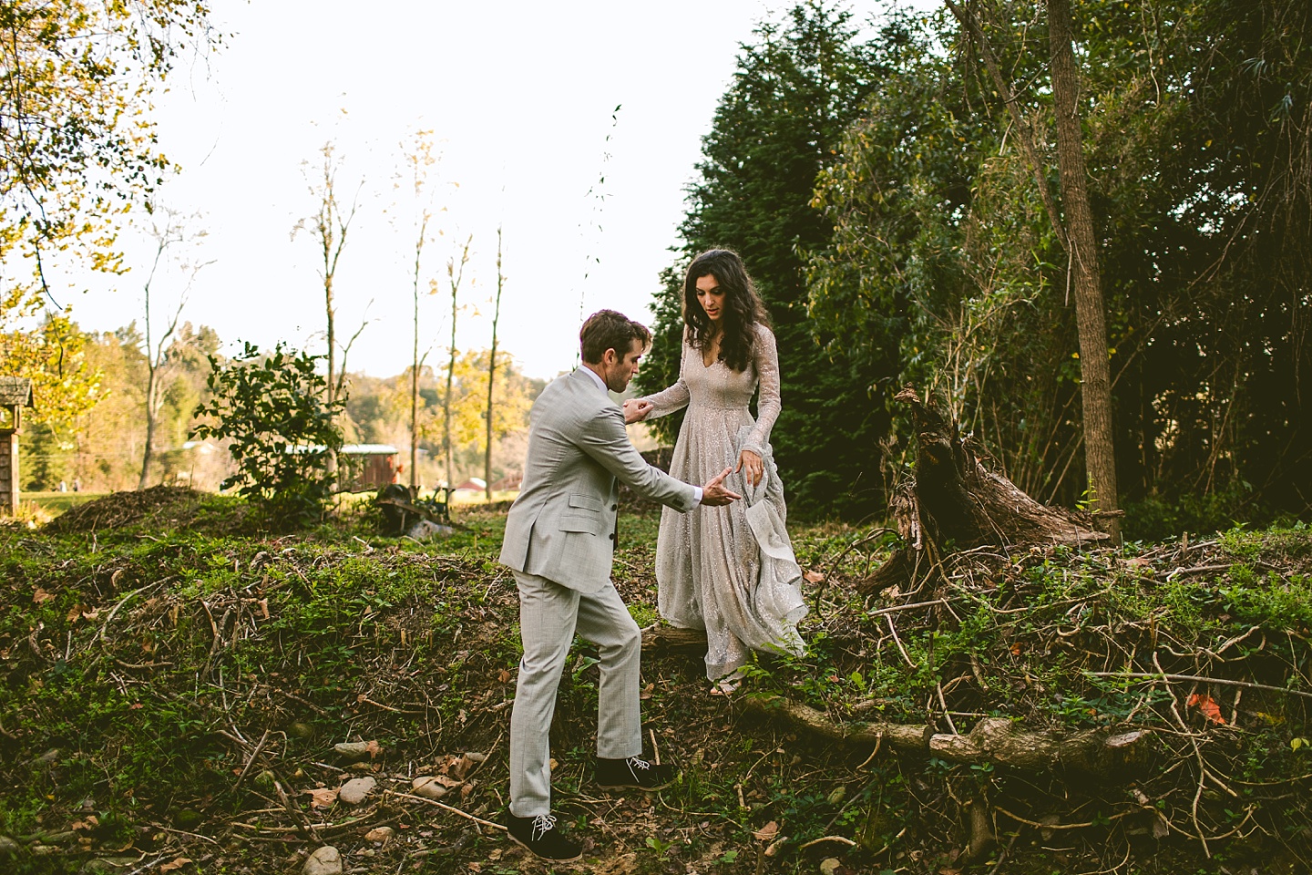 Now that we have that settled, Leila was our beloved former clients Carly+Jay’s maid of honor and we were so happy when she asked us to shoot her and Colin’s wedding in Asheville! It was actually in Swannanoa which is a pretty little small town just far enough outside of Asheville to be very woodsy, yet close enough where I could overdose on cinnamon buns at Posana for brunch. Ideal conditions. Hidden River Events is an incredible venue with a ton of wildflowers, horses, and dare I say the best lighting conditions on the planet (well, in the evening of October 14th anyway). It was beautiful. And Leila and Colin aren’t so bad themselves. Leila is of Palestinian descent and she and Colin met in Palestine doing all sorts of wonderful humanitarian goodness for people over there. They continue to do humanitarian goodness for all sorts of people from their homebase in Washington, DC with their dog Mr. B while watching Seinfeld at the same time. They were surrounded at their wedding by other Palestinians and also a lot of Irish. There were lots of good accents.