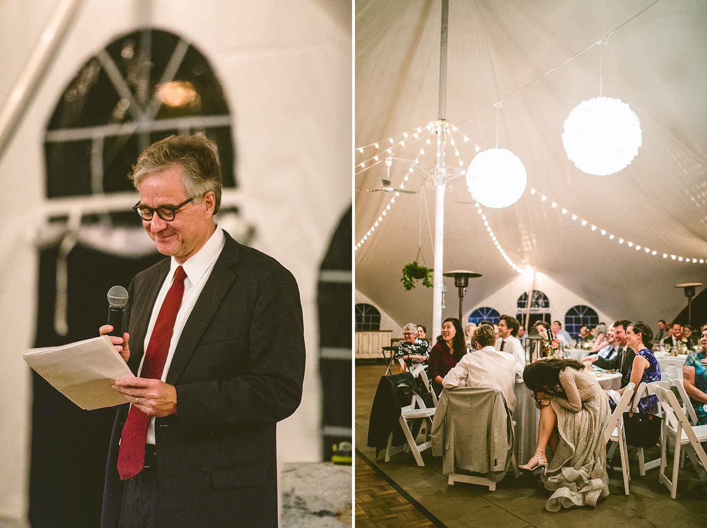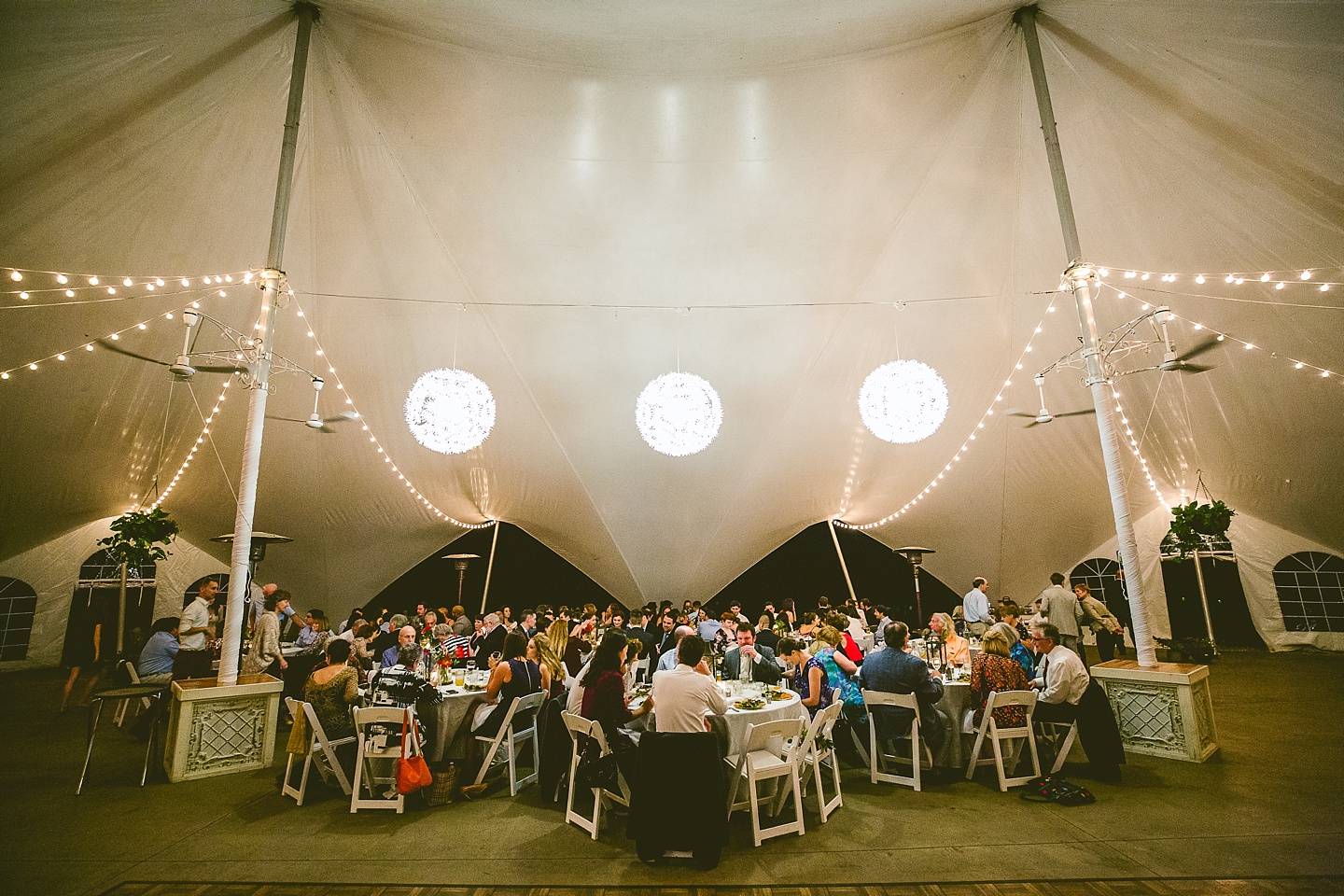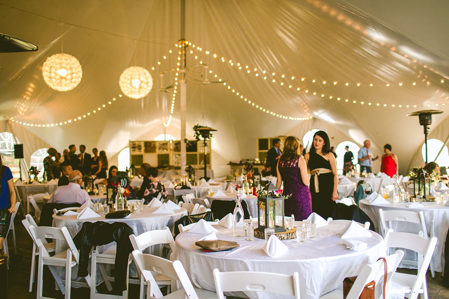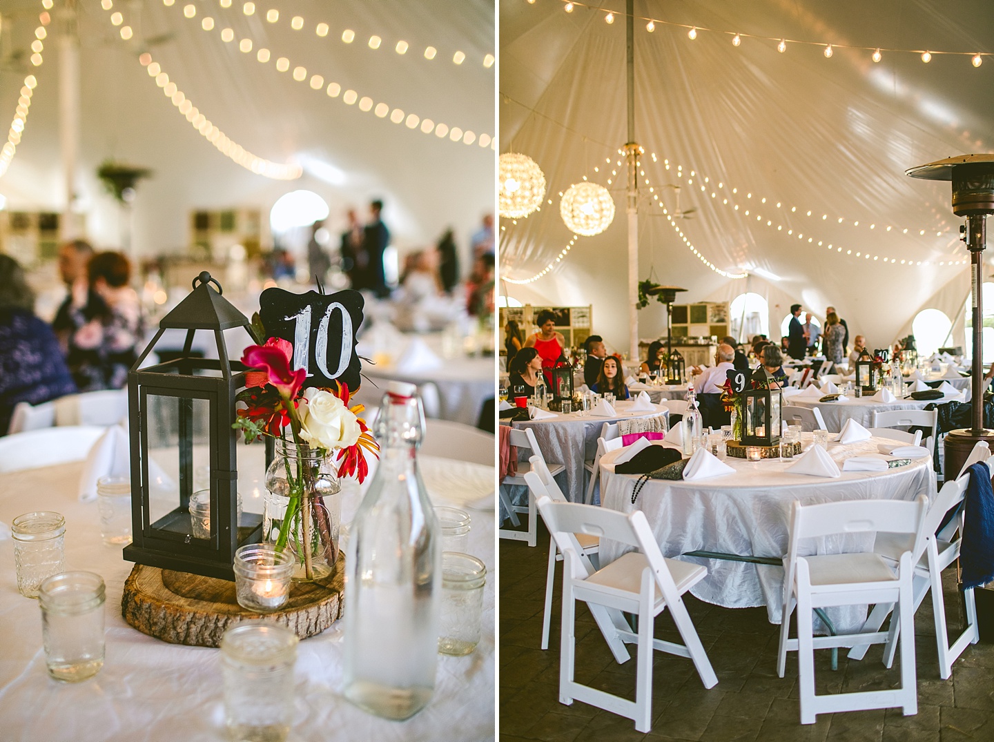 After the beautiful ceremony presided over by their college pastor, Sarah and Jimmy and crew headed to the Crest Pavilion on top of another really steep hill. It is so pretty up there… and, while we avoided the rain, it was thundering during our newlywed pictures and we could see the rain in the distance. It was pretty awesome. Their decorations for the rehearsal was so cute and beautifully handmade. Their tablecards had quotes about relationships on one side, and the goals for their first year of marriage written on the other. It was really interesting to read them and such a great idea to create newlywed goals like that!