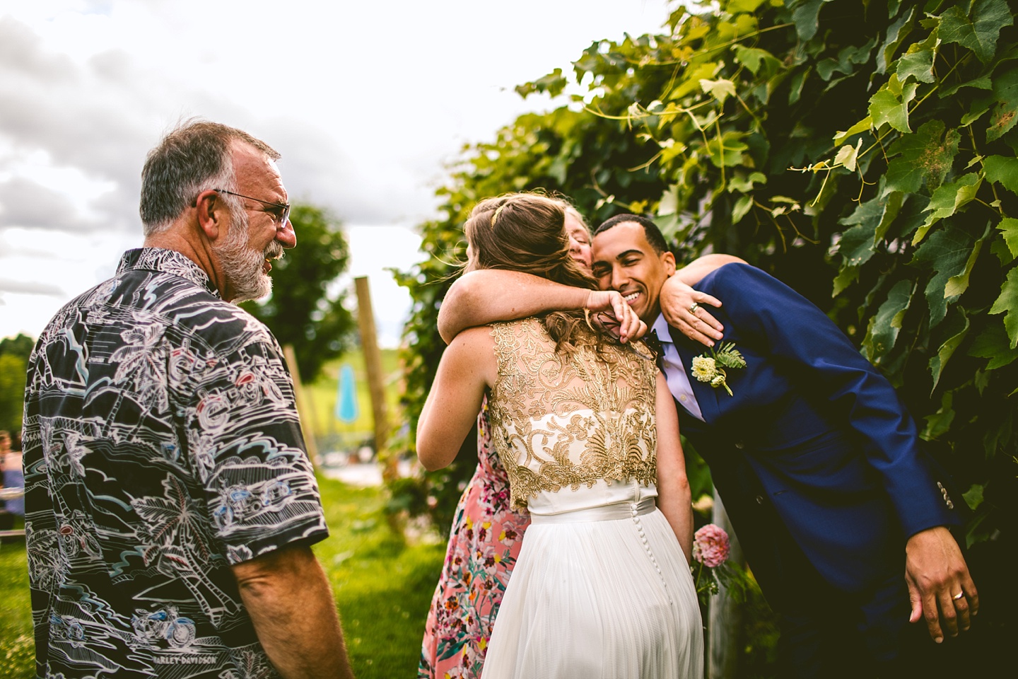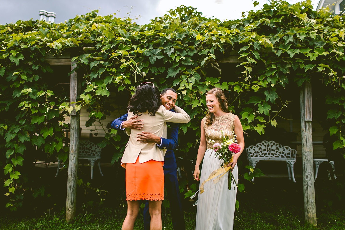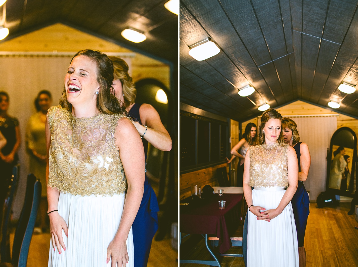 When we arrived at the winery, we already suspected Katie and Tony of being super stellar humans, but this was confirmed to us several times throughout the day by outside source as well as Katie and Tony themselves, who were SO NICE! And I told all wedding guests I met how beautiful Katie looked in her awesome wedding dress (all the sparkly gold wedding dresses, please!) and had two completely separate people tell me, “She’s beautiful inside and out.” So – it was confirmed. In addition, Katie’s Maid of Honor Laura told a fantastic little story about how she used to hang out at Katie’s apartment only to find her favorite foods inexplicably waiting for her, including pre-cut-up fruit, after Laura mentioned that fruit is a pain to prepare. I both identified with this story (fruit is a pain and I’m glad I’m not the only one who thinks that) and found it wonderful that some people out there are still thoughtful, truly special people who listen and care about others in the way that Katie does. But it’s not even just Katie! Tony’s best man Dave told a story about how Tony once, without being asked, decided to help Dave’s family out by ironing Dave’s little sister’s tutu to help ease the pressure of them running a bit late. Laura also said that Tony helped her ride the subway to her new job in DC to show her the best way to get there. And we saw them do this all day. Smile at everyone, hug everyone, and be the nicest people in the room.