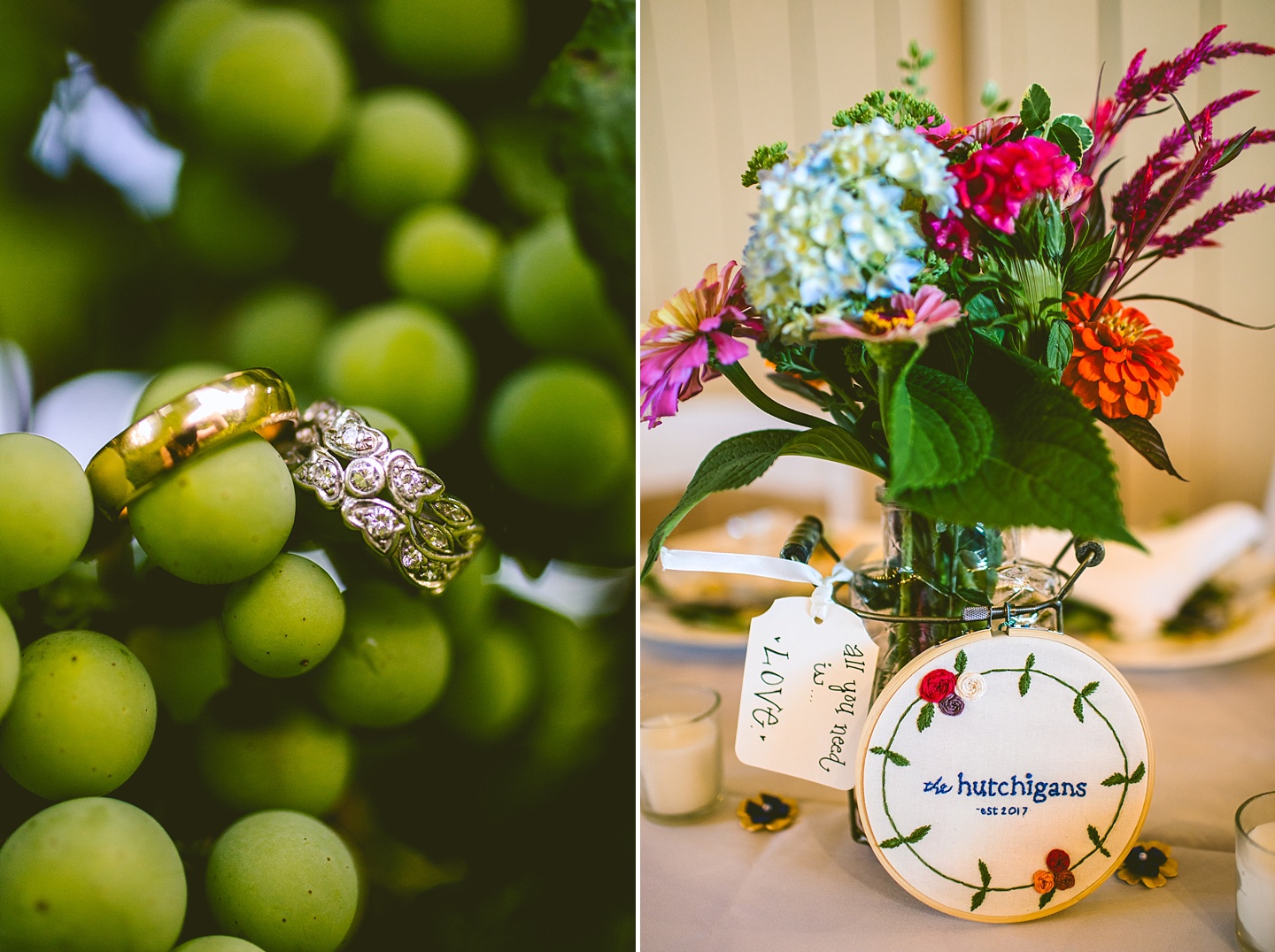 – Vendor Credits: Officiant – Pamela Creekmur. DJ – Horizon Entertainment. Florist – DIY arrangements with flowers from Stonecrop Farmers. Desserts – Our Daily Bread. Caterer – Beliveau Estate Winery. Hair/Makeup – Polished by Clair V. Videographer – Big Dog Little Bed Productions.