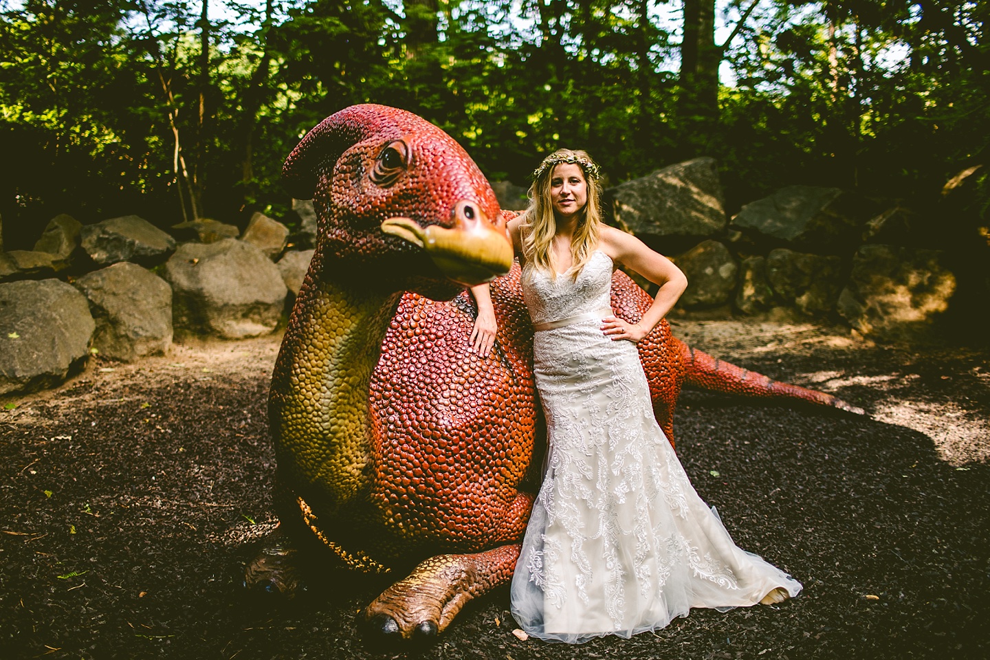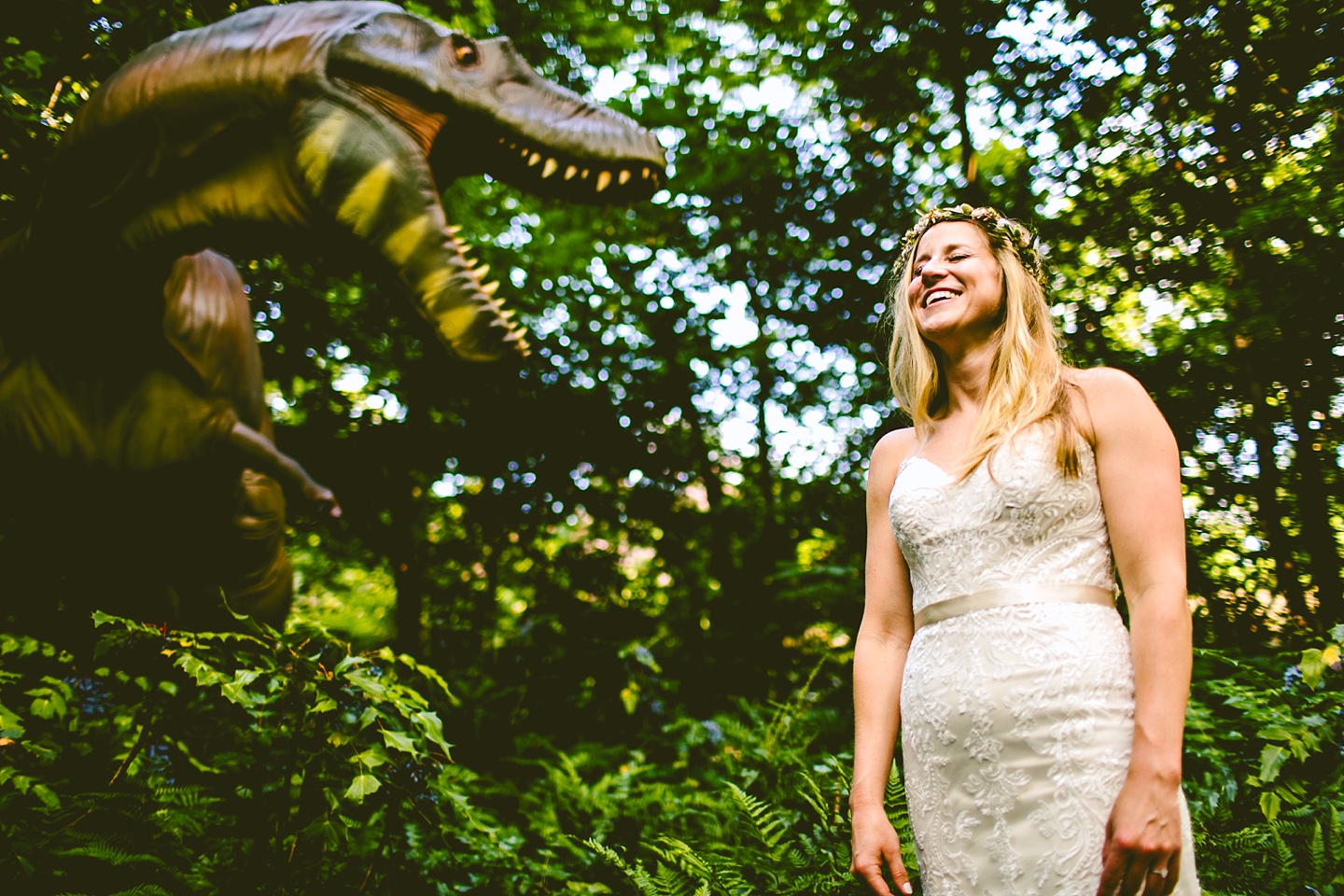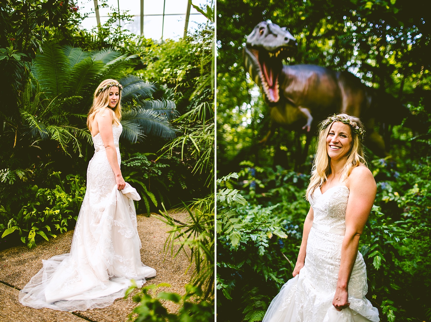 Callie and I shot these on what can only be described as a bajillion degree day of heat and humidity in central NC. I, however, was sweating much more than she was, as she seemed impervious to sweat. We also shot these inside the butterfly conservatory at the North Carolina Museum of Life and Science in Durham, which is known to add on additional layer of sweat lodge characteristics. Thankfully on this day, it happened to be cooler inside the butterfly house rather than outside, so it kept us from melting into small puddles while we were there. Callie’s hair and makeup held up beautifully and so did SHE! She’s a gorgeous, free-spirited type of lady who’s into her dog and her fiance Chris, who were married on August 11th (so now I can finally post these – yaaaay!). She also has the best biceps and triceps due to Crossfit. She told me she likes to “lift heavy things and then put them down and then lift them again.” Amen, sister. At Crossfit she also became friends with OUR amazing friend Sarah (whose wedding we shot and who designed our awesome bat logo!), so it’s a small world after all. I had an awesome time running around the Museum of Life and Science with her, her dad (who was included in the pictures because it was his birthday!), and the epic dinos. Later we hung out around Satellite Park for some more casual shots. Enjoy the post, and congrats to Callie and Chris!
