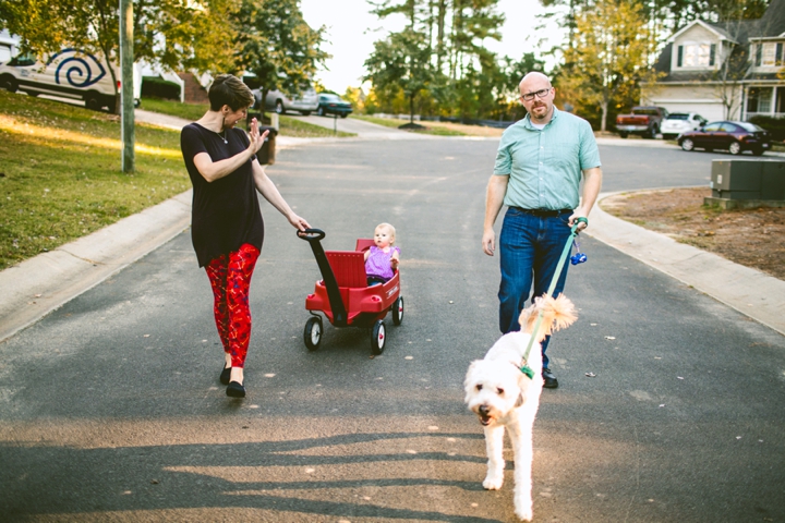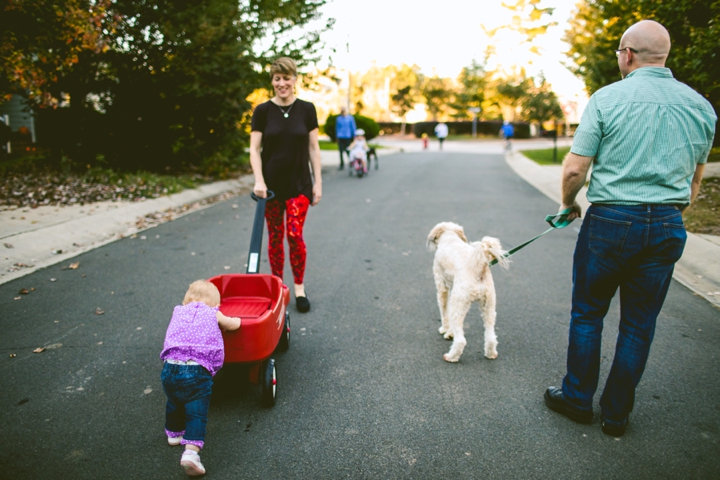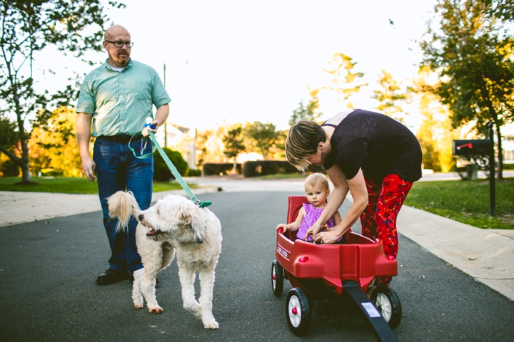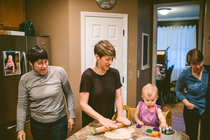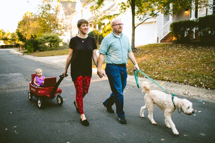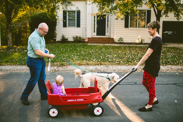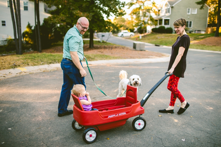 A little ditty… ’bout JEFF AND DIANEEEE (sorry guys, I had to. It pops in my mind every time I think of either one of you.) We became friends with Jeff and Diane through our other friends Beth and David! We knew them from little get togethers and what not, and then spent a week with them in St. John when Beth and David got married. We got sunburned and drank some tasty tropical drinks and played board games and hung out in hot tubs and gave zero $&#*s. And for those of you who hear my often-repeated warning story about how you should always wear a lifejacket when you snorkel, this is the “other Jeff” who was snorkeling with Geoff and me during my near-death experience! Besides being good at tropical vacationing, Jeff is really, really good at identifying lots of obscure bands and beer, and Diane is really, really good at making crafts and cookies. She can sew like a crazy woman, and her skills are much admired far and wide. Then we went to their house to meet their daughter Cora, and found out that all of Diane’s family can sew like crazy women and are ALL really, really good at crafts. Cora, while absolutely adorable in every possible way, is not good at sewing yet because she’s not even two and you shouldn’t given needles to toddlers. She is, however, really good at swings, riding in wagons, and applying sprinkles to cookies. It is Diane’s family tradition to go insane regarding the amount and variety of Christmas cookies they produce every year, and this year Cora participated happily with Diane’s sister and her kids (Toby the dog was also really happy about this because Cora’s fine motor skills are still developing so she drops a lot of food and Toby swoops in like the cutest little garbage disposal you’ve ever seen). We’re sure as she gets older that Cora will become most excellent at both crafts and craft beer, making both of her parents very proud.