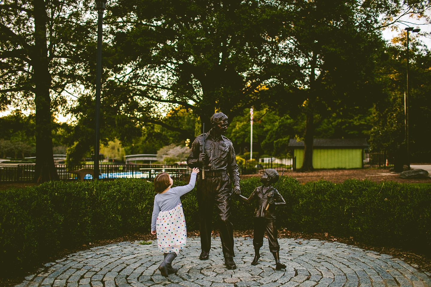 This was the first year she actively recognized us and gave us a hug and it made me melt. She blew kisses at several kids her age while casually walking past them, totally unprovoked. Vivi currently enjoys exploring trains, trying out every pogo-stick-sand-dinosaur they have at Pullen Park, and watching ducks. She very much loves carousels and bridges. New this year is her ability to find statues, hit them, and discover that “Wow, they are solid!” Her favorite thing about trains is the “wooo woooooooo” whistle that she enjoys emulating, but has mild concerns that the whistle might be too loud. She likes going down slides repeatedly but only if someone is at the bottom. Constantly making her mother nervous, she is inexplicably drawn to large, potentially unsafe surfaces and structures on which to climb. She likes to hold hands. She really likes talking, but is 100% positive 100% of the time. Examples below.