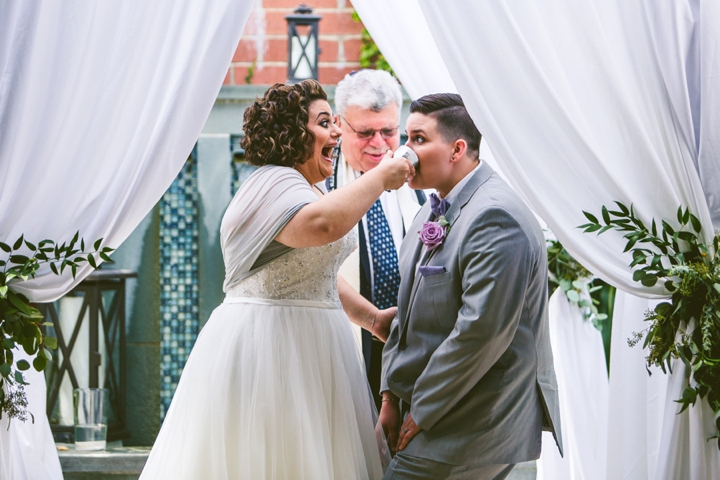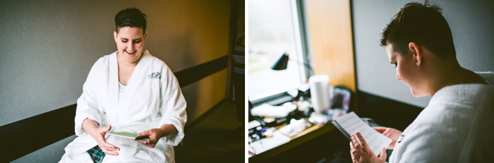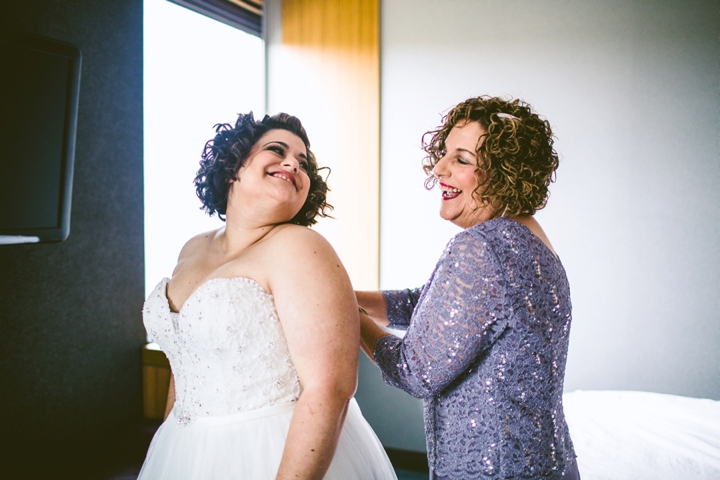Amanda and Jennifer are two of the funnest people. Yes, funnest. Amanda has a really contagious, wonderful laugh, and Jennifer is incredibly funny. Together, they’re happy and laughing and adorable and the funnest. We woke up early and joined them for their brunch wedding (where there was french toast and sausage and eggs and some sort of magical potato hashbrown casserole) which was delightful because Amanda is also gluten intolerant so I could eat their food and also their cake (which was all very, very delicious). Also, brunch is the best, and their favors were mugs that said, “THANKS A BRUNCH” that I may or may not have been drinking tea out of all week because everyone loves a good brunch pun.
