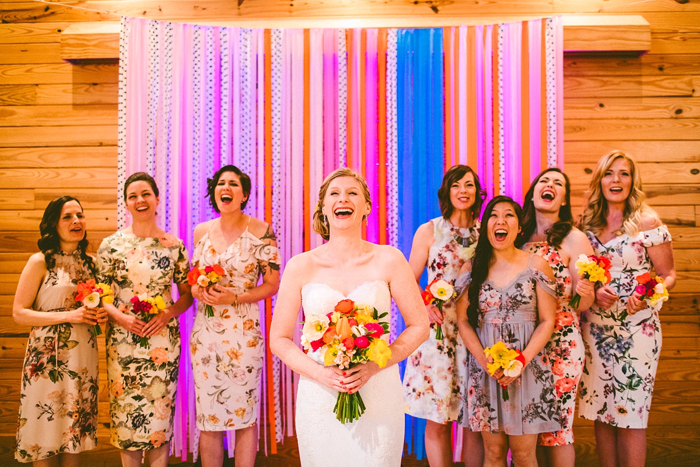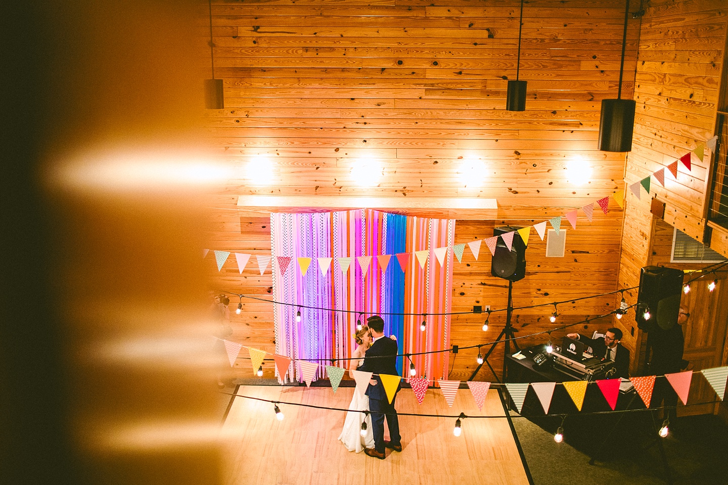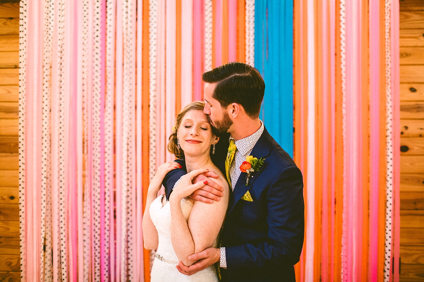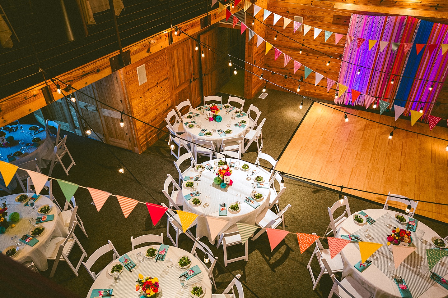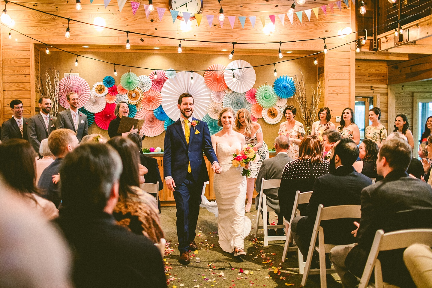 Caity and Kevin had the best weather ever for their December engagement session so I guess it only figures that it would come back and bite us later. Their wedding day was collllld and produced a constant rain that went kinda sideways under umbrellas so we didn’t go out in it much. Also, we were all freezing. But, because it was so cold, Caity decided to wear her badass colored leggings under her wedding dress on a whim which was highly encouraged by myself and all her bridesmaids because YES. She also occasionally busted out a pink leather jacket which was also praised and adored. And, because Caity and Kevin are very clever and thought ahead about things, the Rigmor House was decorated beautifully inside and allowed for plenty of colorful photo ops. Despite the dreariness outside, we were happy and colorful and warm INSIDE OUR HEARTS (and inside the Rigmor House). So much color, all the color, flag bunting forever and ever amen.