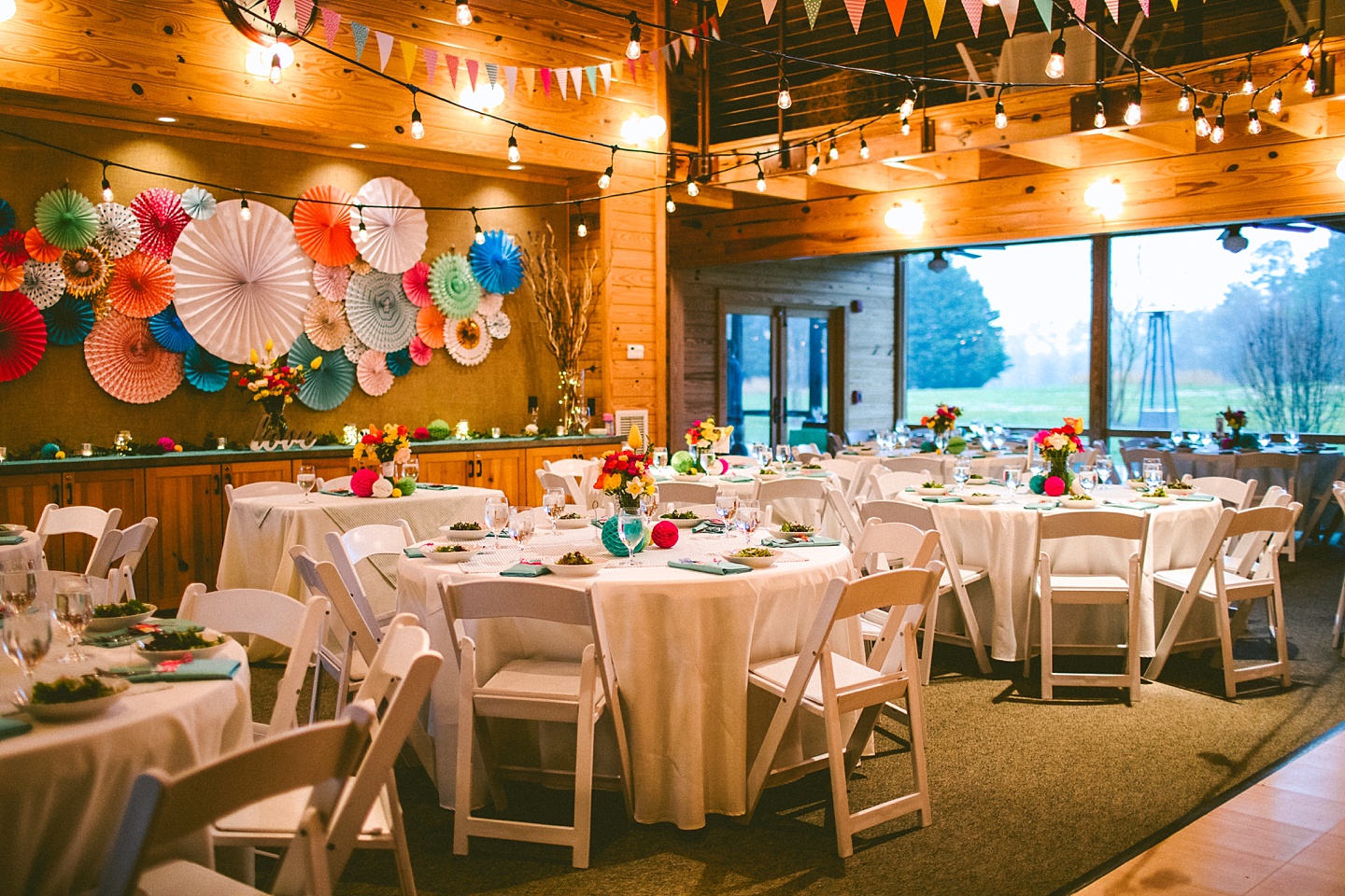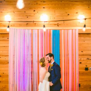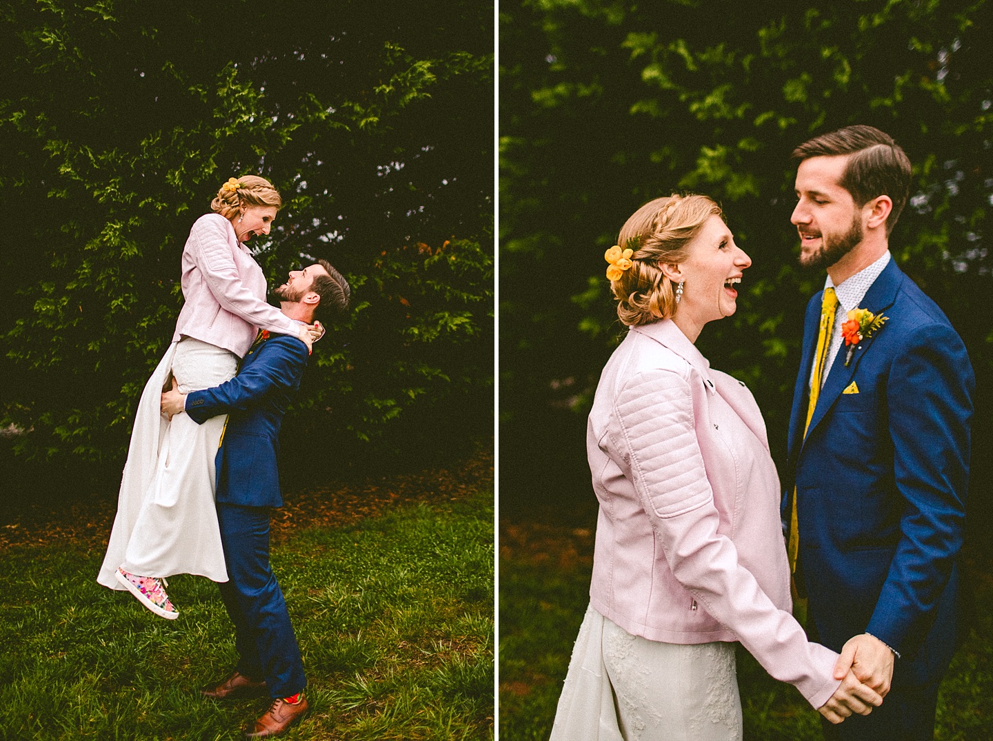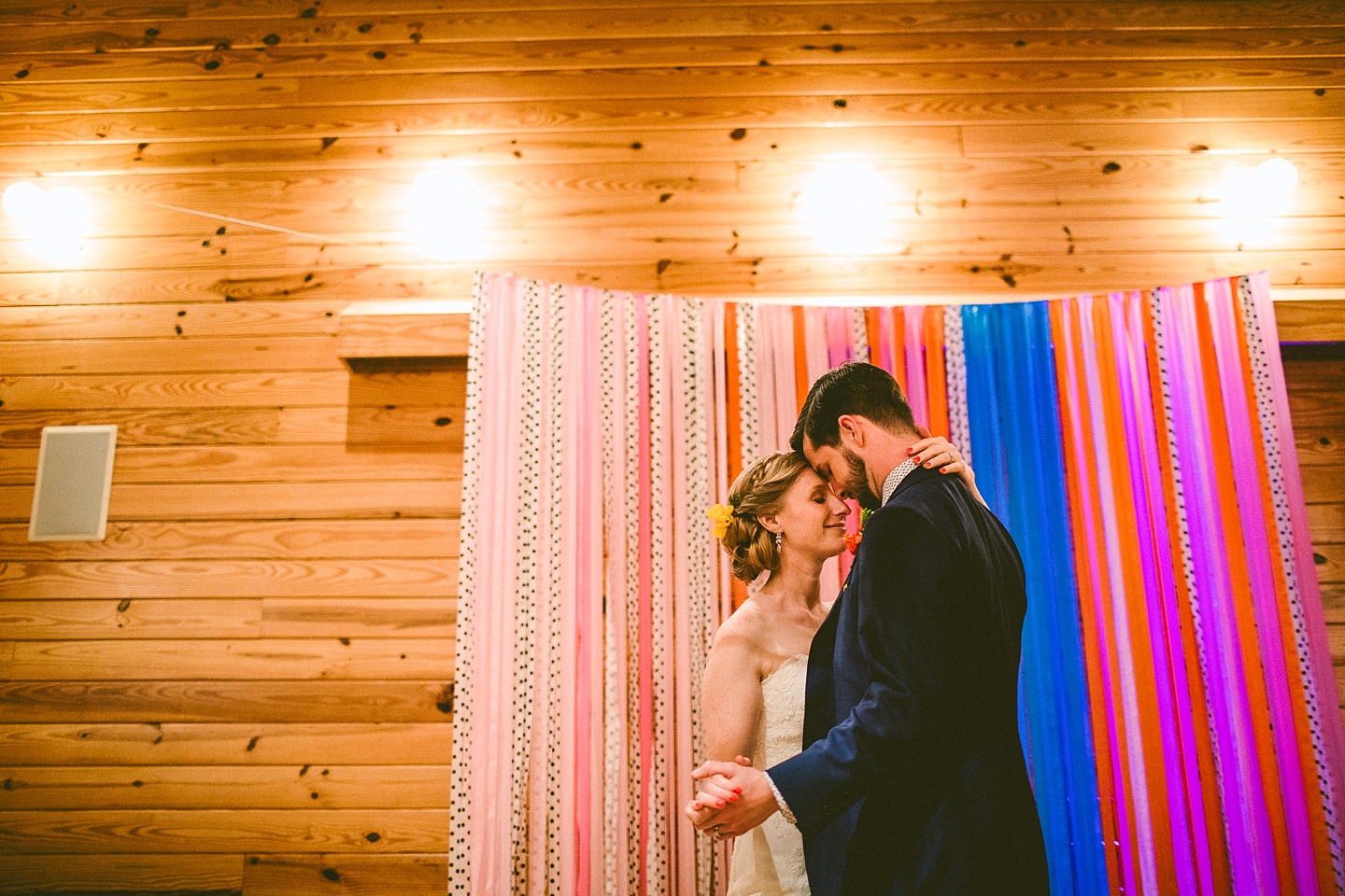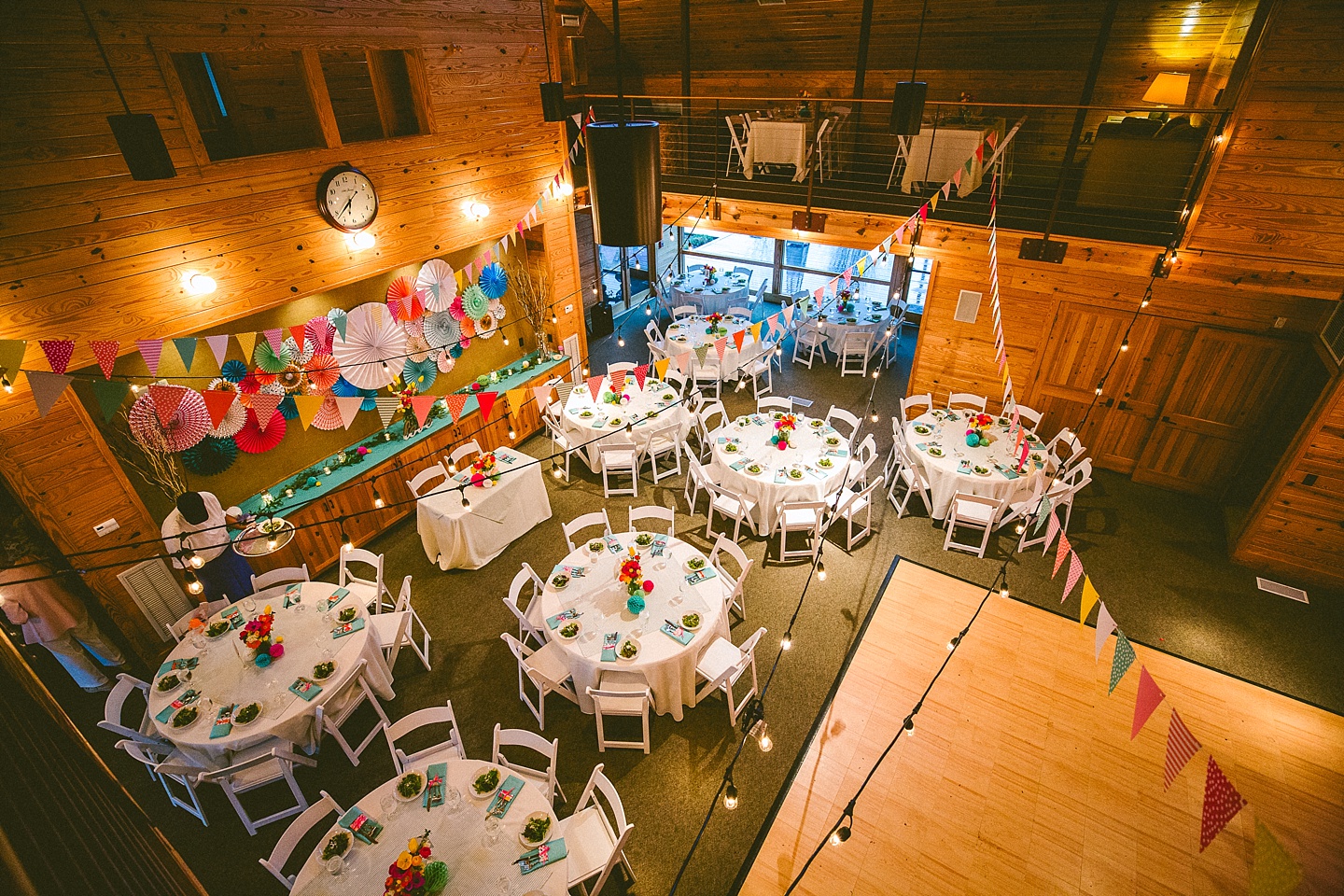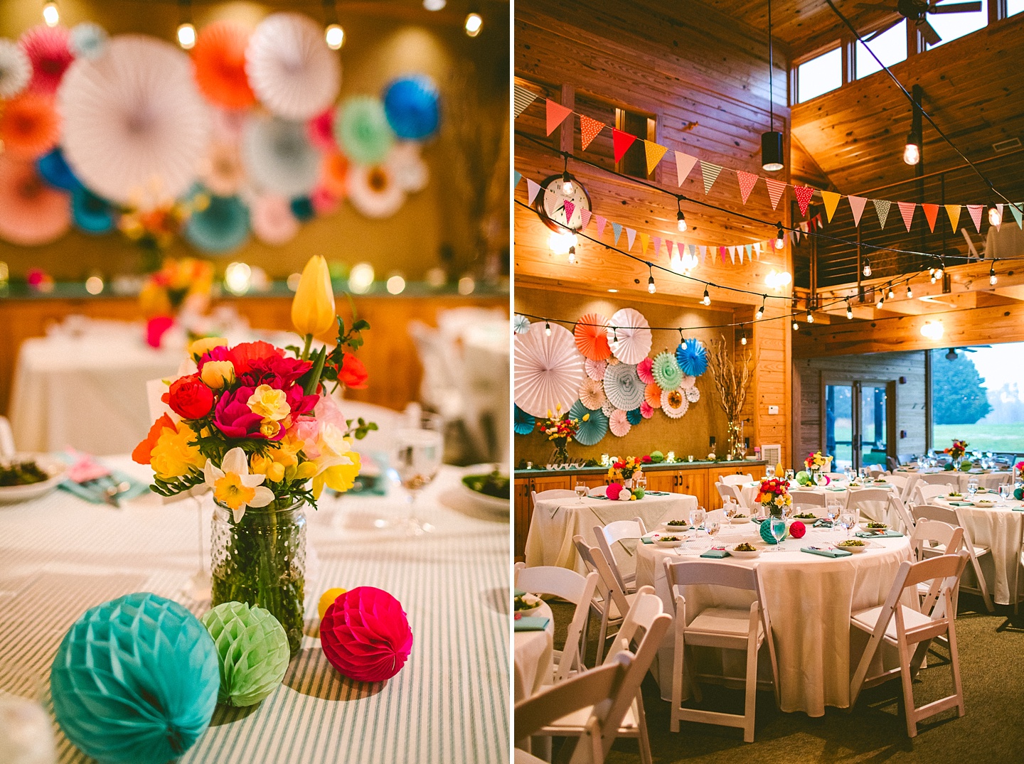 Caity and Kevin had the best weather ever for their December engagement session so I guess it only figures that it would come back and bite us later. Their wedding day was collllld and produced a constant rain that went kinda sideways under umbrellas so we didn’t go out in it much. Also, we were all freezing. But, because it was so cold, Caity decided to wear her badass colored leggings under her wedding dress on a whim which was highly encouraged by myself and all her bridesmaids because YES. She also occasionally busted out a pink leather jacket which was also praised and adored. And, because Caity and Kevin are very clever and thought ahead about things, the Rigmor House was decorated beautifully inside and allowed for plenty of colorful photo ops. Despite the dreariness outside, we were happy and colorful and warm INSIDE OUR HEARTS (and inside the Rigmor House). So much color, all the color, flag bunting forever and ever amen.
