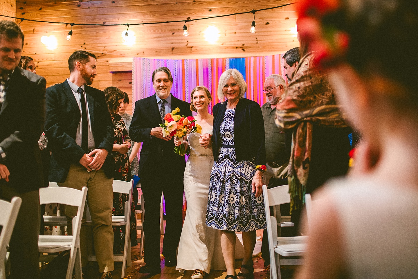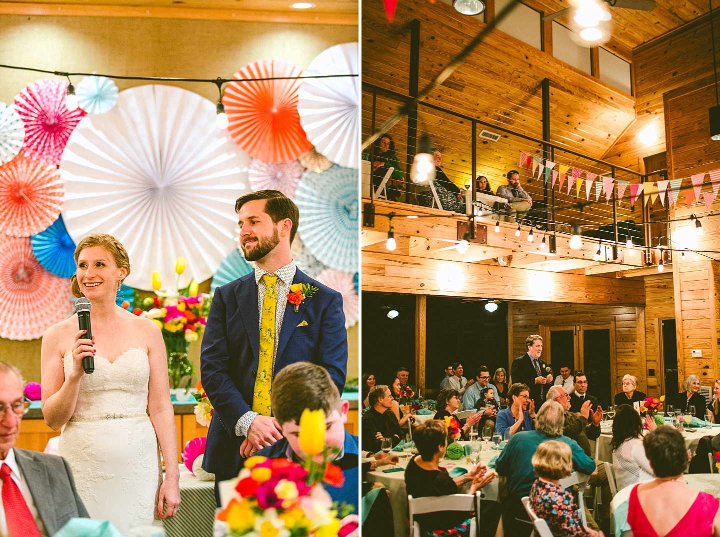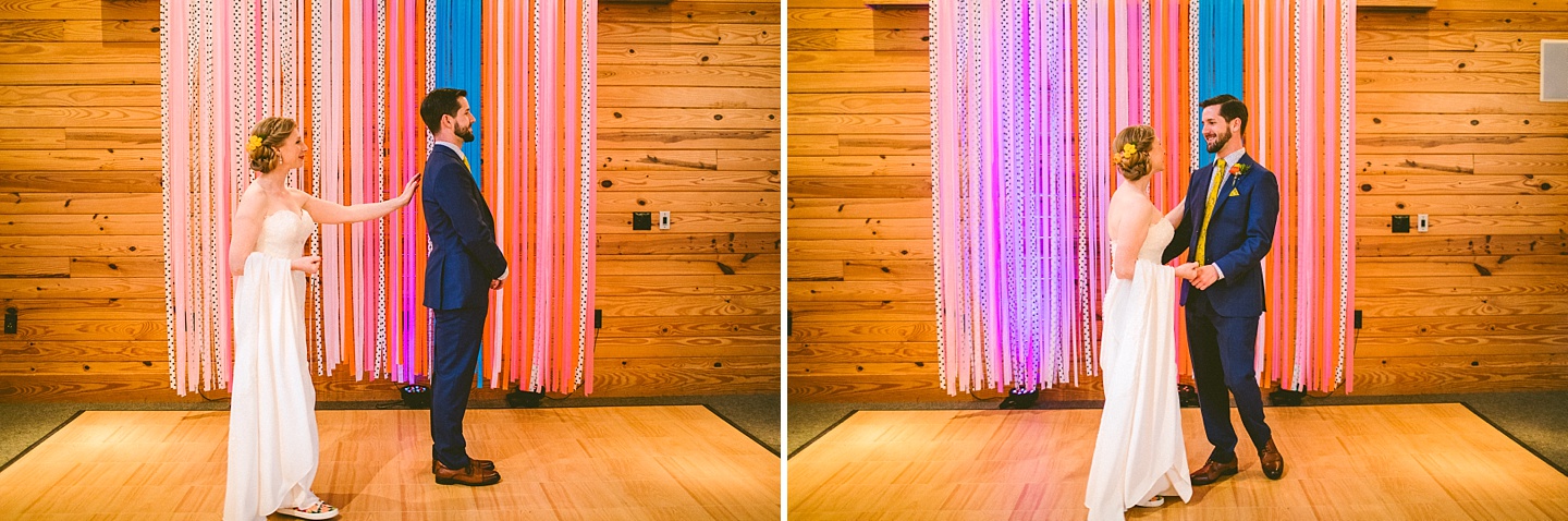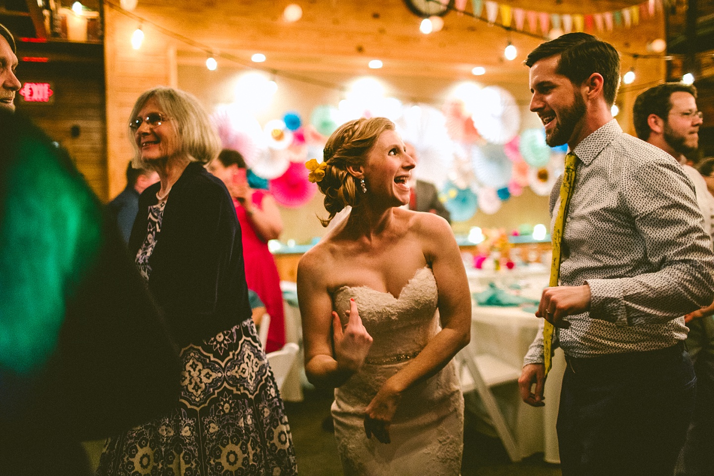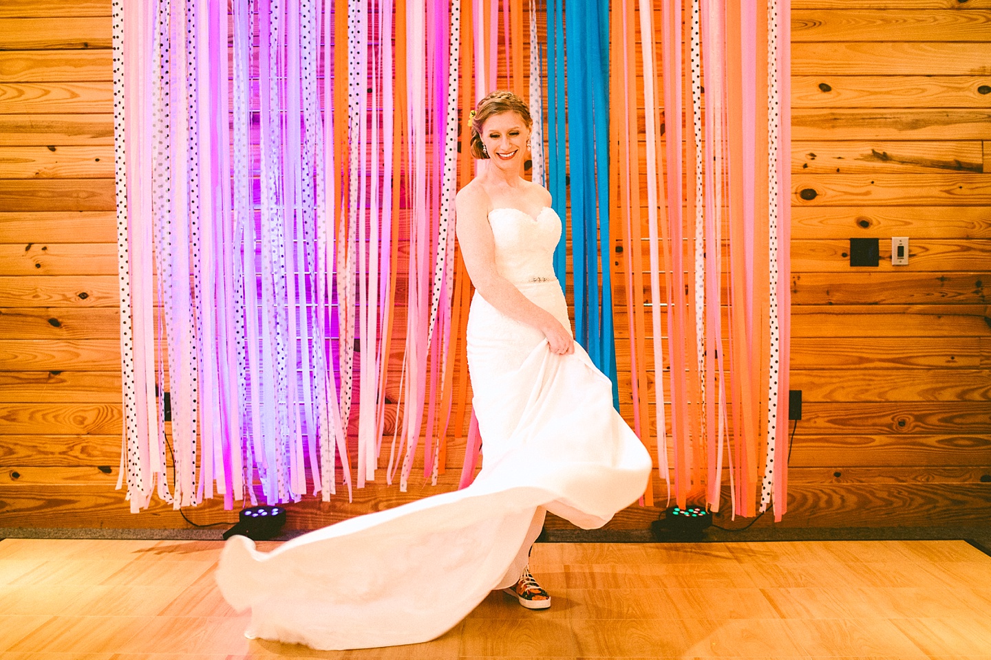 Caity and Kevin had the best weather ever for their December engagement session so I guess it only figures that it would come back and bite us later. Their wedding day was collllld and produced a constant rain that went kinda sideways under umbrellas so we didn’t go out in it much. Also, we were all freezing. But, because it was so cold, Caity decided to wear her badass colored leggings under her wedding dress on a whim which was highly encouraged by myself and all her bridesmaids because YES. She also occasionally busted out a pink leather jacket which was also praised and adored. And, because Caity and Kevin are very clever and thought ahead about things, the Rigmor House was decorated beautifully inside and allowed for plenty of colorful photo ops. Despite the dreariness outside, we were happy and colorful and warm INSIDE OUR HEARTS (and inside the Rigmor House). So much color, all the color, flag bunting forever and ever amen.