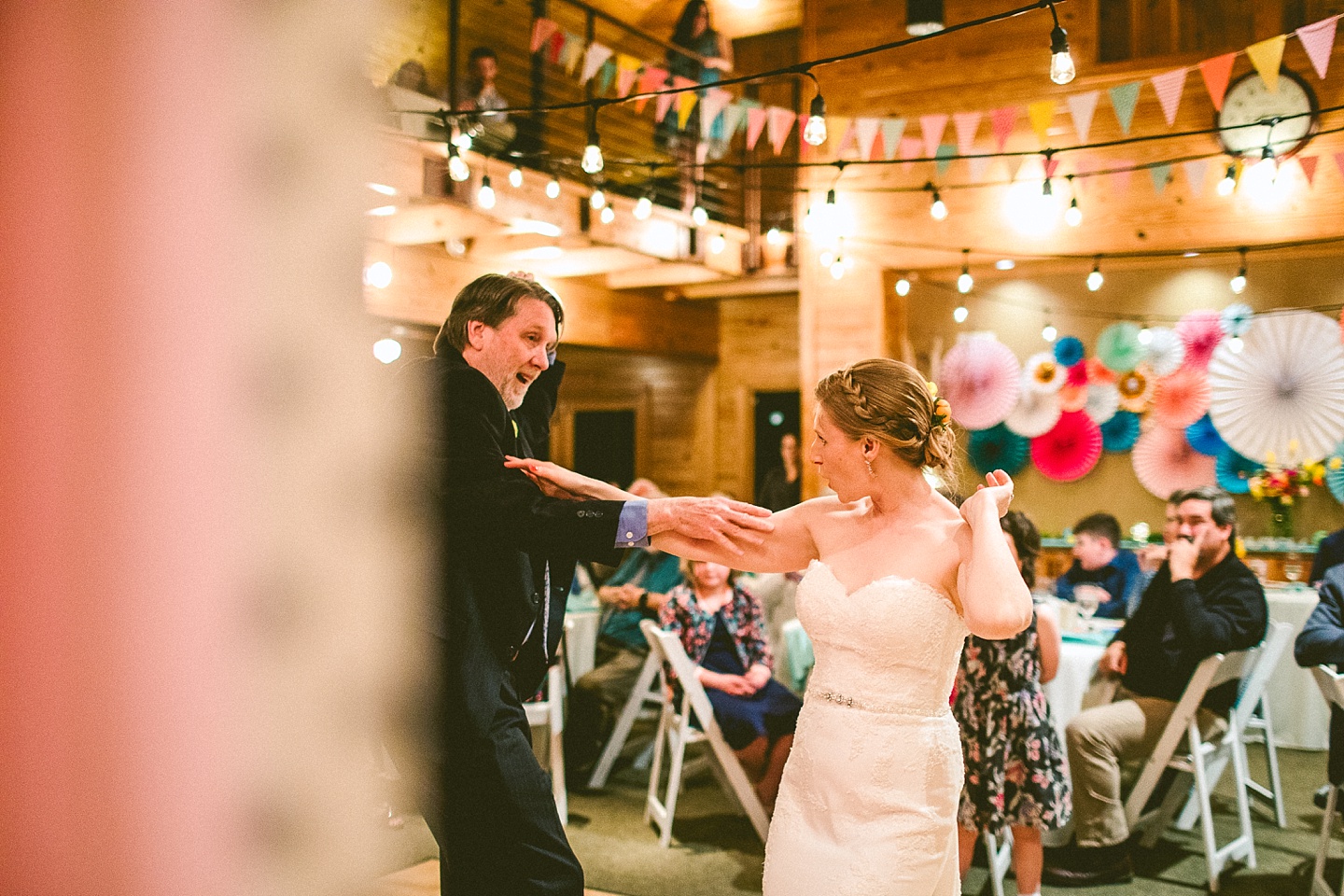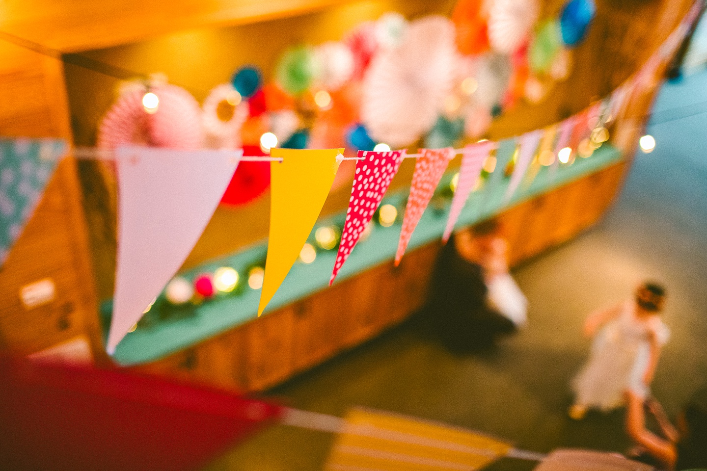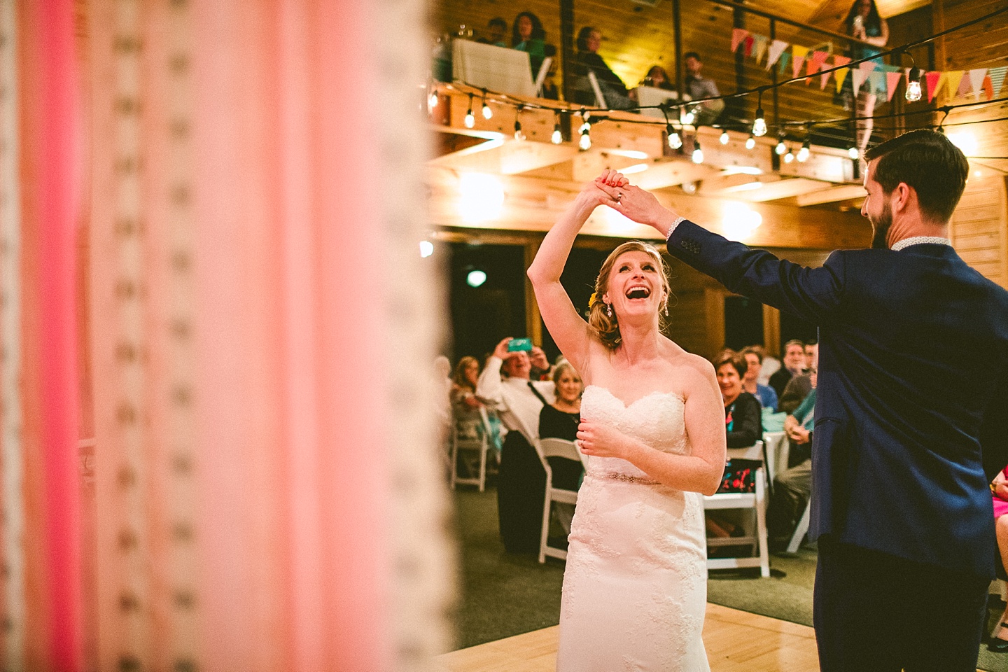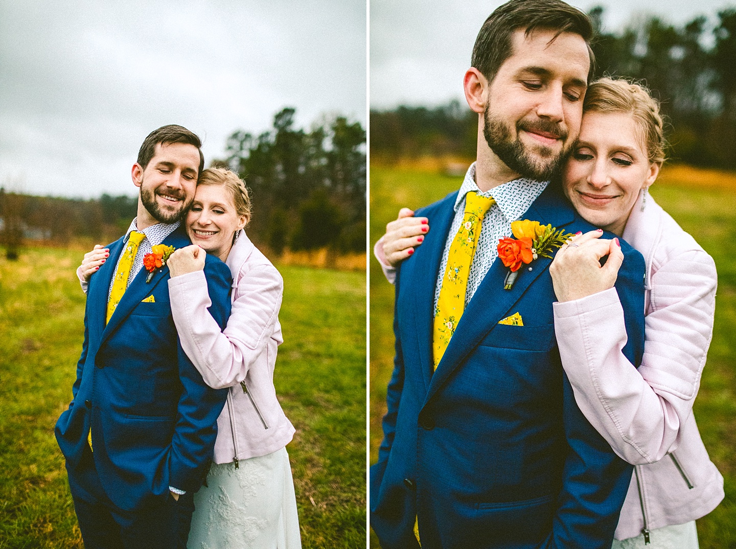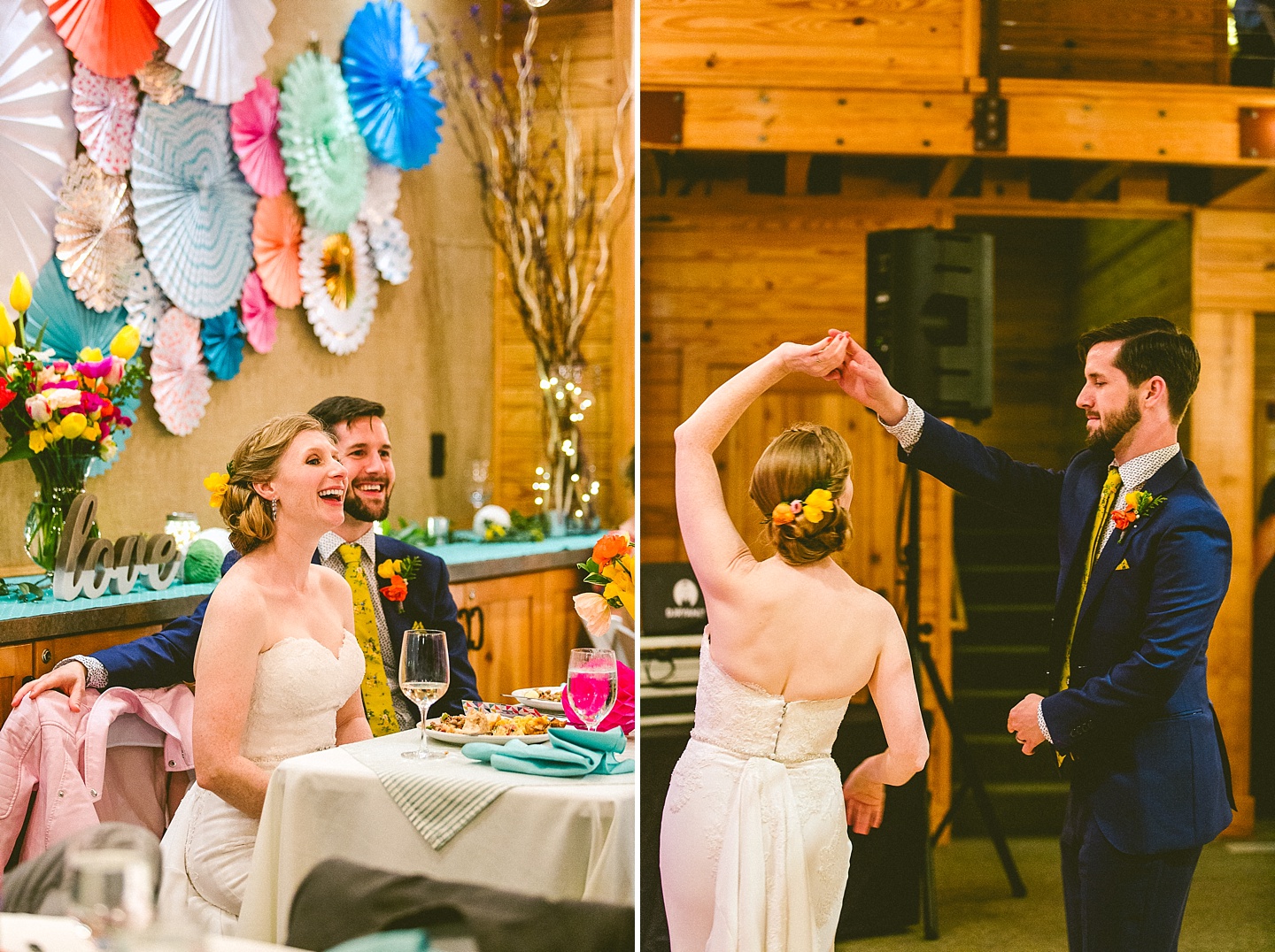 Caity and Kevin had the best weather ever for their December engagement session so I guess it only figures that it would come back and bite us later. Their wedding day was collllld and produced a constant rain that went kinda sideways under umbrellas so we didn’t go out in it much. Also, we were all freezing. But, because it was so cold, Caity decided to wear her badass colored leggings under her wedding dress on a whim which was highly encouraged by myself and all her bridesmaids because YES. She also occasionally busted out a pink leather jacket which was also praised and adored. And, because Caity and Kevin are very clever and thought ahead about things, the Rigmor House was decorated beautifully inside and allowed for plenty of colorful photo ops. Despite the dreariness outside, we were happy and colorful and warm INSIDE OUR HEARTS (and inside the Rigmor House). So much color, all the color, flag bunting forever and ever amen.