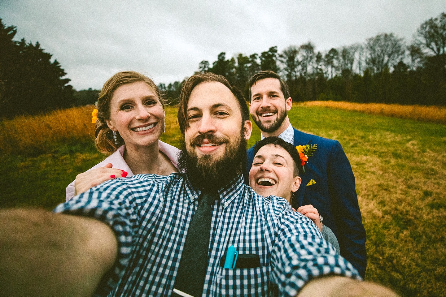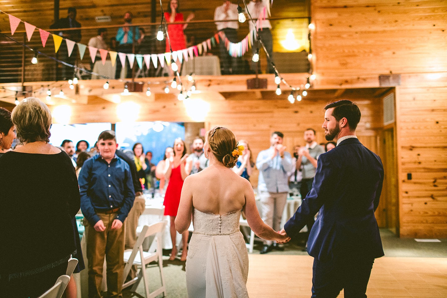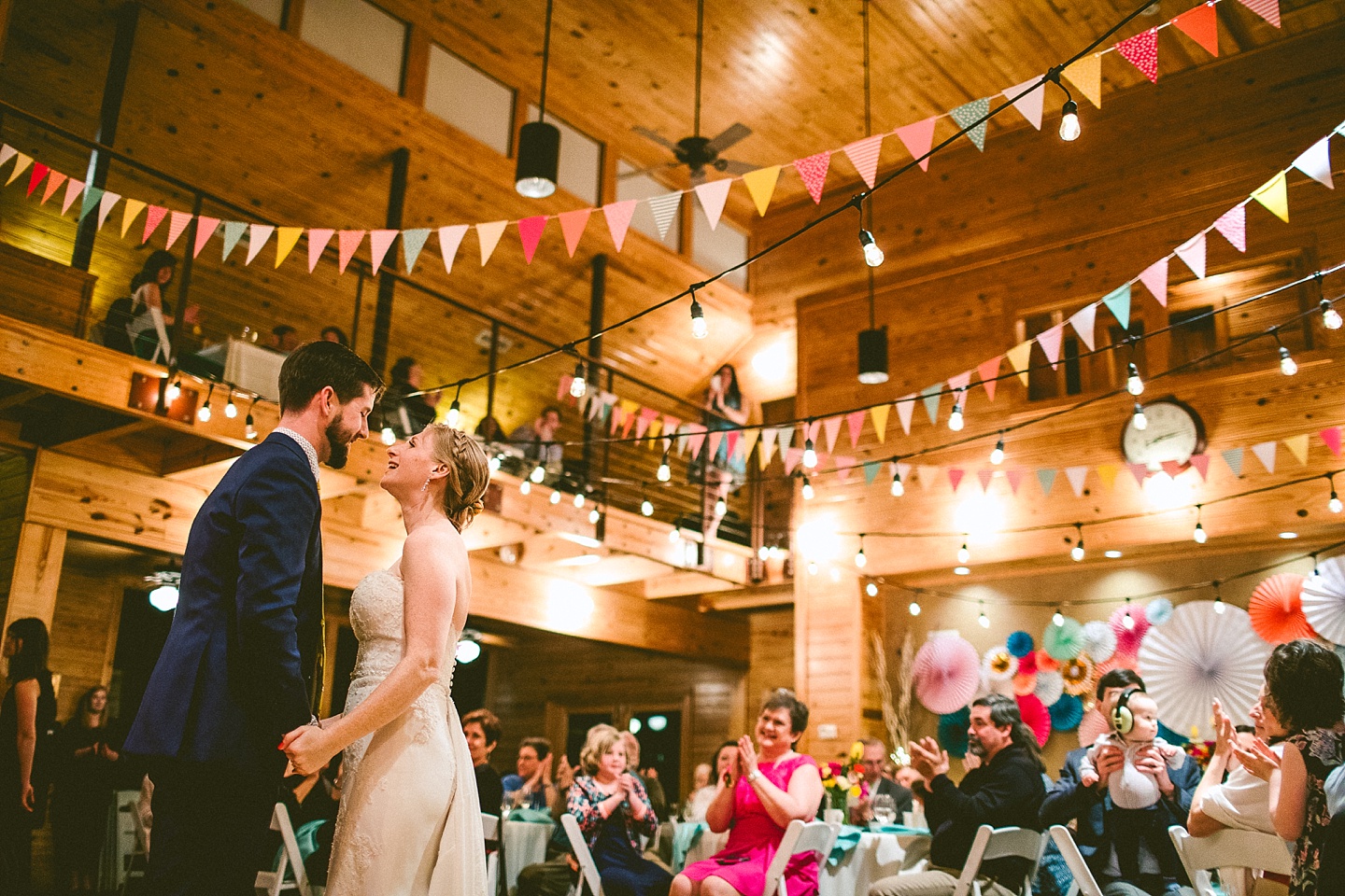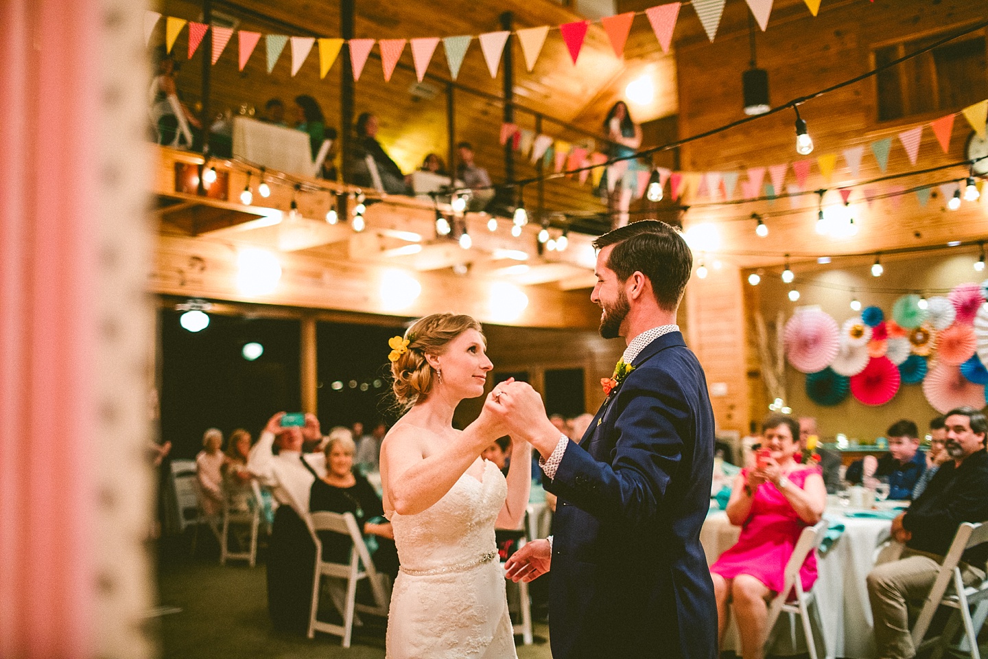 This was a total breath of fresh air wedding! Lindsay and Zac, who were married at a new venue in Greensboro called Adam’s Place (a private property that’s been recently renovated to accommodate outdoor ceremonies and receptions), held a stunning wedding. What was so great was that they chose all bright, vibrant colors instead of a single color or two, and it just had such a happy feel about it. :) I met these two only very recently, but in the short time we’ve known each other it’s clear that they are amazing people with a wonderful group of supportive family and friends. We had a great time working with their wonderful bridesmaids and groomsmen as well! The ceremony was held outdoors and it was hot… and I mean hot. As in, both Geoff’s camera and my camera overheated during the ceremony (no, neither stopped taking pictures, thank goodness, but the red warning light was totally on and the LCD screen was blank for about five minutes). There were a few moments where I was prepared to black out. Maybe it’s because I’m from the north, as no one in the wedding party (even Lindsay with her heavy and gorgeous dress) broke a sweat. But the ceremony was beautiful and lead to an even more beautiful reception. Let me tell you – outdoor receptions in the evening in NC are just beyond beautiful (when the weather’s nice, of course). The lighting was perfect and they danced on the patio. It was super low stress and everyone was so nice. Lindsay and Zac took off at the end of the night and headed to Jamaica for their honeymoon. Enjoy their adorably detailed wedding!