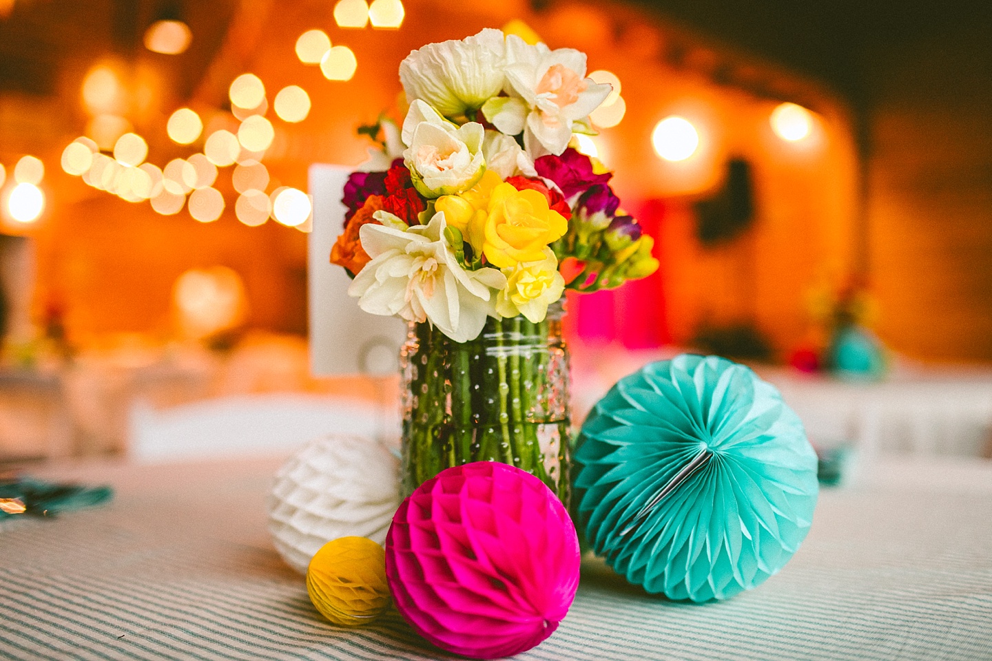 Lindsay and Zac left at the end of the night to their guests throwing white petals out of these little rainbow tubes. :) A cute idea!