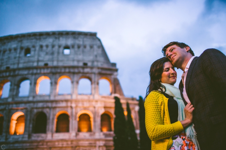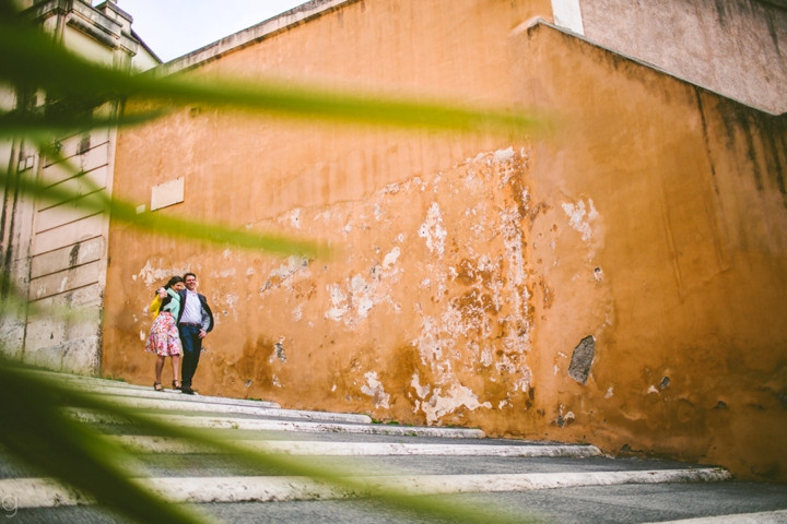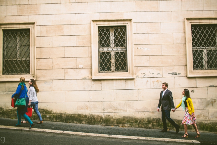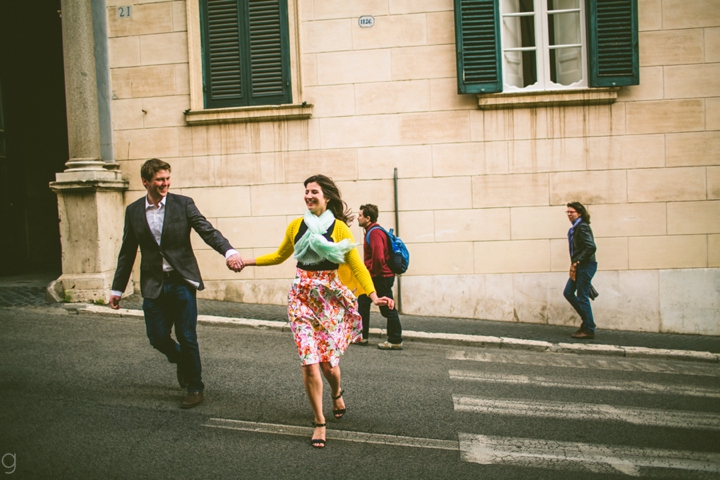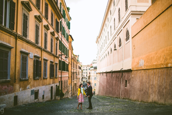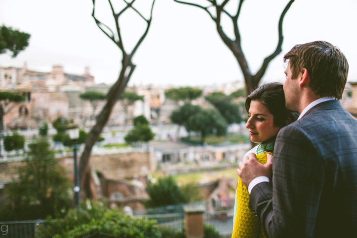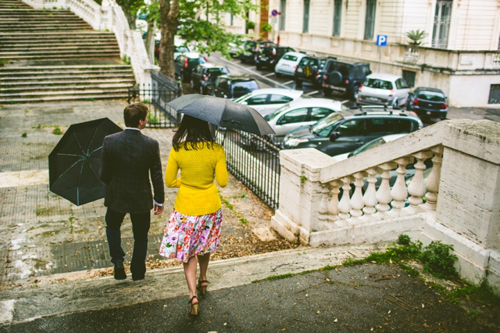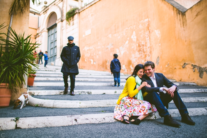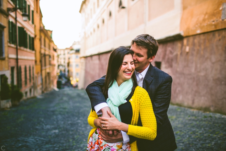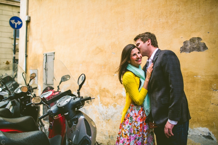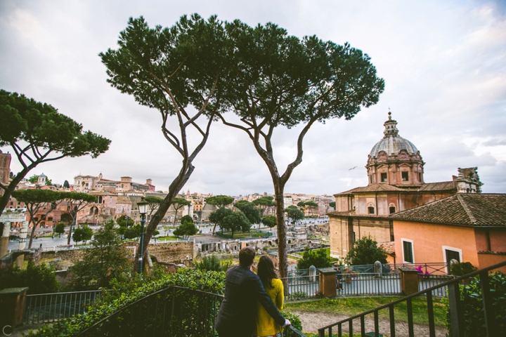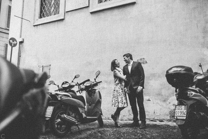 So as to not be redundant, I’m going to save our super long-winded paragraph about how we ended up photographing Carlena and Andrew’s wedding in Italy for their wedding blog post because it’s a fun story. So just fast forward to the part where we’re in Italy, and Carlena and Andrew are there, and we’re all in Rome for about two days. We decided to photograph their engagement session in Rome instead of Positano (where their wedding was) because we knew they’d look different and because when in Rome! (Don’t worry, that’s the only time I’ll use it, I promise). We ran around alleys and dodged Vespas. We got offered a lot of selfie sticks and got rained on quite a bit.  We saw the Roman Forum and got asked if we were British or New Yorkers by a couple having an internal debate about our accents. We stupidly turned down a woman handing out free french fries because we were so used to turning down the selfie sticks that we didn’t realize we made a mistake until it was too late. Rome is busy and full of people and cars and old, impressive things. And we were happy to see it with these two fine people.