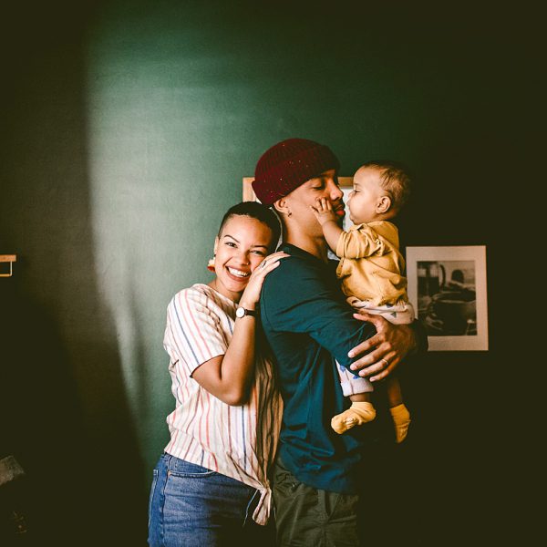 I’d been in conversation with Mom about doing photos of her sweet family at home that weren’t “cringe-worthy” (my kinda client) and weren’t painfully posed or orchestrated for Dad or Baby Girl. She wanted to do the photos at home (yay!) and I am SO GLAD SHE DID because their home is gorgeous!! They have a beautiful color scheme that’s filled with colors and textures and I just love it. Plus they have insanely great carpets. Like, the softest and fluffiest of all the carpets. So on these carpets I photographed the preciously cute Baby Girl army-crawling herself around, wide-eyed and curious, and eating some book pages while her parents tried to read to her. She also liked to eat her Mom’s necklace a lot (teething stages, amirite) and stare fixedly into the camera (she is a great model). PLUS LOOK AT THOSE PANTS. I would 100% wear those sweatpants now even though I am 90% confident I already had some iteration of them in the 80s. Mom and Dad enjoyed cuddling with Cool Sweatpants Baby Girl a lot and turning her upside down to make her giggle. When they’re not doing turning their kiddo upside down for giggles, Mom is an incredibly creative and stylish woman who enjoys decorating their home and writing. Dad likes video games, technology, and cooking. I absolutely loved working with all three of them – we bonded over lots of similarities, but mostly our deep and undying love for October. And October people stick together.