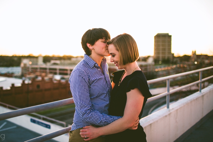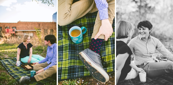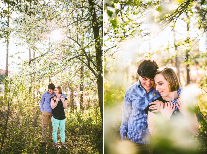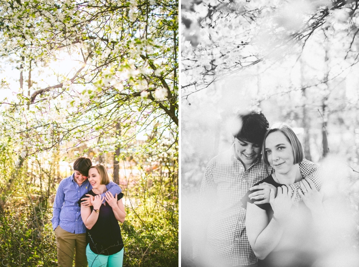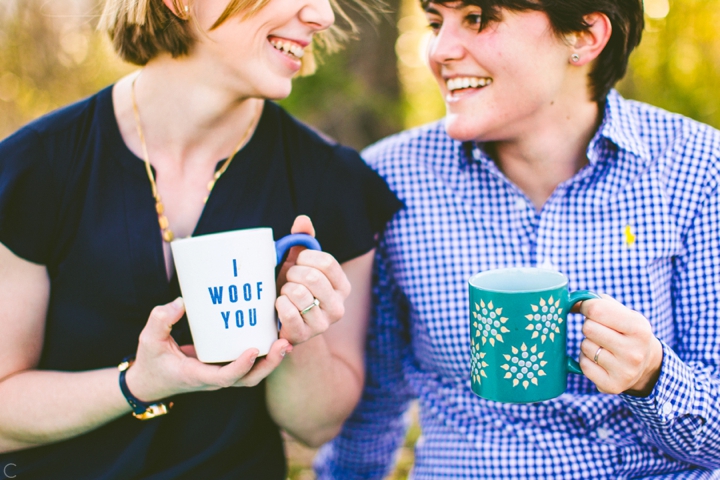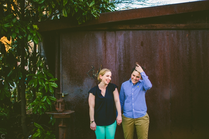Megan and Carly met at a gym when they lived in North Carolina (Carly went to UNC and Megan to NC State). They lived in Durham for a while and it still holds a special place in their hearts, so they packed up their backgammon game and adorable mugs and hauled themselves back here from Lexington, Kentucky to have their engagement session with us. We had this planned for a long time and they were already in from out of state when both Geoff and myself came down with fevers and a sickness similar to the plague, so we awkwardly waved hello at them from about 10 feet away when we first met them as to not spread the contamination. Our jokes were far more awkward and made even less sense than they usually do, and my already poor ability to give verbal instructions to my clients based on pictures in my head became even poorer, yet somehow Megan and Carly appeared to have a good time (or they’re at least humoring us).