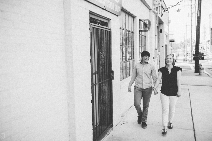 Despite our illnesses, we still had a great time romping around the Bull City with these two. I especially enjoyed that Carly is barely 5′ tall and I did not need my step stool to photograph her. They handled all obstacles (and parking cones) in stride, and our biggest hurdle was them being cool with the new Ghostbusters remake while Geoff tried desperately to verbalize that the original Ghostbusters is a national treasure that should probably have at least a few monuments in its honor. We talked politics and dogs and they told us about their wedding and Carly wore really cute shoes while Megan made me want to cut all my hair off again.