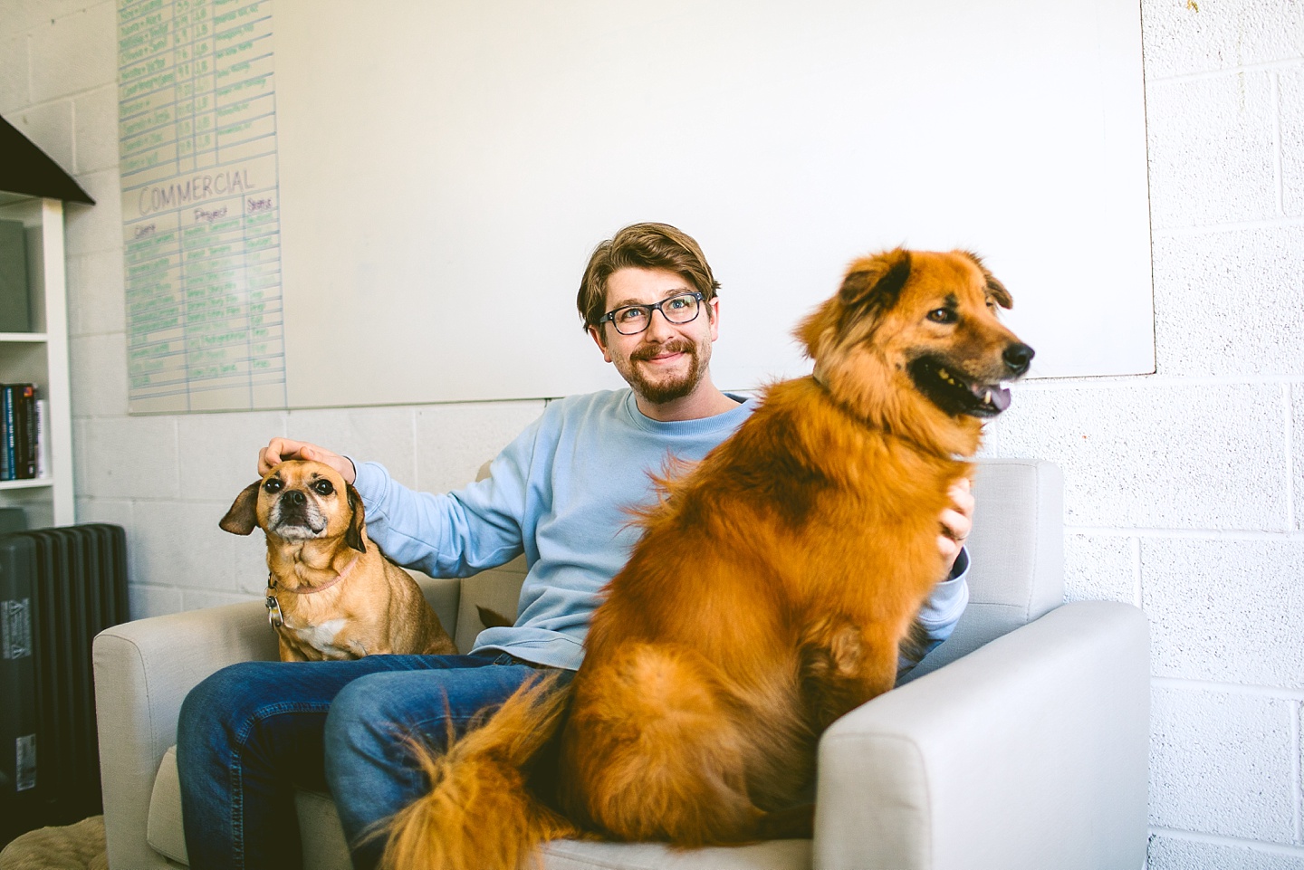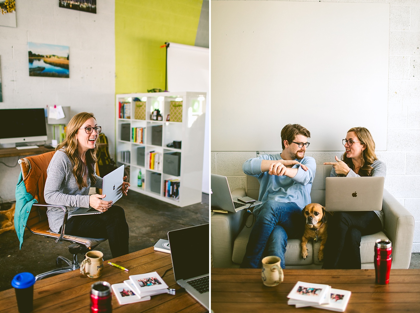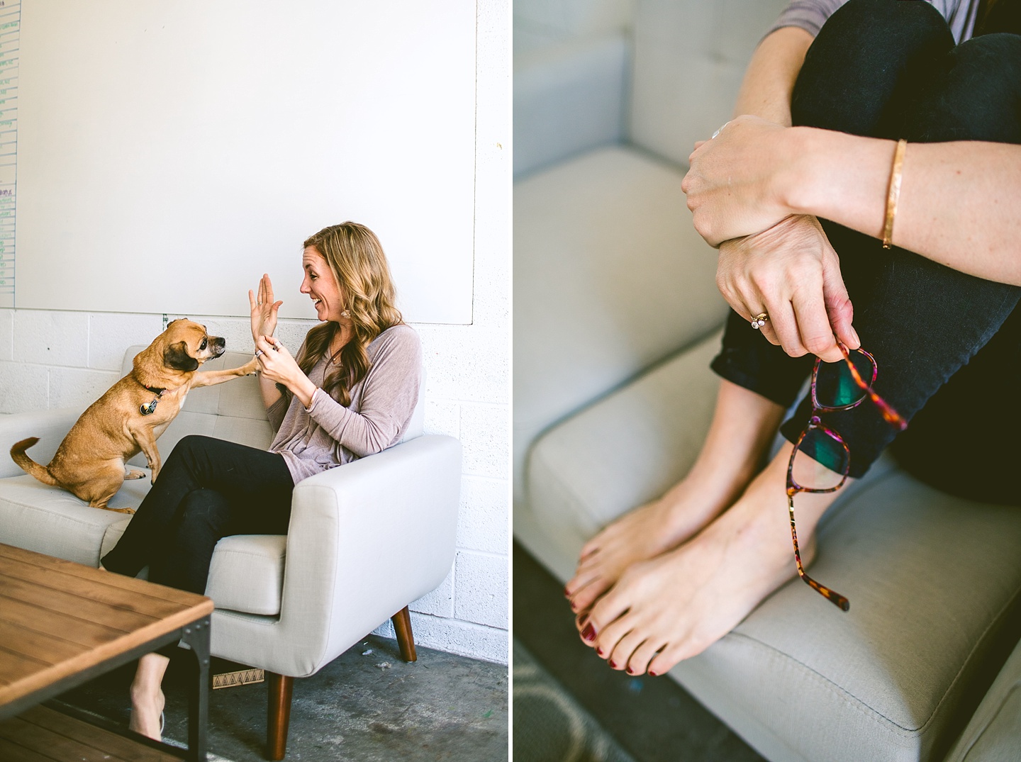 My dear videographer friends at Big Dog Little Bed have expanded and are welcoming Andrea, their Creative Producer, to their team! I’ve photographed BDLB many times and we always have so much fun, but it was really wonderful seeing the energy between Janice and Andrea for the first time. They’re both encouraging and inspiring one another, and they’re truly excited and passionate about their work telling the stories of others. I was tasked with getting new headshots of everyone, documenting their process and story discovery (with help from Lauren and Jeni, our client models), and photographing their new studio setup. All of this included Bernie and Layla Bean, the BDLB dogs! Bernie, the resident Big Dog (or bigger dog in this case since she’s kind of medium-sized) is super into me right now and I’m enjoying basking in her fandom. Layla’s the resident dog skeptic who is much more like a cat. She likes me too, but really just prefers trying to keep her toys away from Bernie. It’s always fun to photograph the pups but even more fun to reconnect with this amazing local small business of which I’m a superfan. :)