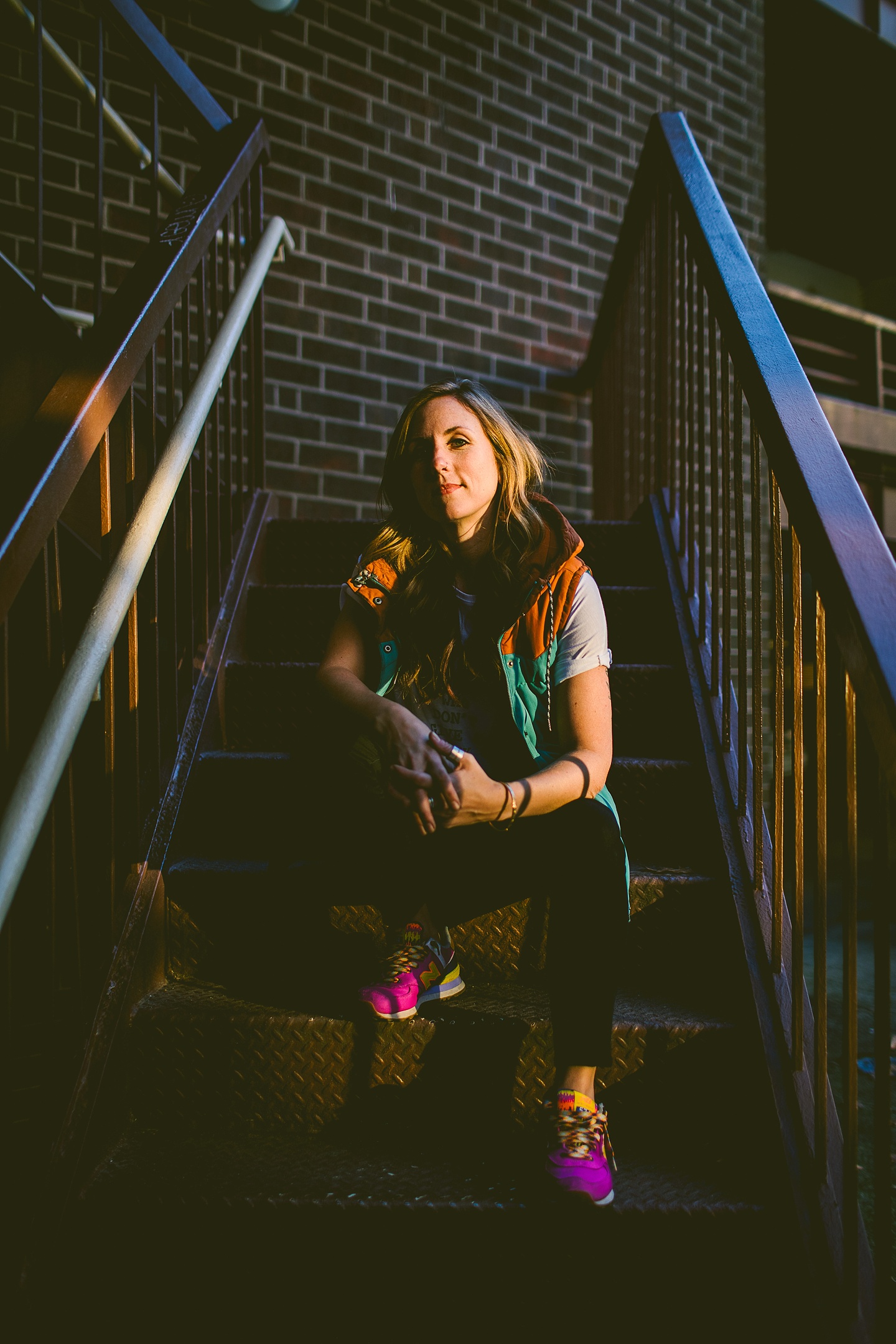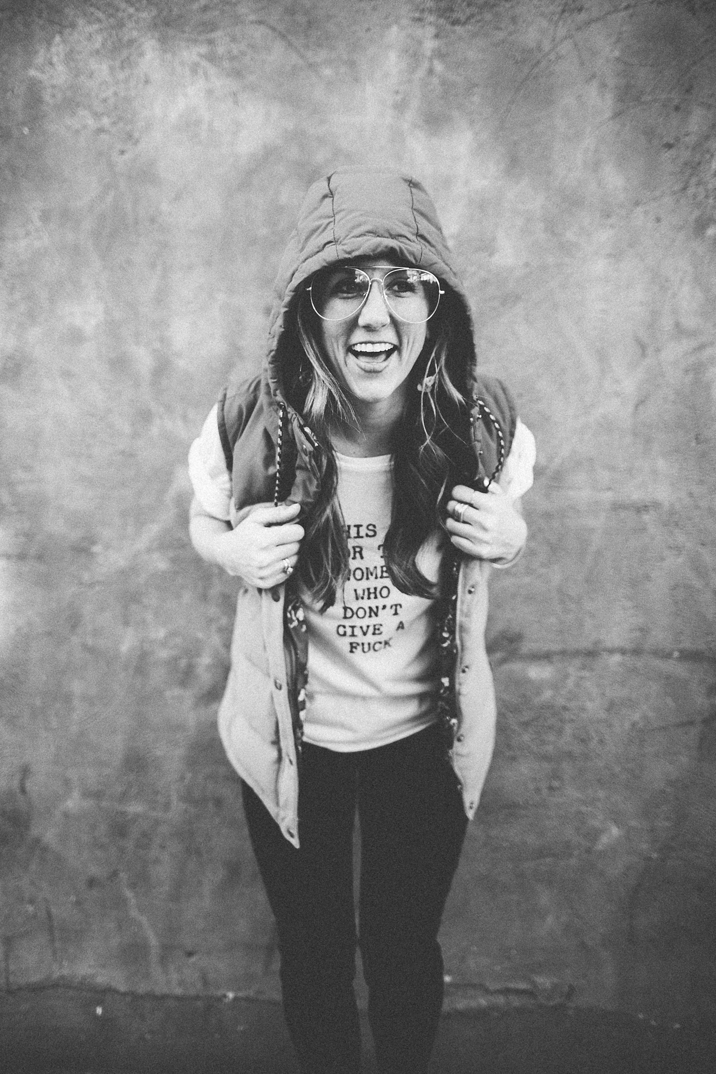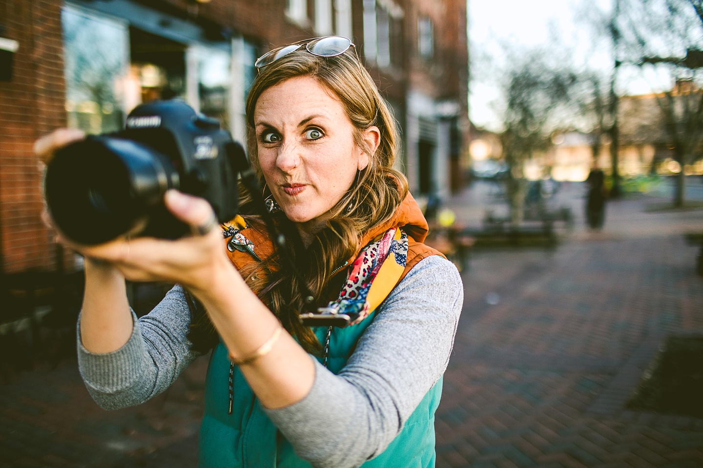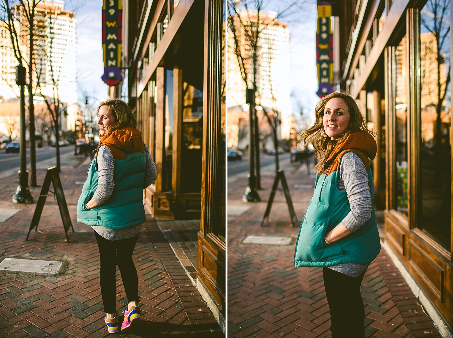 Anyway, Janice told me that Toby doesn’t like it when girls come on too strong to him, so I’m trying to refrain from making this entire post about him. Janice is a dear friend of ours, an extremely talented female bossy lady videographer, a Durhamite, a lover of pups big and small (the small, also adorable, far more loving and friendly doggo in these pictures is Murphy), a trusted colleague, and a wearer of vests and fanny packs. We have a little too much fun photobombing her at weddings (there are probably many minutes of footage she’s accumulated and cut out) and we love her dearly. It was with great pleasure that we photographed her new promo photos for her wedding and commercial videography company Big Dog Little Bed. She is hilarious and charming and adorable and beautiful and intelligent and can rock 1977 dad glasses like there’s no tomorrow. This shoot makes me smile because Janice makes me smile. Also Toby.