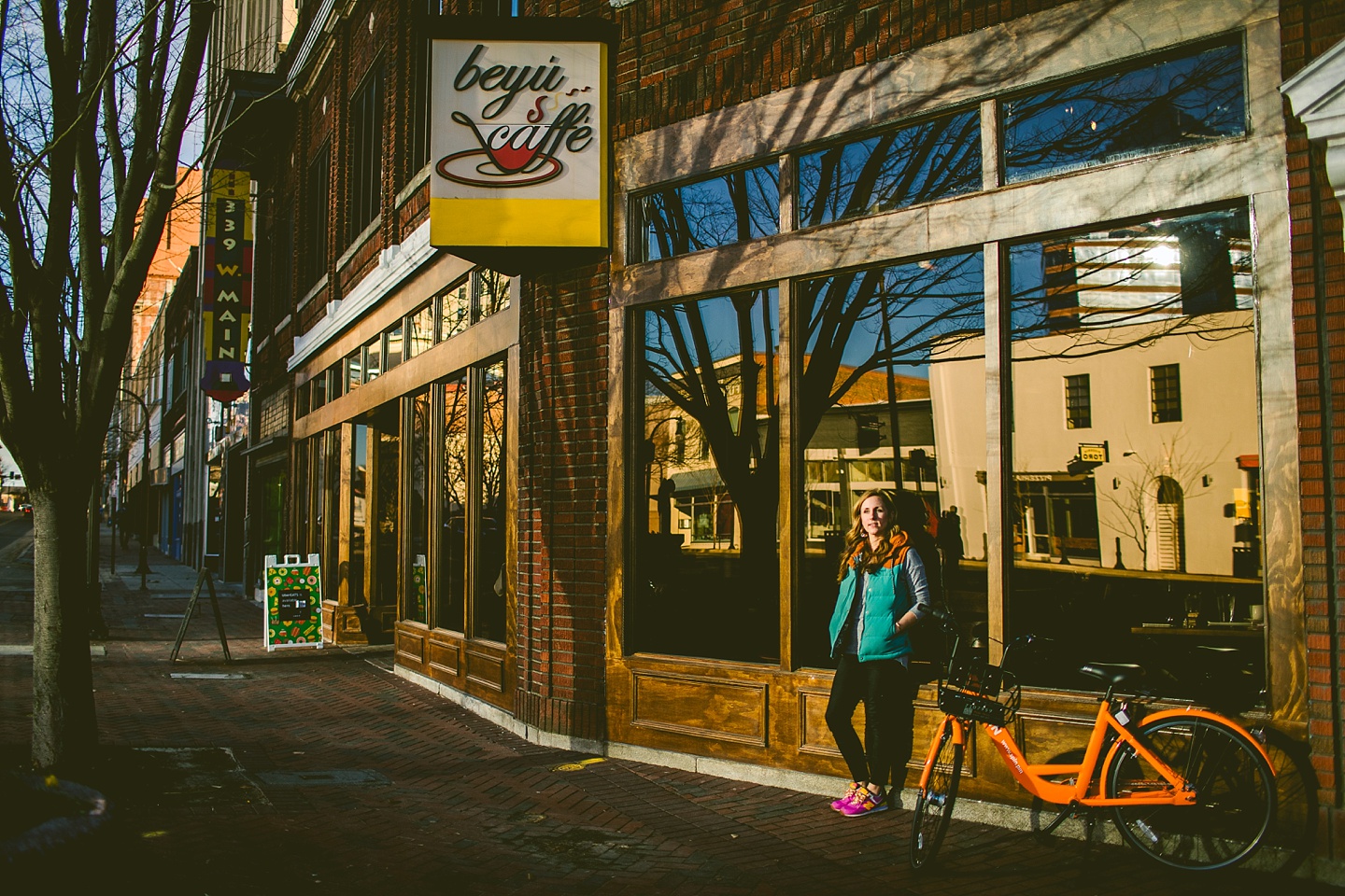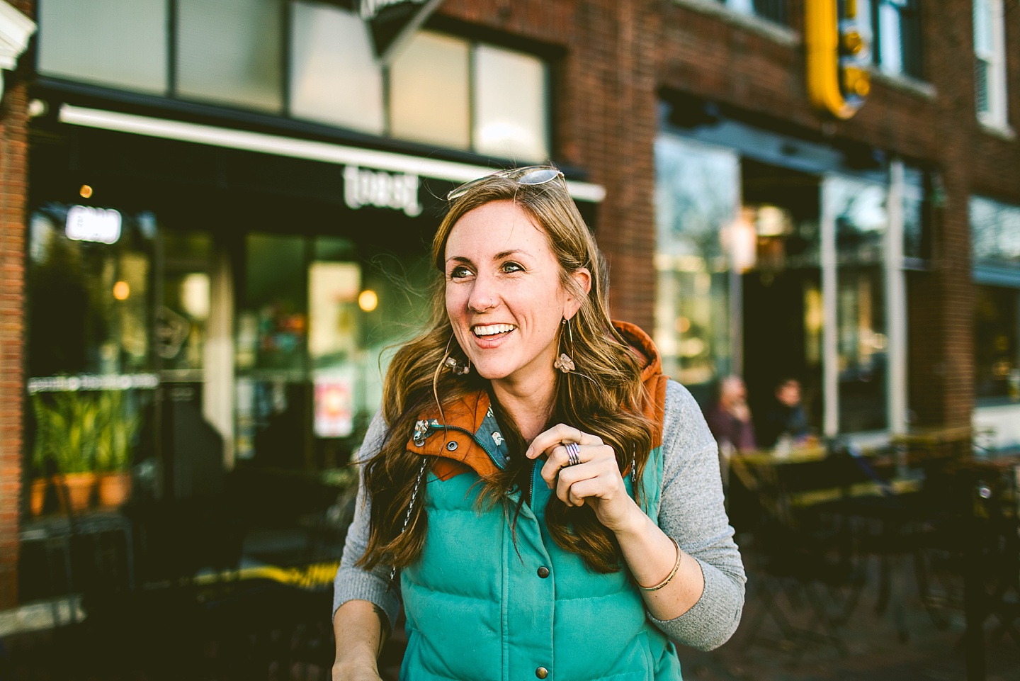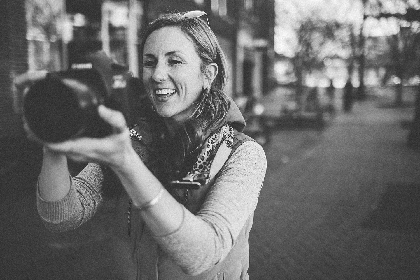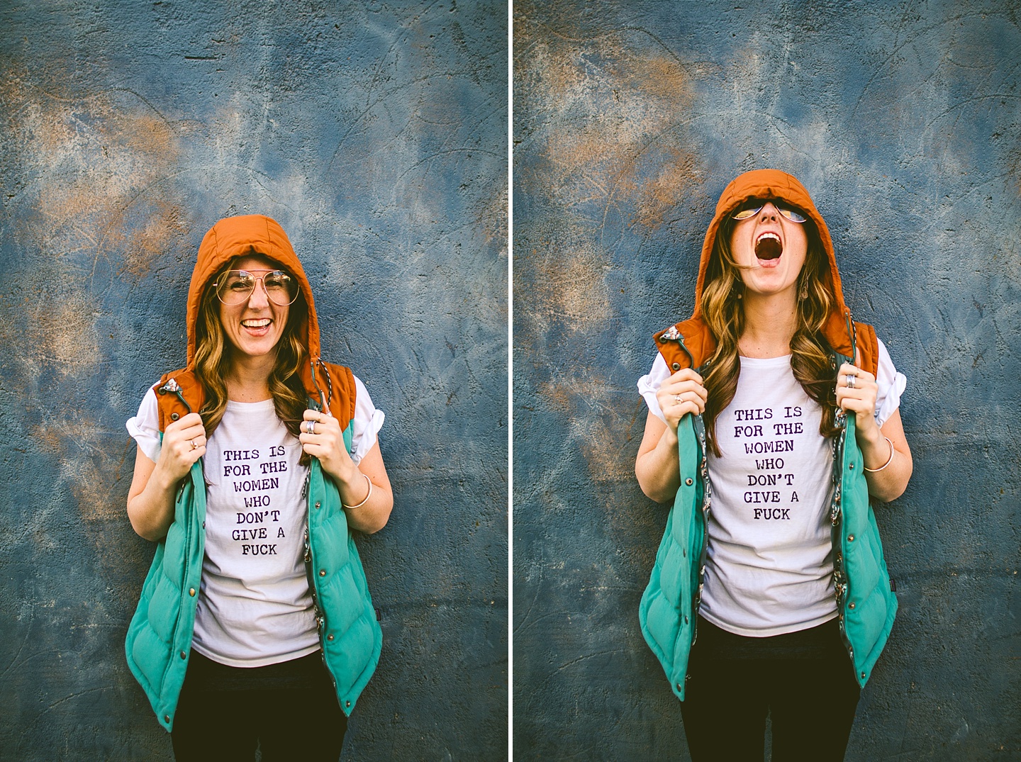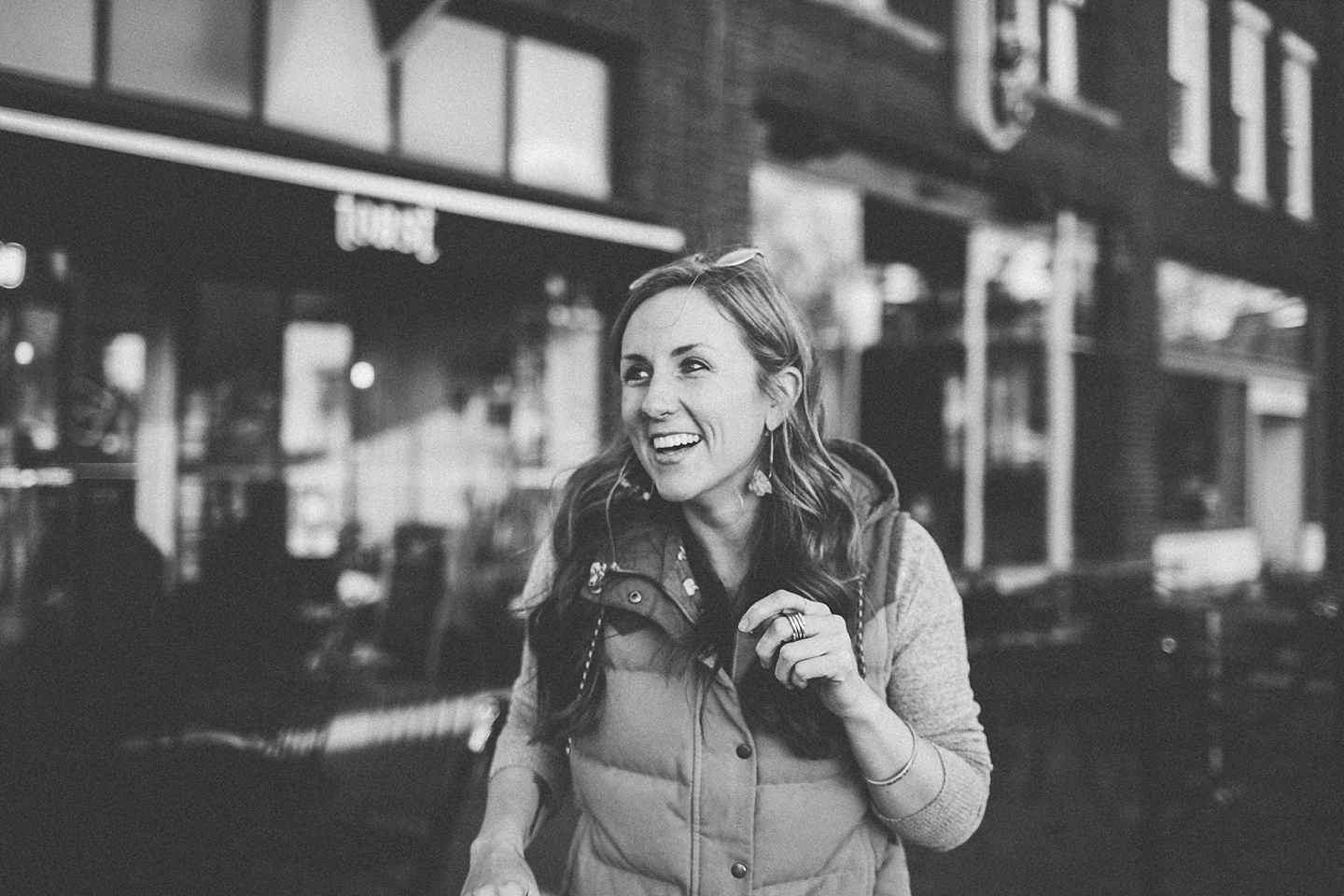 Anyway, Janice told me that Toby doesn’t like it when girls come on too strong to him, so I’m trying to refrain from making this entire post about him. Janice is a dear friend of ours, an extremely talented female bossy lady videographer, a Durhamite, a lover of pups big and small (the small, also adorable, far more loving and friendly doggo in these pictures is Murphy), a trusted colleague, and a wearer of vests and fanny packs. We have a little too much fun photobombing her at weddings (there are probably many minutes of footage she’s accumulated and cut out) and we love her dearly. It was with great pleasure that we photographed her new promo photos for her wedding and commercial videography company Big Dog Little Bed. She is hilarious and charming and adorable and beautiful and intelligent and can rock 1977 dad glasses like there’s no tomorrow. This shoot makes me smile because Janice makes me smile. Also Toby.