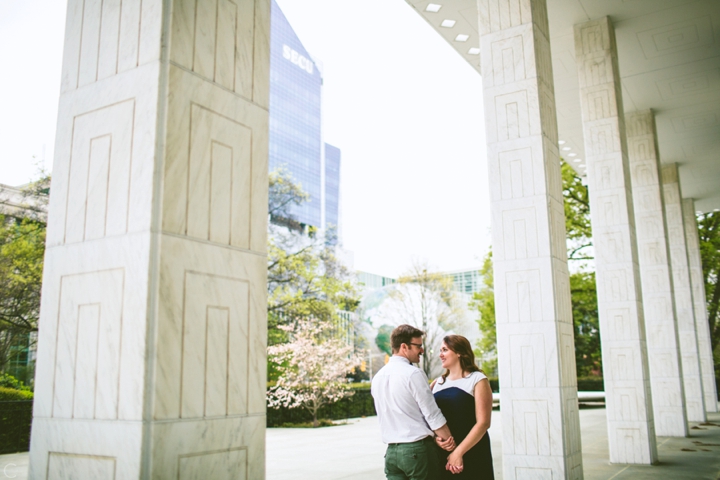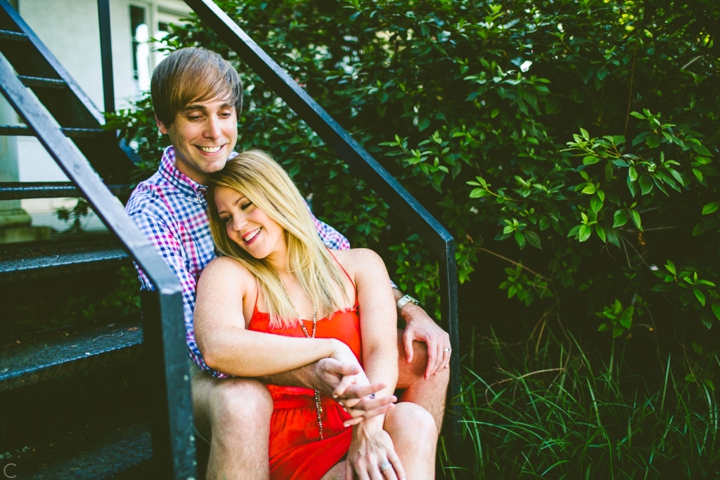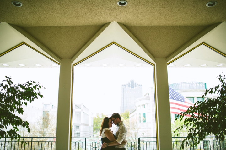 Meet Bebop. Bebop is a cat who lives in a skyscraper in downtown Raleigh with his owners, Kerry and Alex. Bebop enjoys looking out the window at the little cars, watching the hawks who live in the Wachovia building, chasing his treats across the floor, and staring intently at his parents while they cook dinner from a bar stool at the counter. Kerry and Alex were the main focal point of this engagement session, I think, but we temporarily forgot this when we met Bebop and Kerry and Alex subsequently took a back seat for a while so we could make a new best friend. We’re afraid to post the following pictures because then Bebop might see them and realize that he wasn’t 100% the star of the show and be upset with us, so Kerry and Alex, please try to stop him from looking at them after the first couple of photos. We wouldn’t want to hurt his feelings.