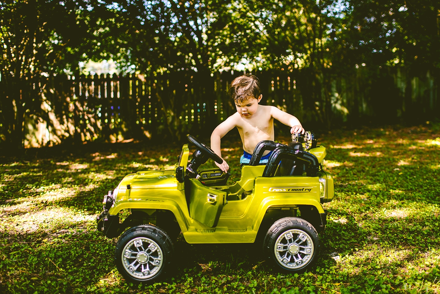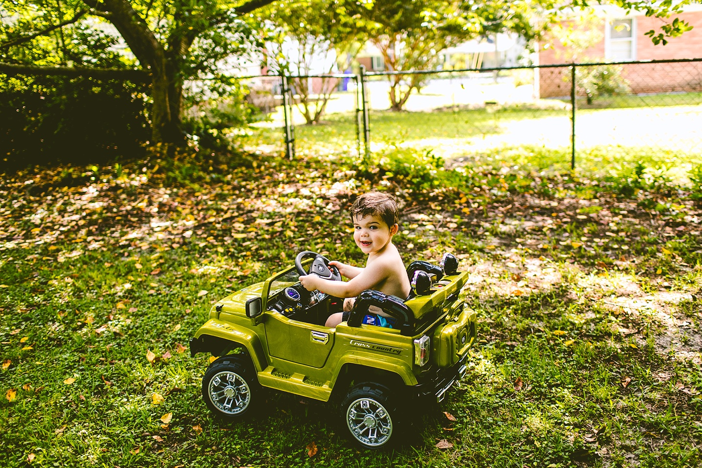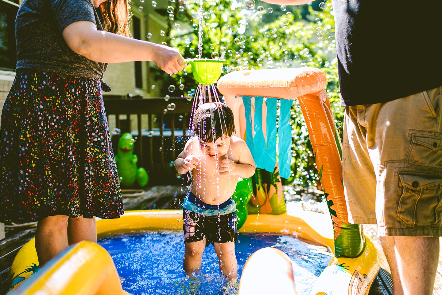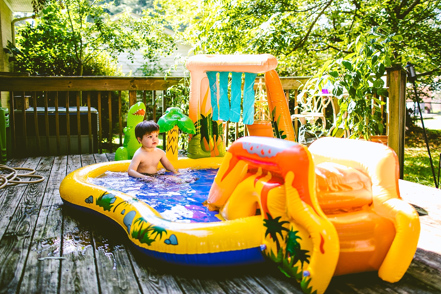 In addition to Men Without Hats, he also enjoys this one song that came programmed into his Jeep. It’s super strange, oddly somber for a child’s toy, but sounds kind of like a teenage version of Journey’s Faithfully. Definitely a breakup song. And when he’s done with the Safety Dance, he cools down to that one, accompanied by slower, sadder Wheels on the Bus hand motions. When he’s done feeling sorry for himself for whatever imaginary breakup he’s going through, he heads straight to his kiddie pool to pick up a cup and then literally pour a ton of water straight into his eyes. He does this repeatedly (always aiming for the top of his head but not quite having the rotator cuff range yet so landing directly into the eyes) and then shakes like he’s about to explode with joy. I think he’s cold, but it’s a delighted cold, so it comes across as enthusiastically explosive.