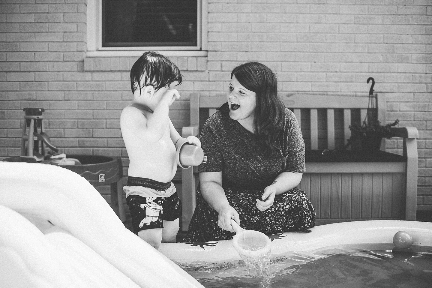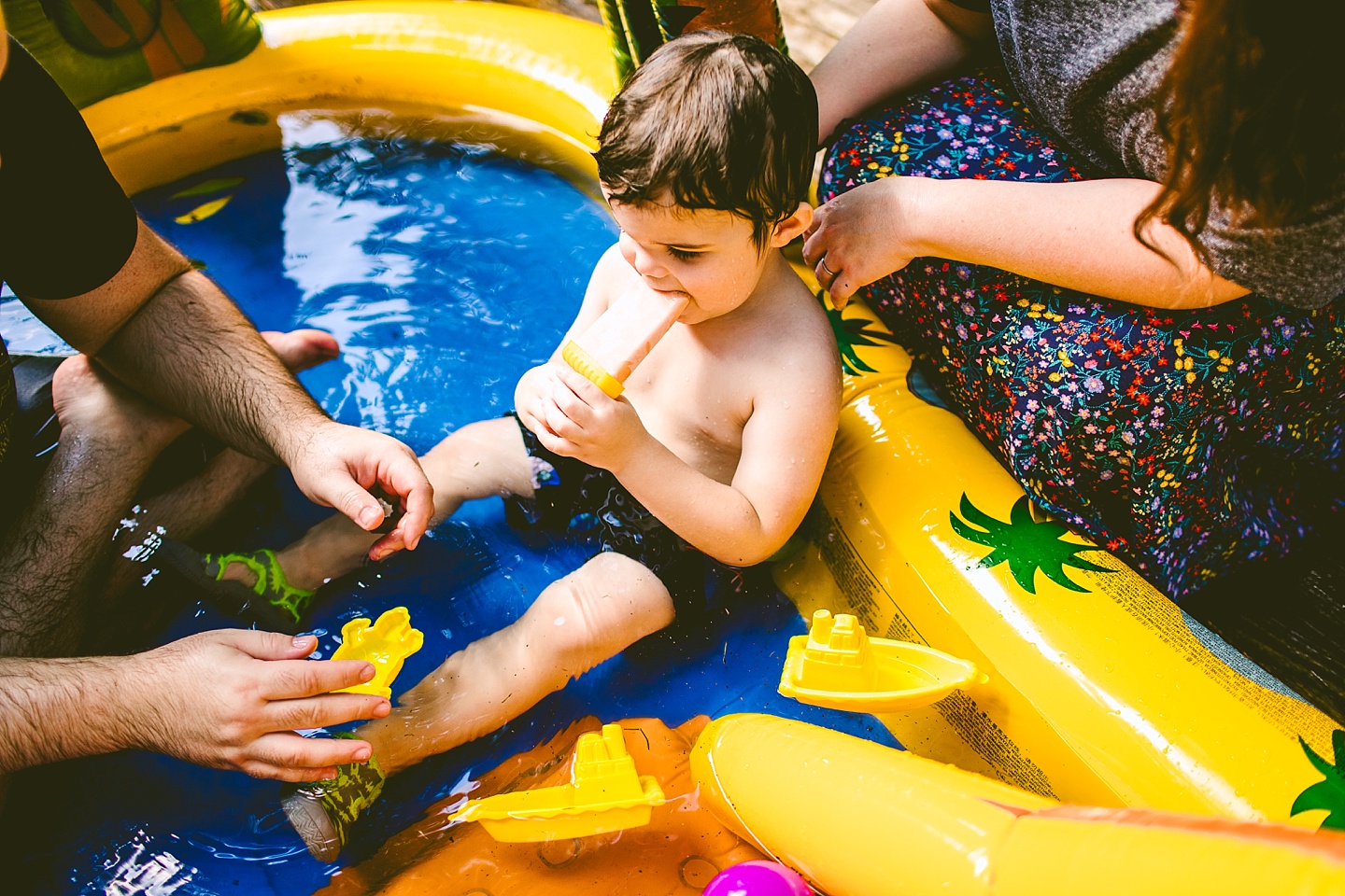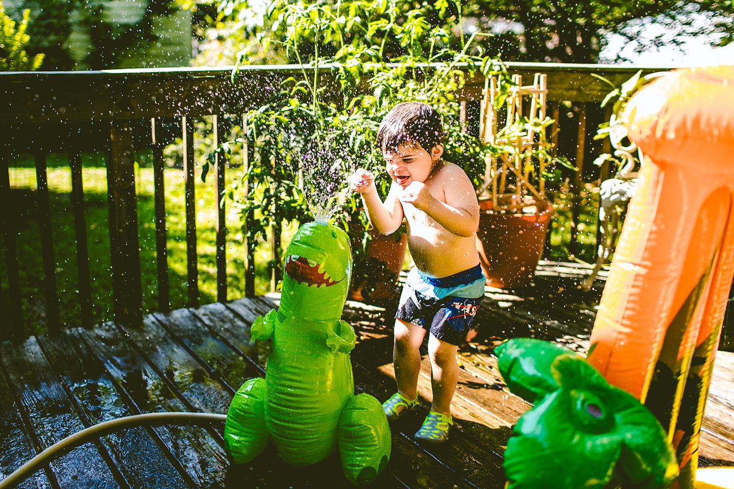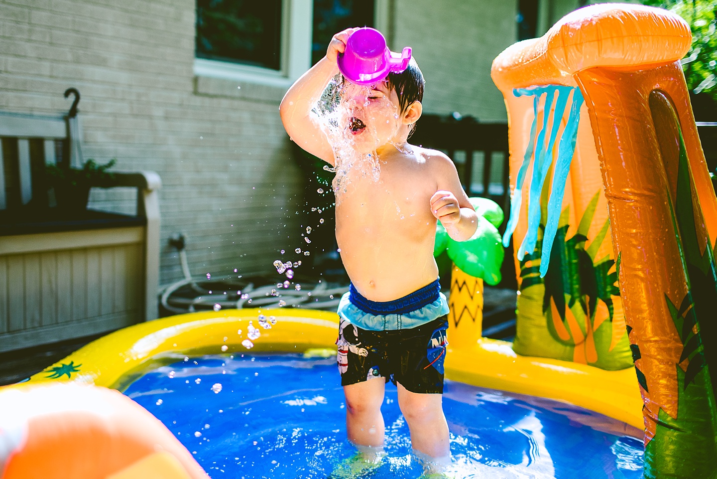 In addition to Men Without Hats, he also enjoys this one song that came programmed into his Jeep. It’s super strange, oddly somber for a child’s toy, but sounds kind of like a teenage version of Journey’s Faithfully. Definitely a breakup song. And when he’s done with the Safety Dance, he cools down to that one, accompanied by slower, sadder Wheels on the Bus hand motions. When he’s done feeling sorry for himself for whatever imaginary breakup he’s going through, he heads straight to his kiddie pool to pick up a cup and then literally pour a ton of water straight into his eyes. He does this repeatedly (always aiming for the top of his head but not quite having the rotator cuff range yet so landing directly into the eyes) and then shakes like he’s about to explode with joy. I think he’s cold, but it’s a delighted cold, so it comes across as enthusiastically explosive.